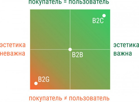 Если ваш продукт попадает в «зеленую зону» — вы не можете не уделить внимания разработке эстетичного внешнего вида изделия, поскольку это свойство продукта важно покупателю (пользователю). Соответственно, работа с внешним видом, с «дизайном» в тривиальном смысле слова, окажет свое влияние на продажи.