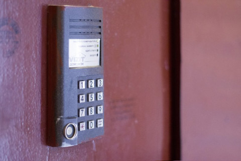 На картинке: панель домофона, Визит
