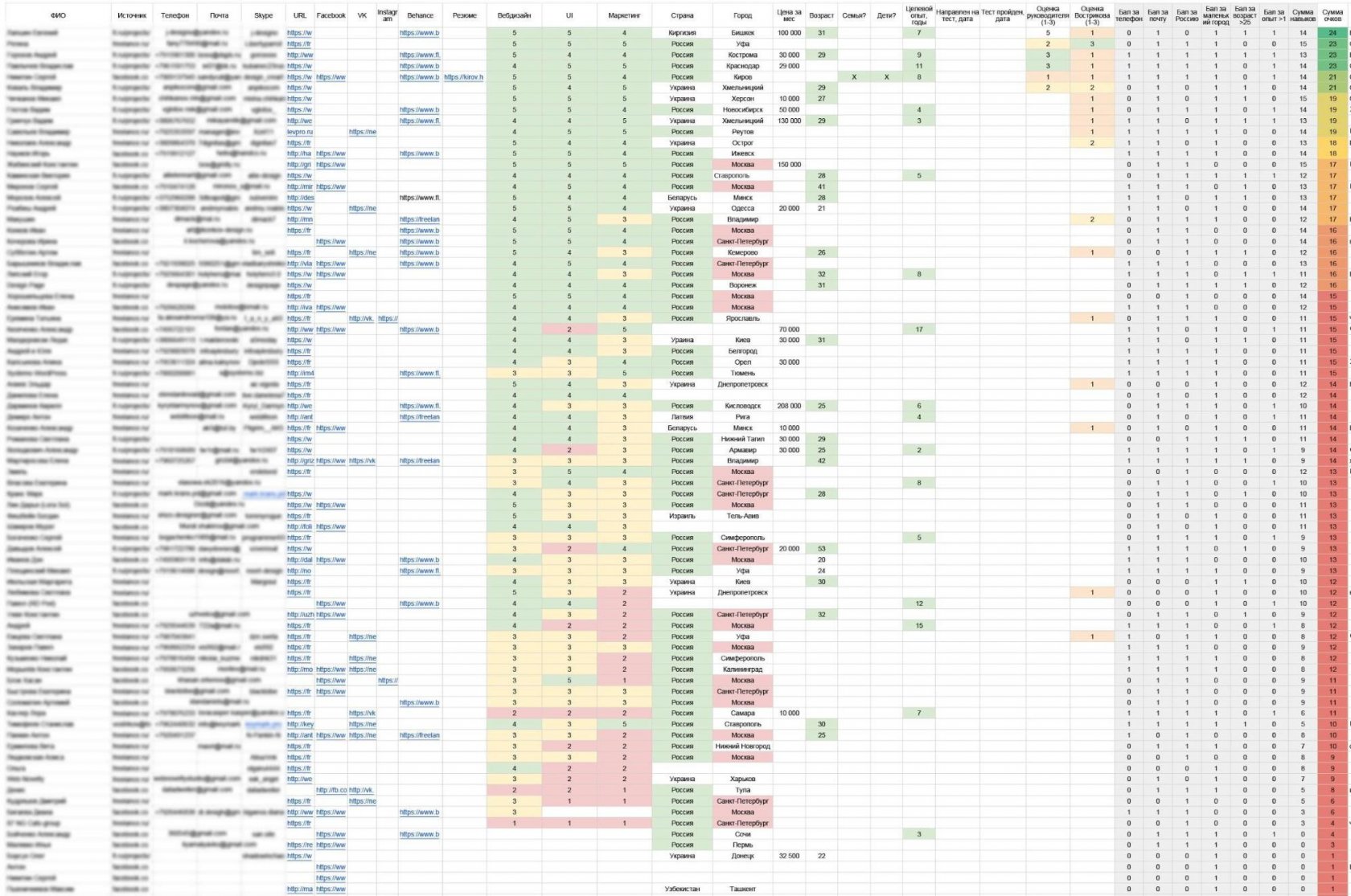 В результате из большого списка осталось три десятка человек. Им я отправил простую анкету, в которой каждый вопрос раскрывал одно конкретное важное качество, например, усидчивость, сообразительность и так далее. И вот из тридцати остался Топ-5. Вот с ними уже можно общаться, обсуждать конкретику.