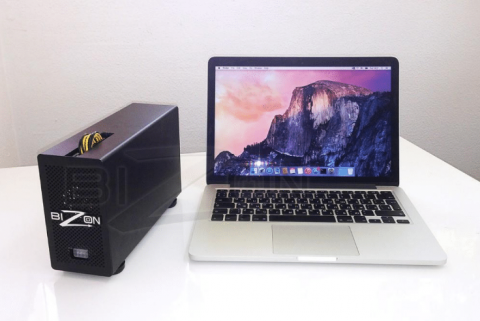 Пример, видеокарта BIZON для работы с Macbook. Предыдущий корпус смотрелся рядом с макбуком как случайно забытый кем-то чемодан. Компания хотела новый современный корпус, который бы не стоил запредельных денег и сохранил все необходимые функциональные характеристики — обдув, сборку и монтаж.