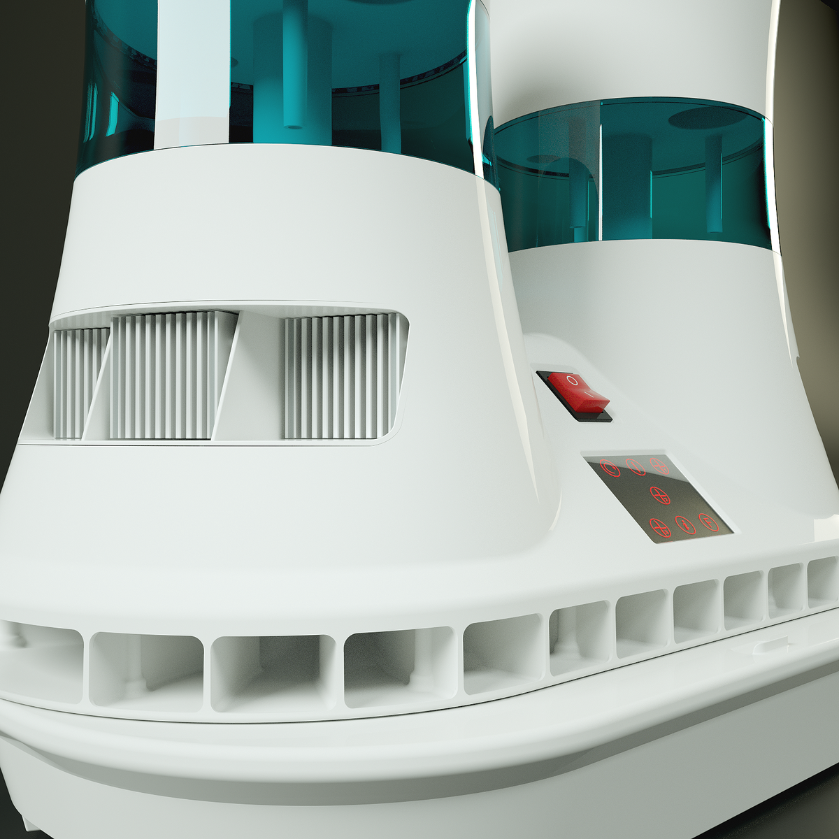 Примерно так будет выглядеть галогенератор: в местах расположения резервуаров материал корпуса прозрачный. «Промежуточные» рендеры: