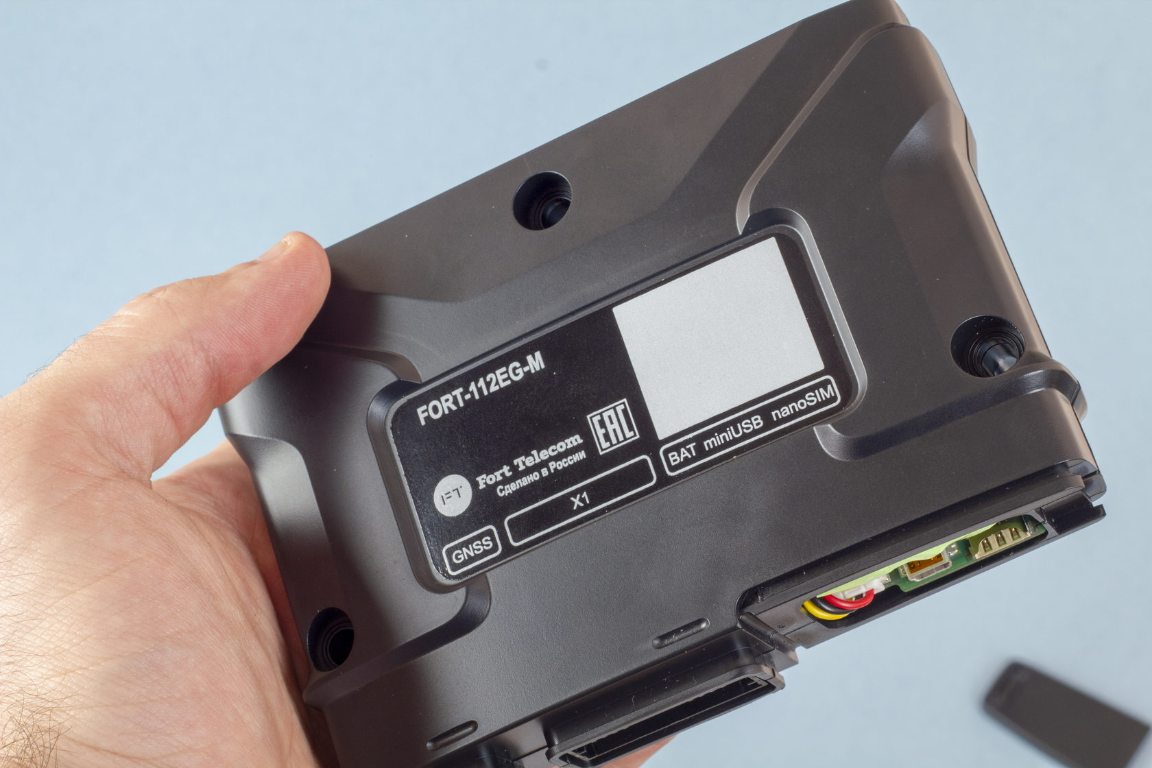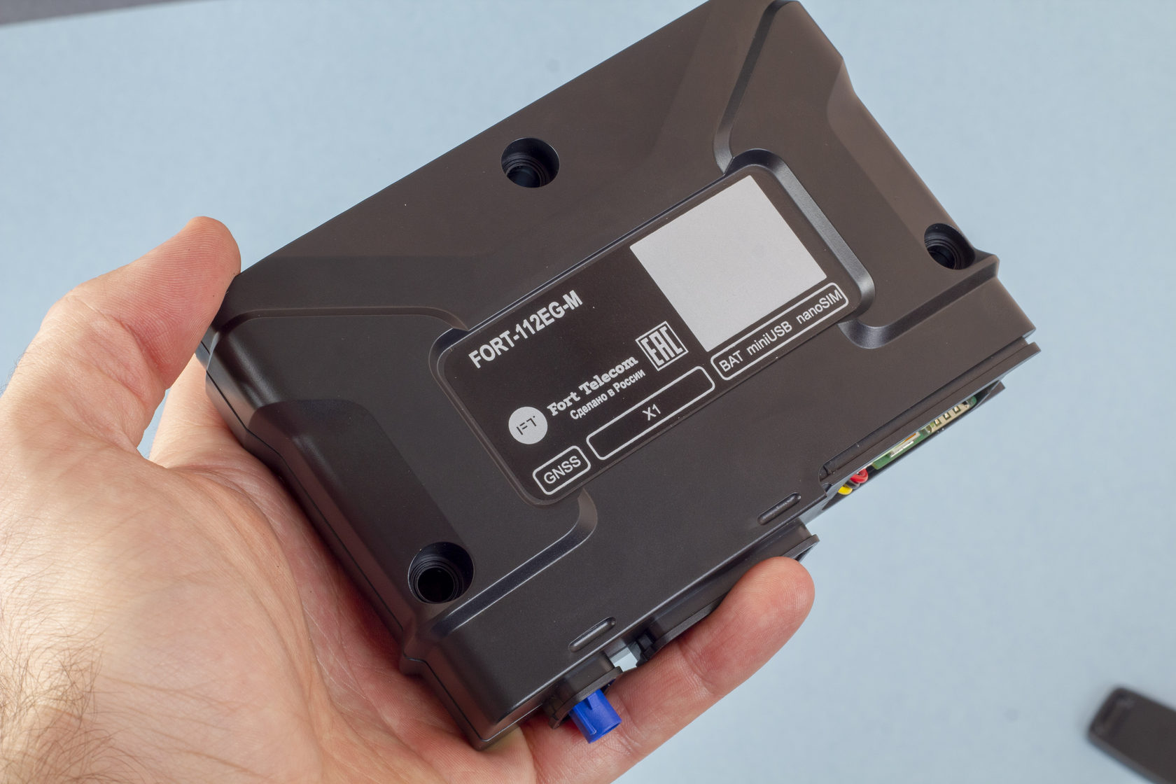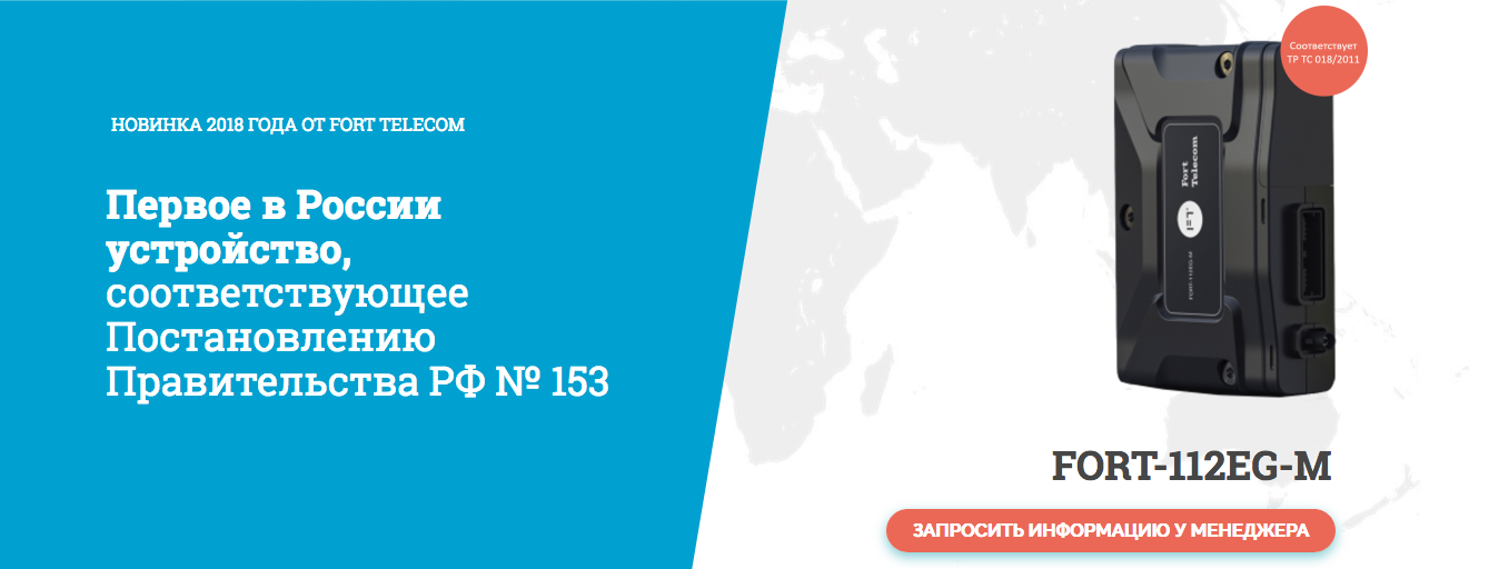 FORT-112EG-M — устройство для автомобилей, которое может определять местонахождение авто с помощью GPS и ГЛОНАСС, передавать сообщения при ДТП и обеспечивать двустороннюю связь с экстренными службами.