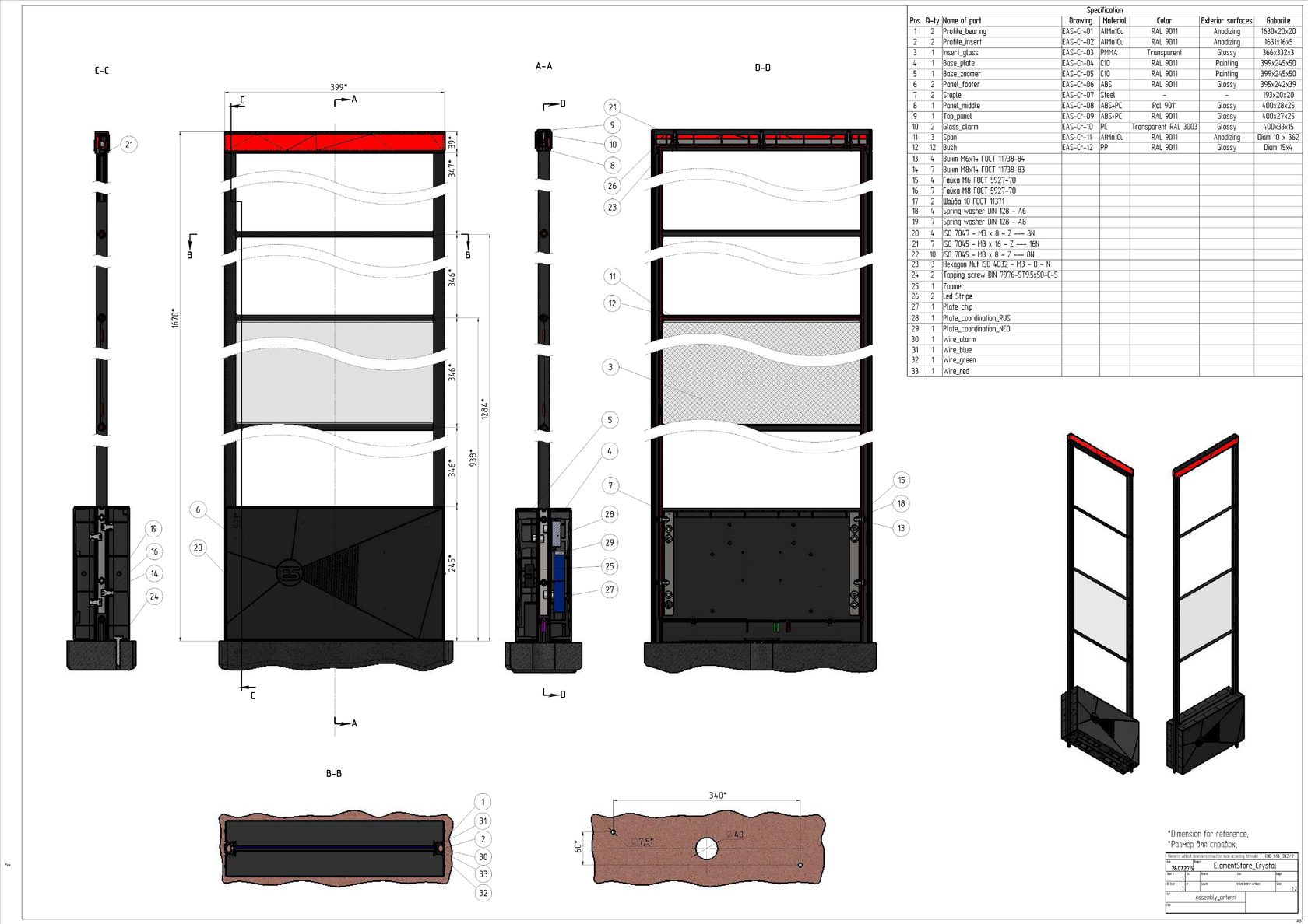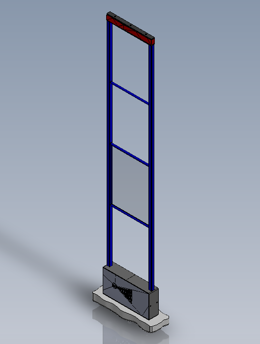 Антенна для предотвращения краж в магазинах состоит из пластикового или алюминиевого корпуса (какого конкретно — определим в процессе разработки); непосредственно антенны — двух контуров проводов с двумя и тремя петлями, — а также короба для установки электроники и крепления обвеса, световой сигнализации и блока электроники.