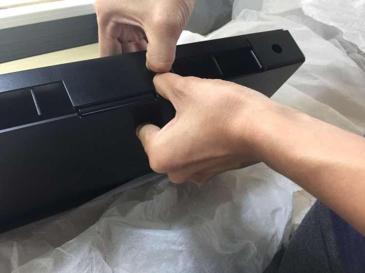 Принцип крепления съёмных панелей — защёлки из алюминиевого профиля. Конструкция должна обеспечивать монтаж и демонтаж панелей с одной стороны (если, например, система стоит вплотную или почти вплотную к стене).