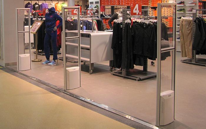 Одна стойка антенны — это передатчик, который сканирует товар на наличие противокражных меток, другая — приёмник. Если сканер засекает метку, то приёмник поднимает шум и включает световую сигнализацию.