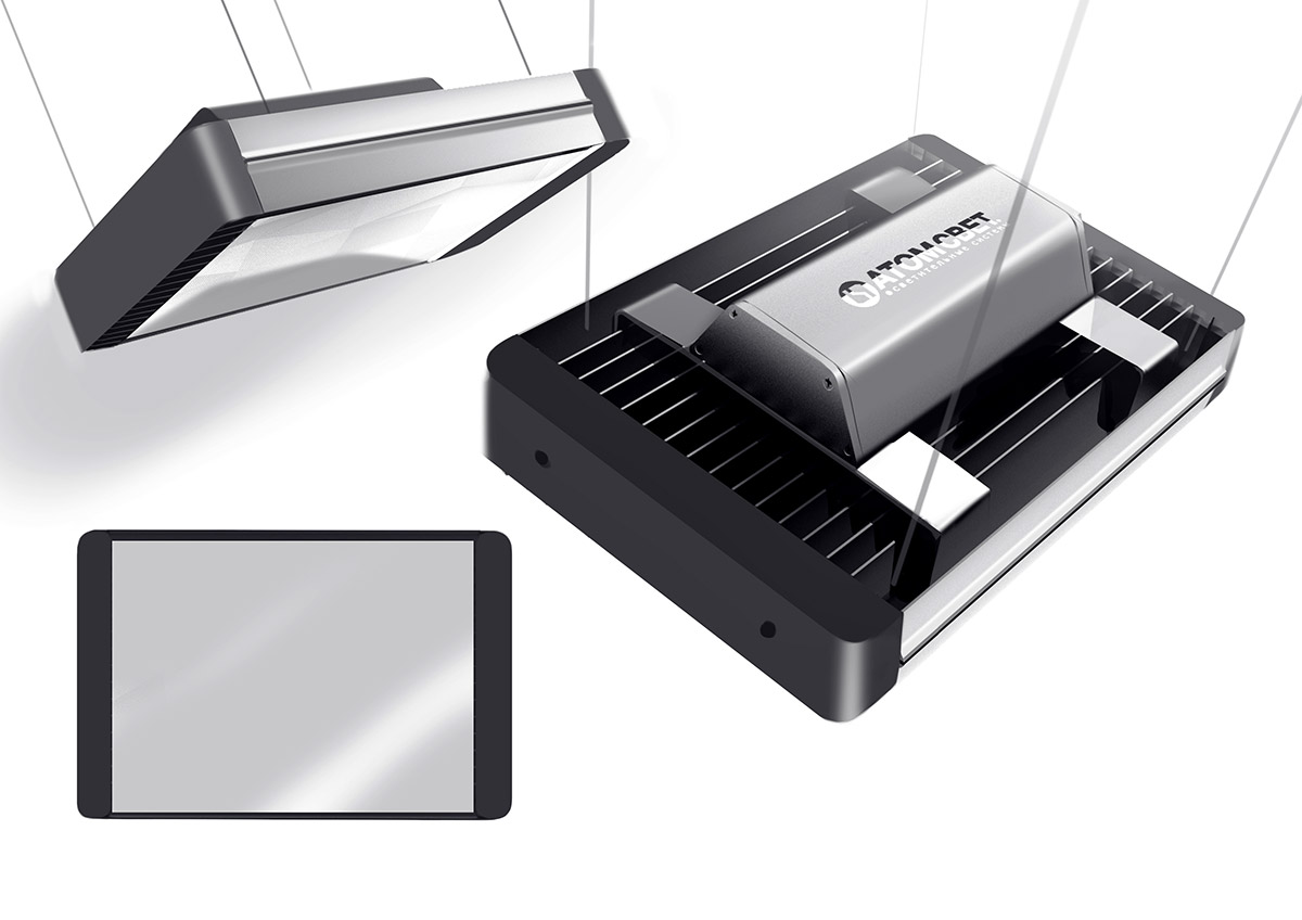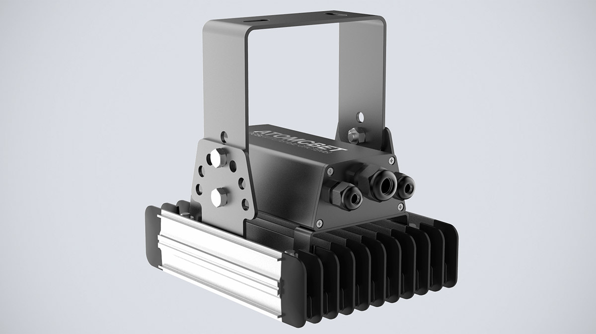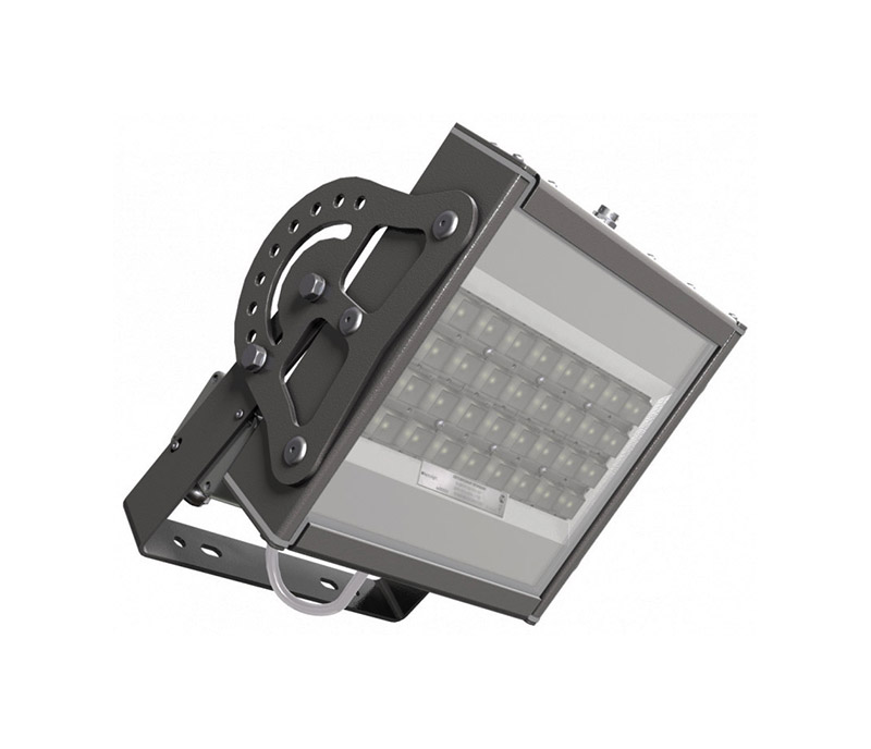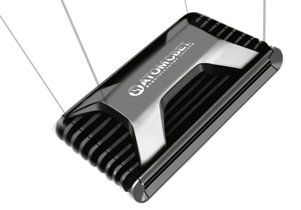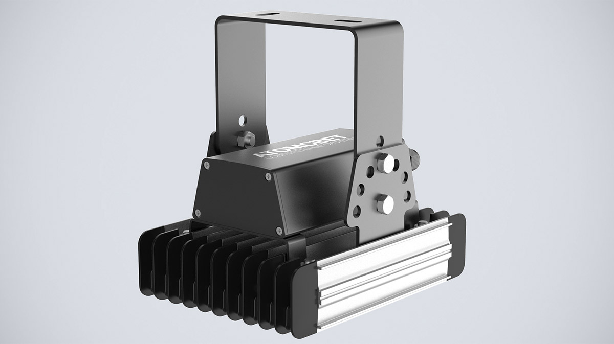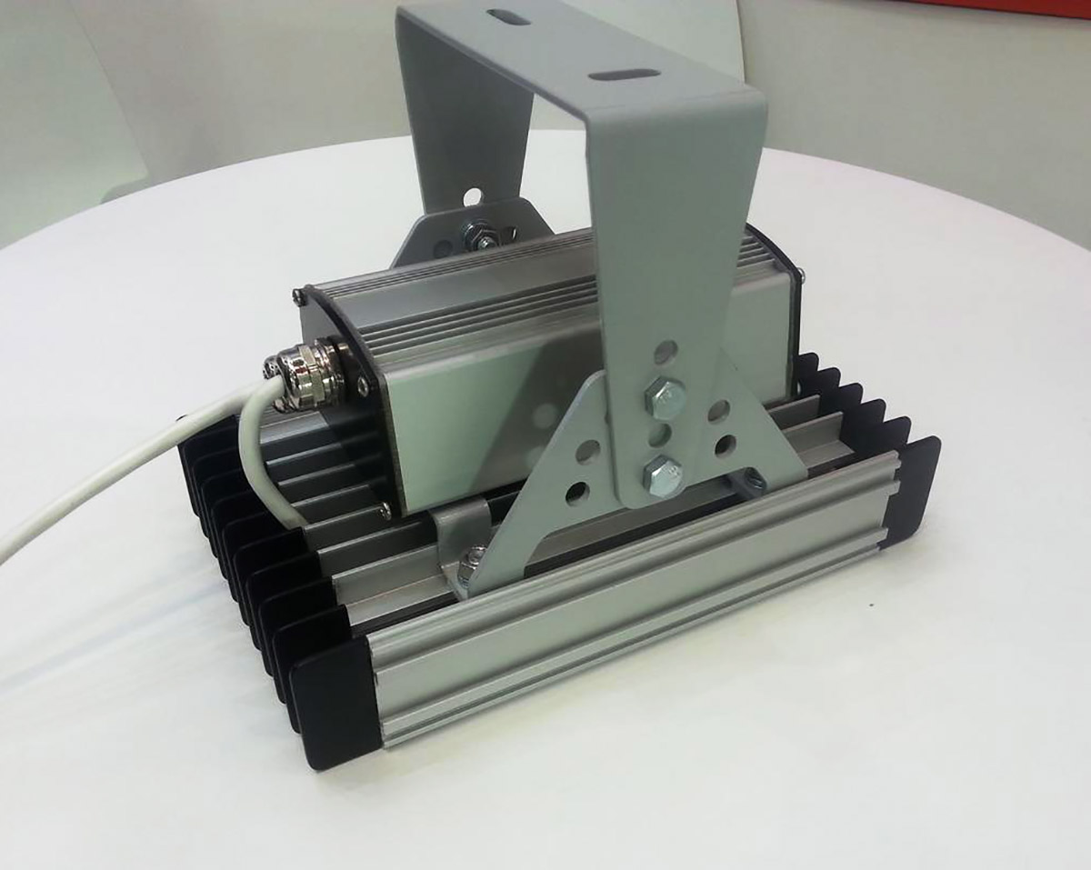 Корпус промышленного светодиодного светильника с одной платой состоит из металлического радиатора с заранее определённой площадью оребрения и корпуса блока питания (он размещается в верхней части светильника), боковых пластиковых накладок и лицевой панели. Для установки светильника используется несколько типов кронштейнов (возможны поворотное крепление, крепление на подвес, консольное и т.д.).