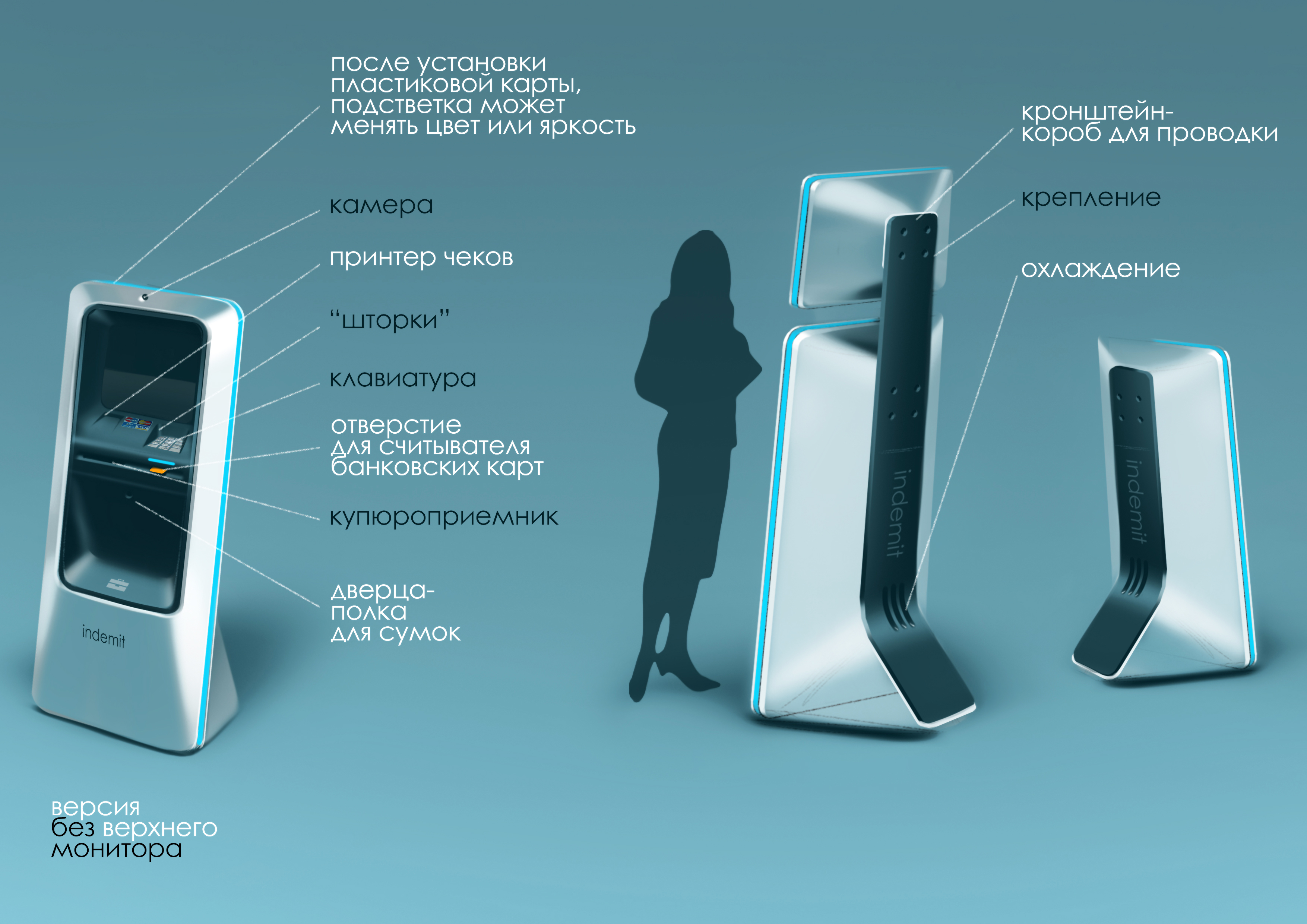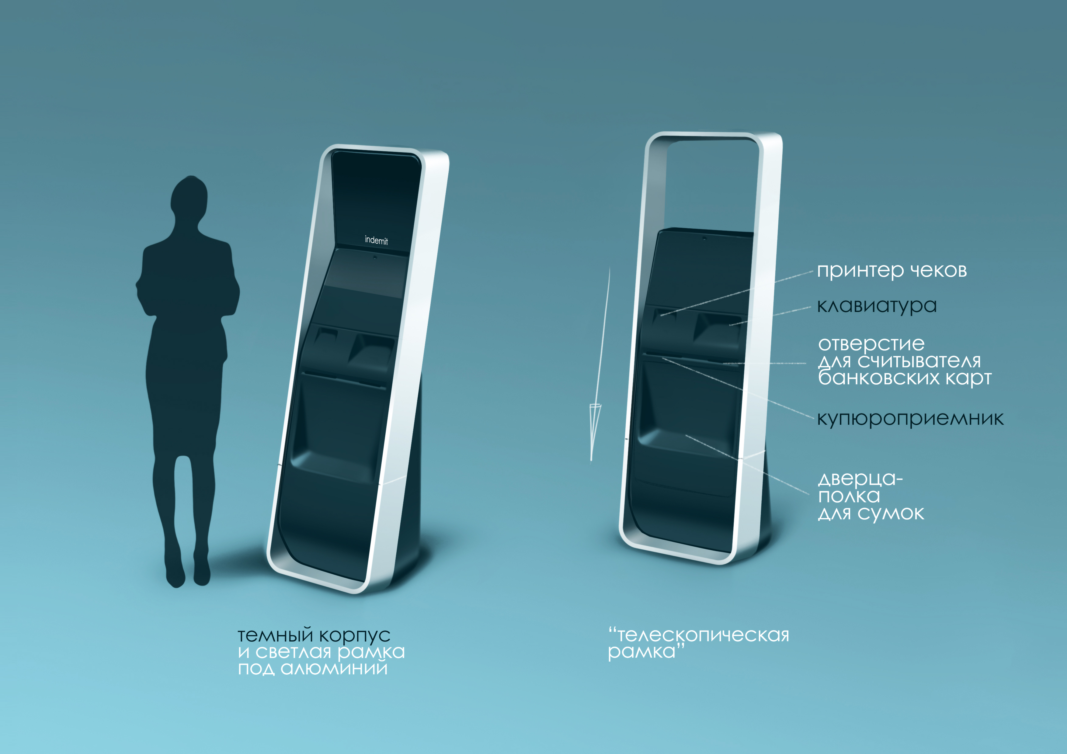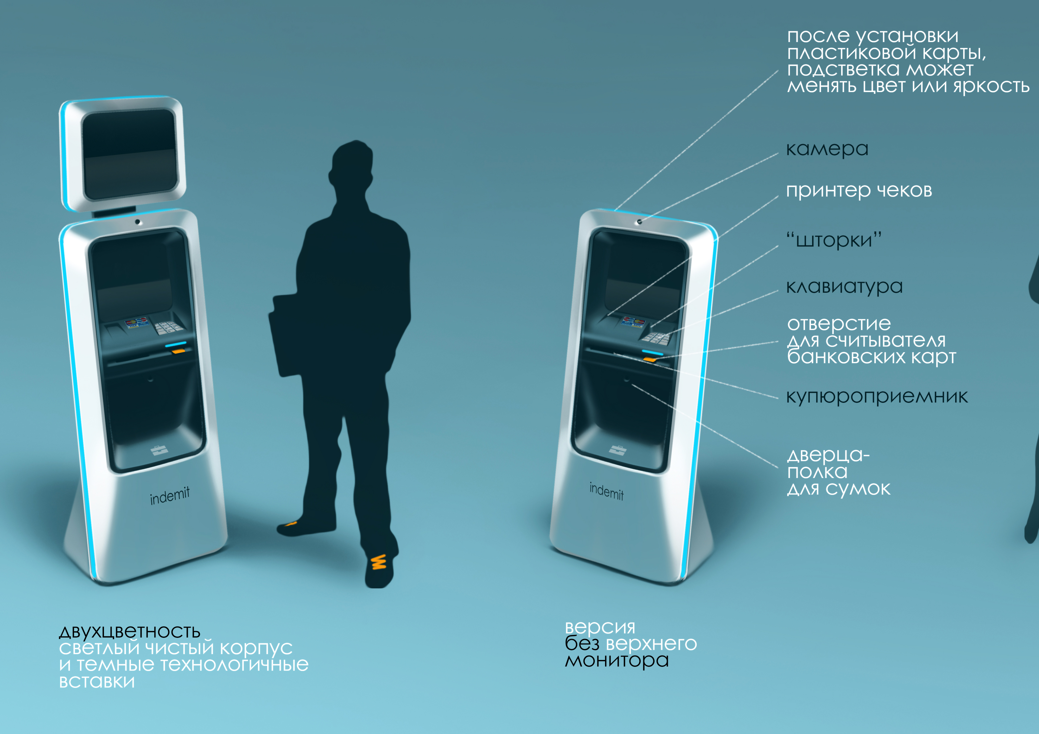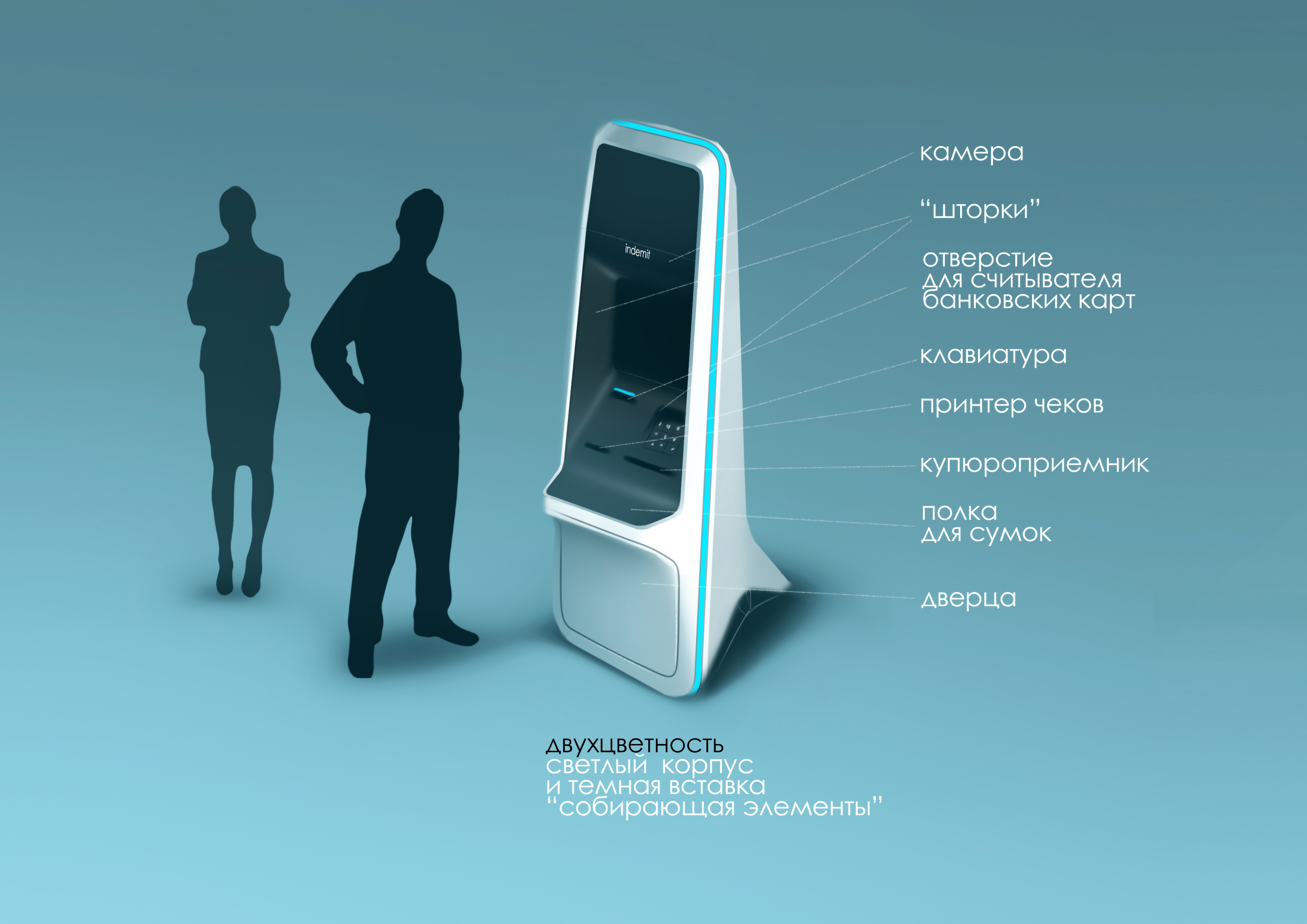 | Что нужно сделать? Параметры заказа | Банкомат должен работать, открываться, закрываться и вообще производить впечатление полноценного продукта, разве что чуть сырого, поскольку это первый опытный образец. 1. Вандалоустойчивый металлический корпус 2. Защита он несанкционированного вскрытия 3. Ограниченные габариты и масса 4. Анкерные крепления к полу 5. Двухзонная компоновка (для инкассации и техподдержки) 6. Конструктивно предусмотренная защита от скимминга (кражи данных банковских карт с помощью спецустройств) 7. Стильный и строгий внешний вид, интуитивно понятный пользовательский интерфейс, светодиодная индикация приема денег, картридера и принтера чеков. |
