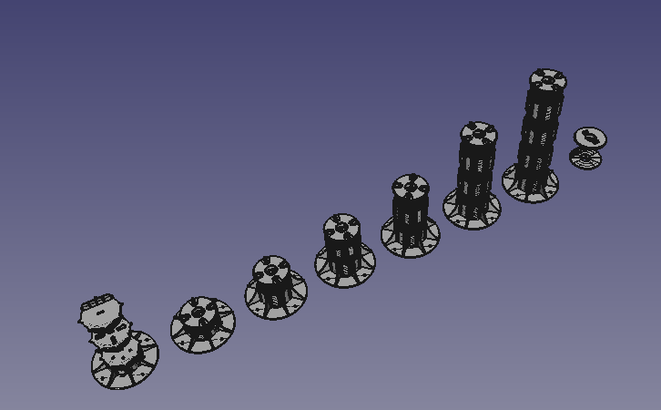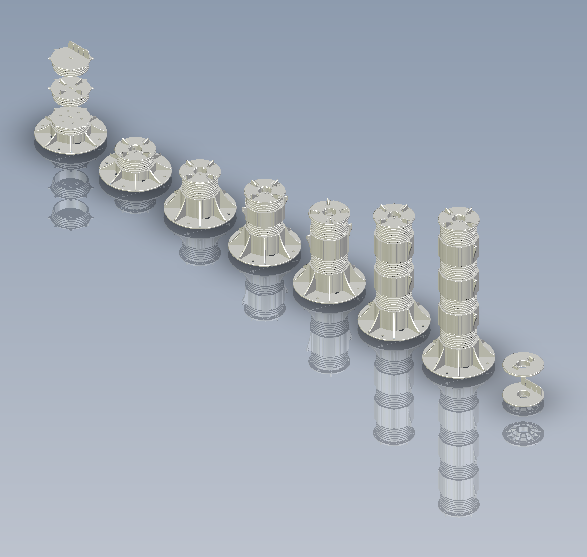 Требование заказчика — унификация деталей: большая их часть должна подходить для обеих вариаций оснований опор. Ну и, естественно, детали должно быть удобно монтировать — чтобы регулировку можно было осуществлять просто руками, безо всяких дополнительных инструментов.