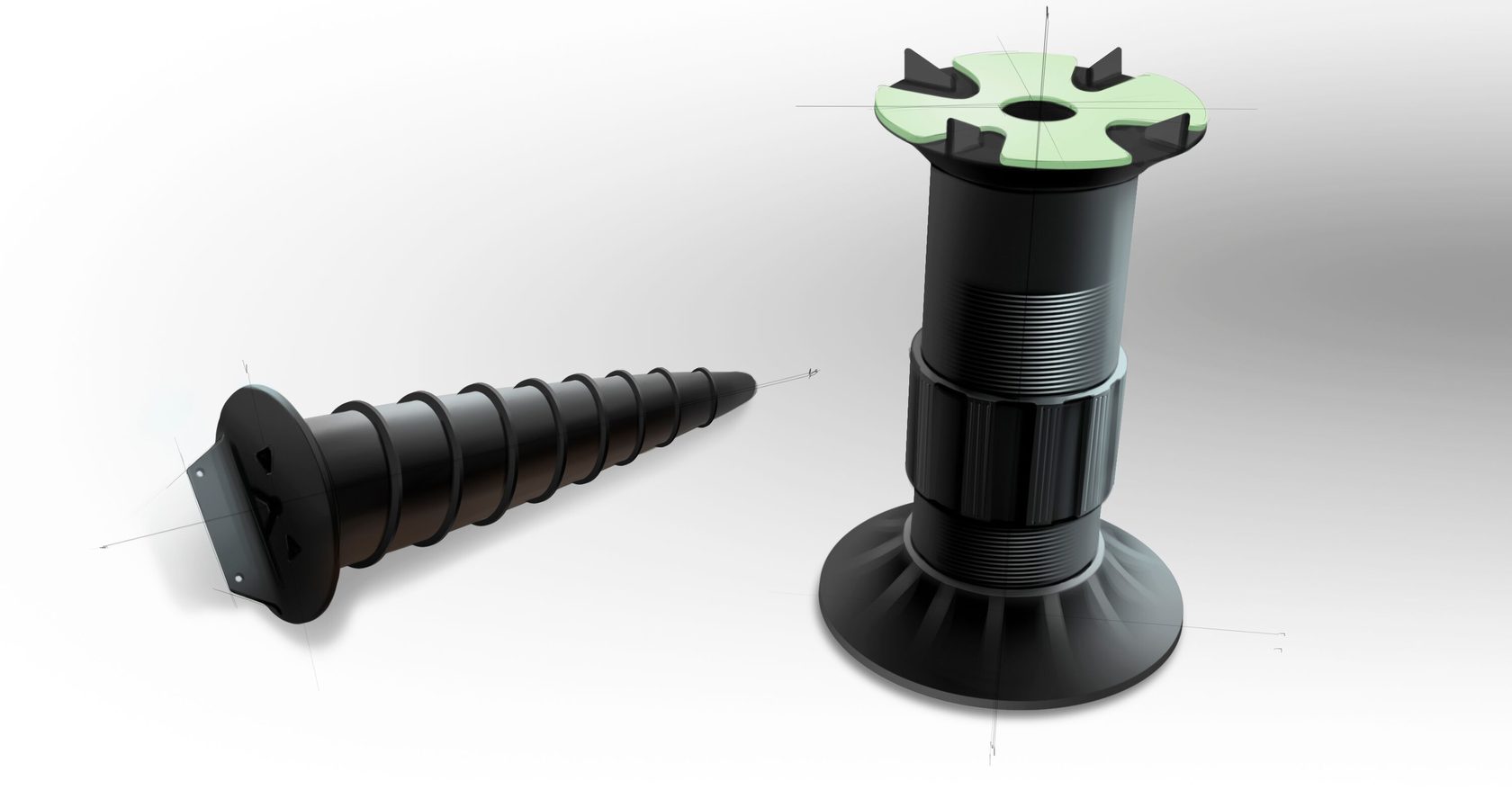 Заказчик разработки планировал это исправить, а одновременно расширить функционал продукта: если конкурентные системы можно было использовать при перепаде высот до полуметра, то новая должна была довести этот показатель до метра. Ну и вновь разработанный комплект должен был стать «родоначальником» целой линейки опор.