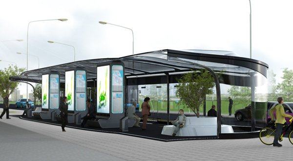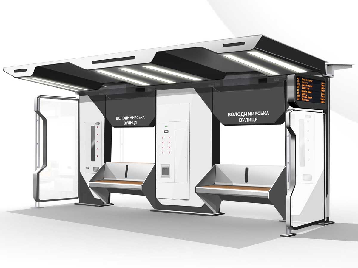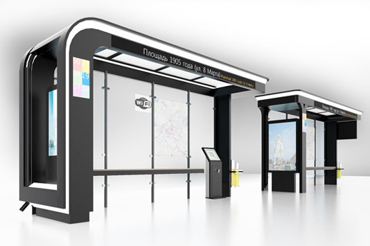 Концепт-дизайн остановки общественного транспорта, оснащённой вендинговыми автоматами