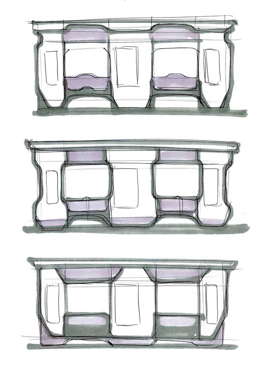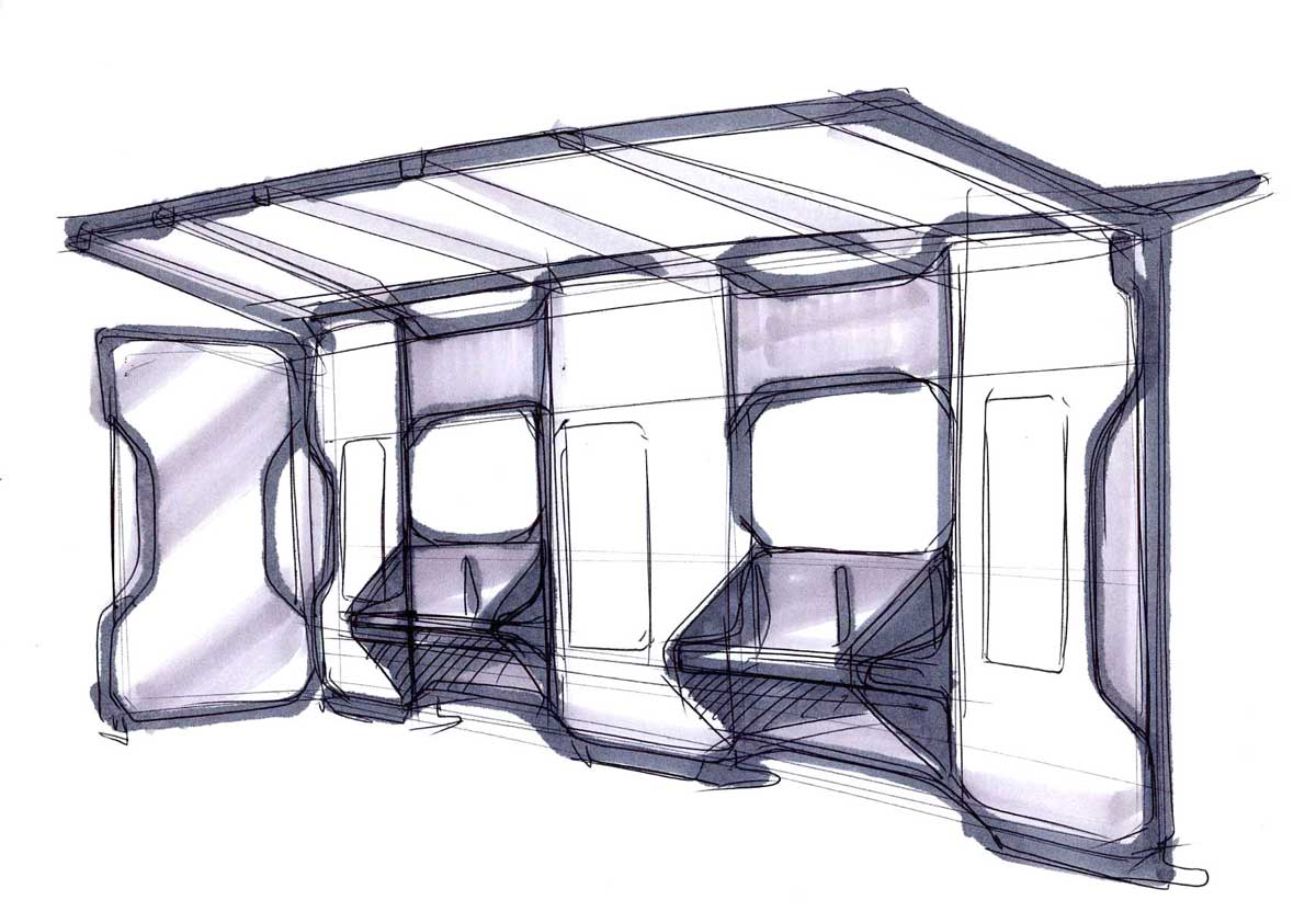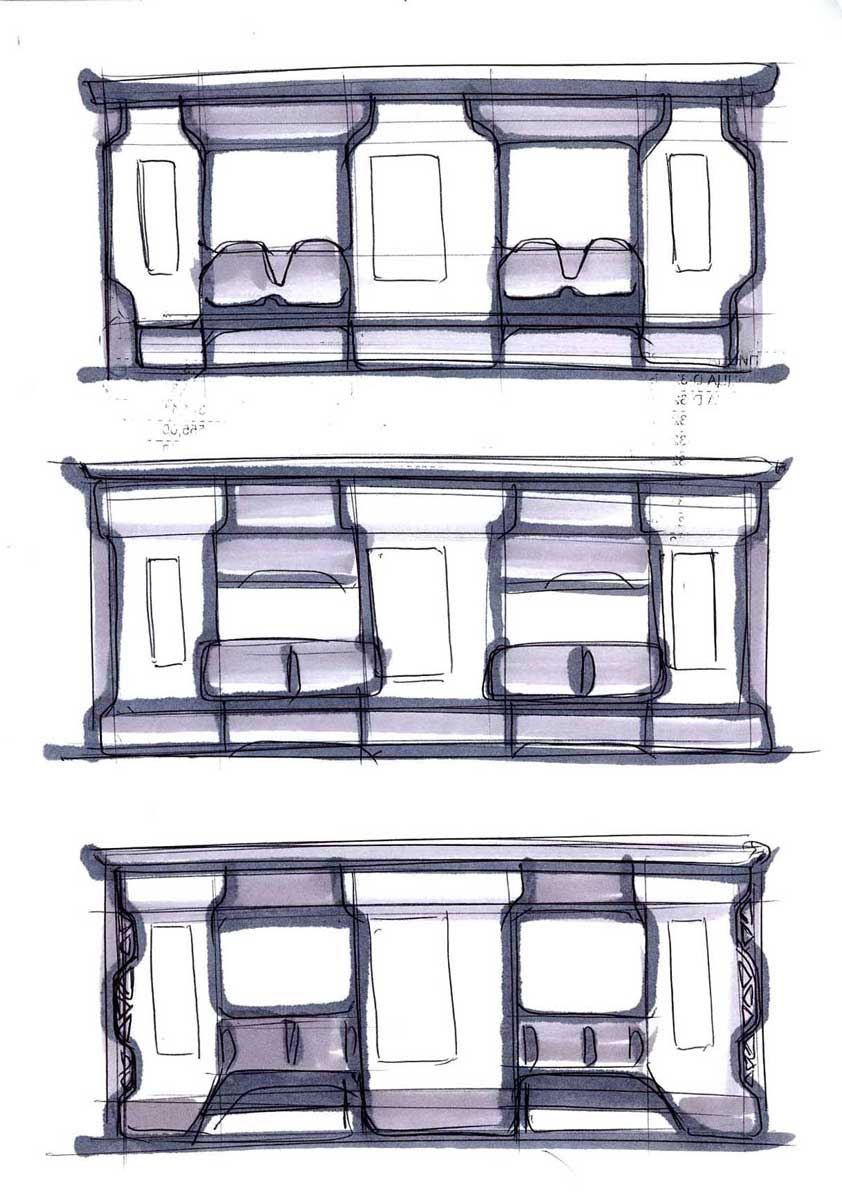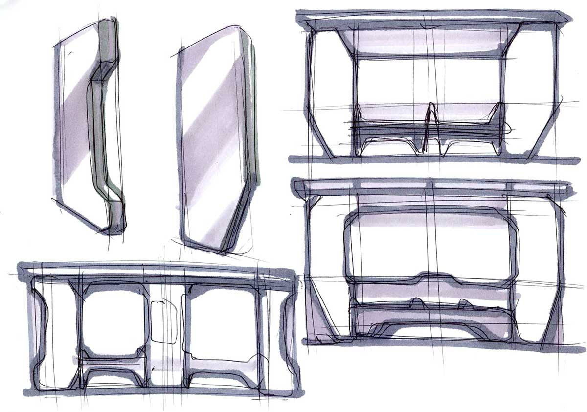 Каркас остановки — из нержавеющей стали. В оформлении почти никаких ограничений — можно использовать и стекло, и дерево, и окрашенные поверхности. Требования к дизайну — урбанистический стиль, но в то же время остановка не должна выглядеть инородным элементом в исторических центрах города. Черновики: