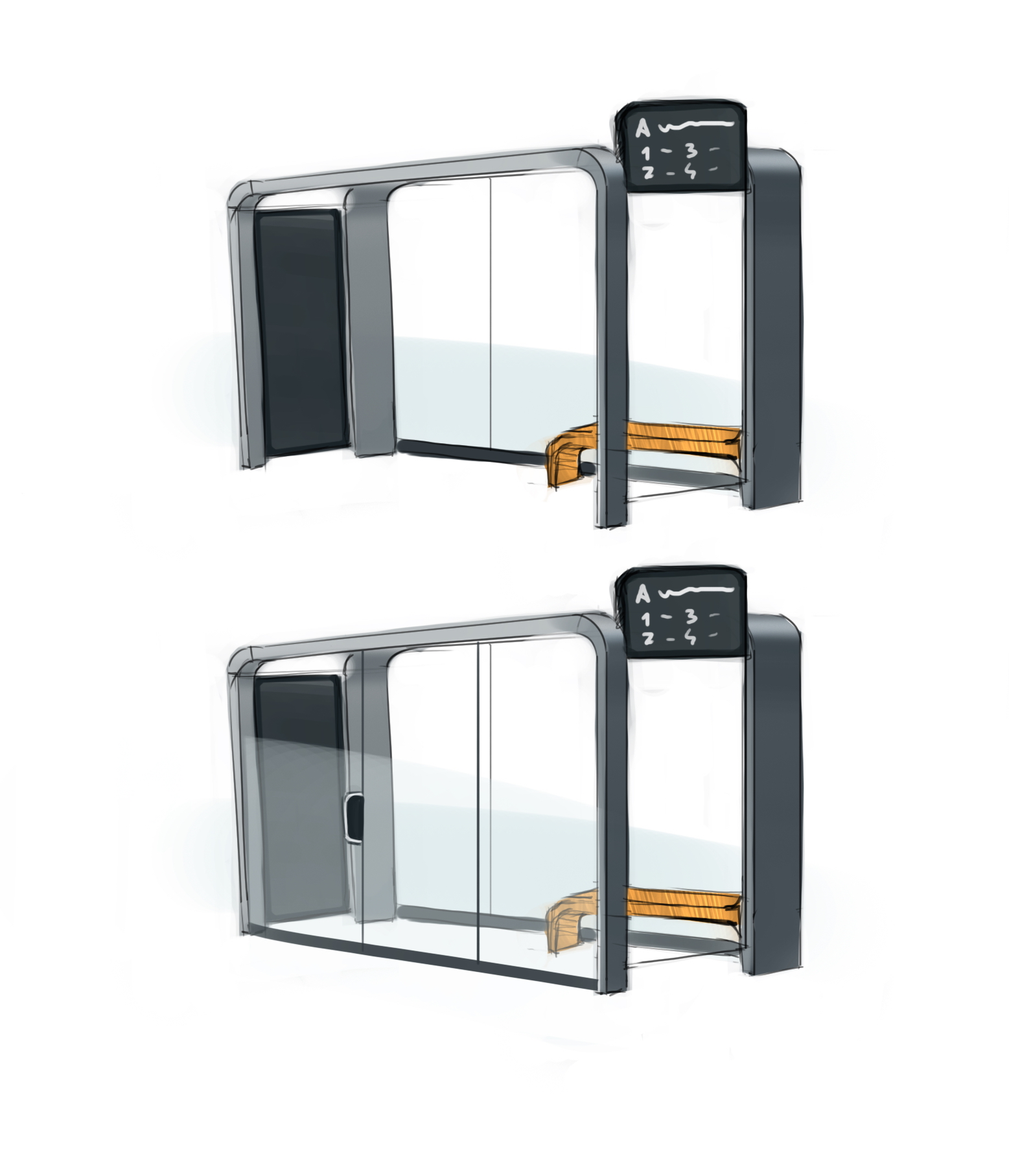 Нужна новая модель остановочного павильона: как водится, с интегрированными вендинговыми автоматами, терминалами, пунктами зарядки, камерами видеонаблюдения. Но главная цель разработки — создать такую конструкцию сооружения, которую будет легко перевозить с производства и просто монтировать на месте. Существующая версия не устраивает заказчика именно по этим критериям: доставлять предварительно собранную металлоконструкцию с завода напряжно, да и монтажников нужно нанимать квалифицированных.