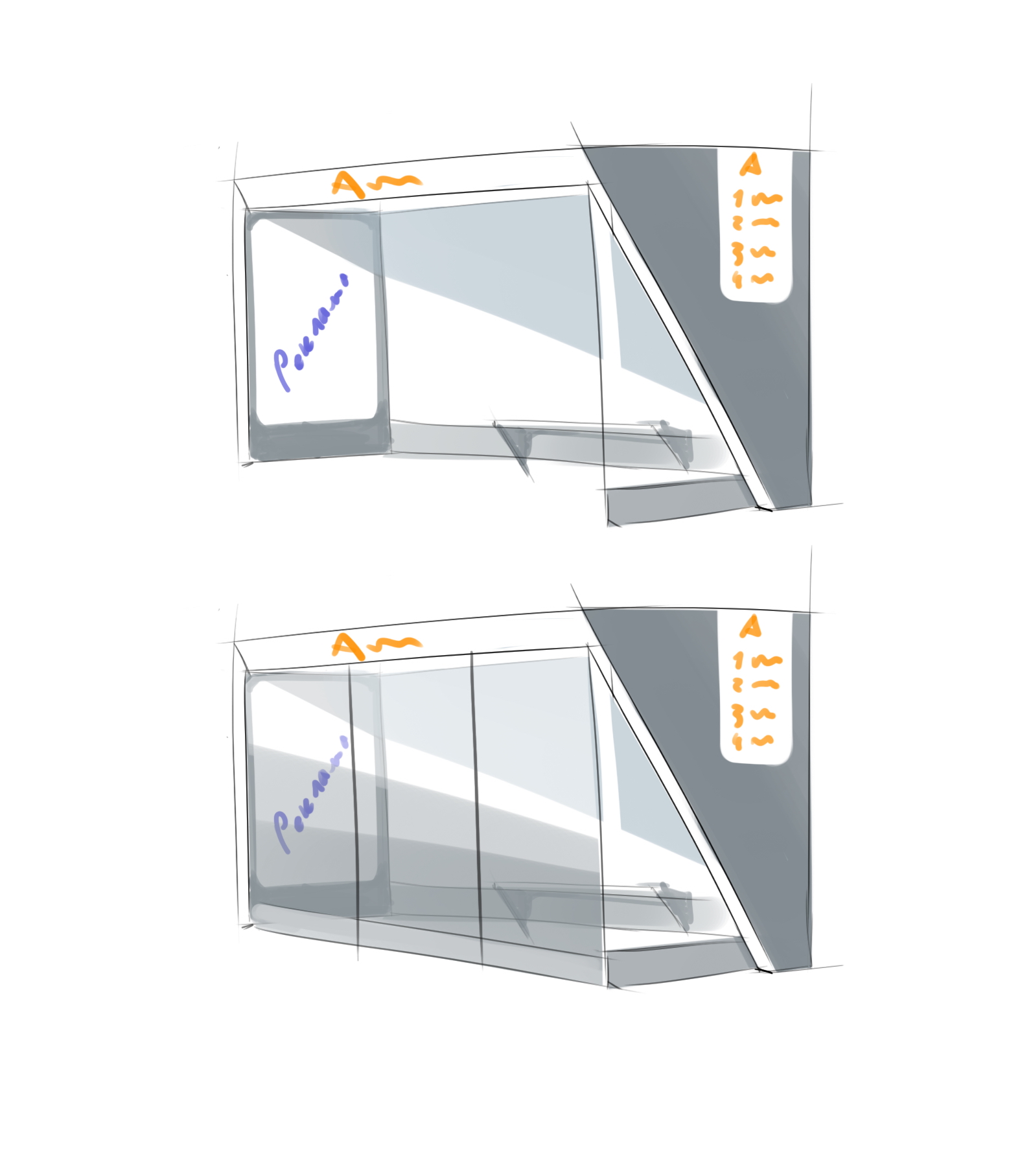 Сейчас задача — выбрать стилистику в общем, а все детали, пропорции, цвета и материалы проработаем позже, когда определимся.