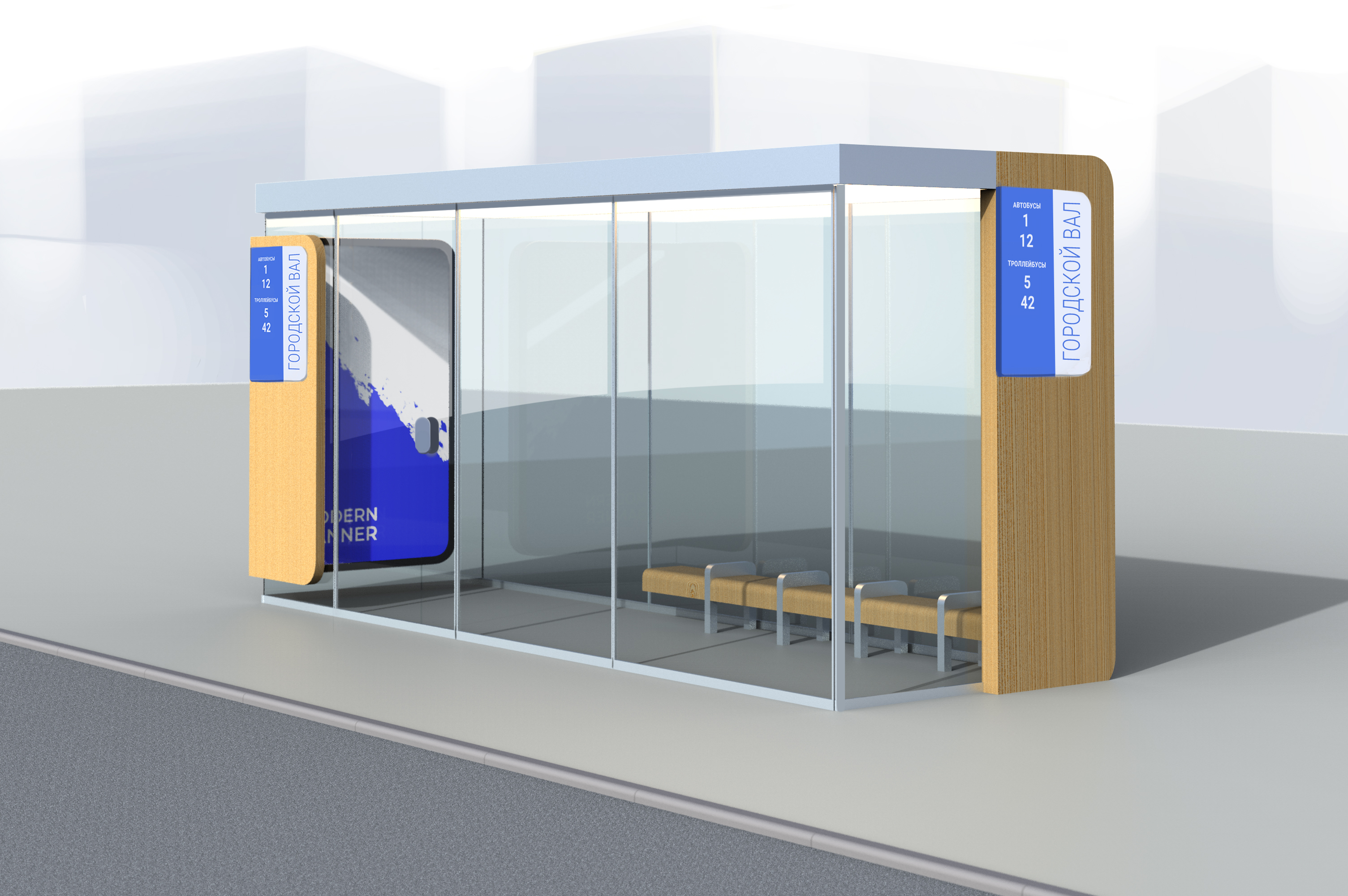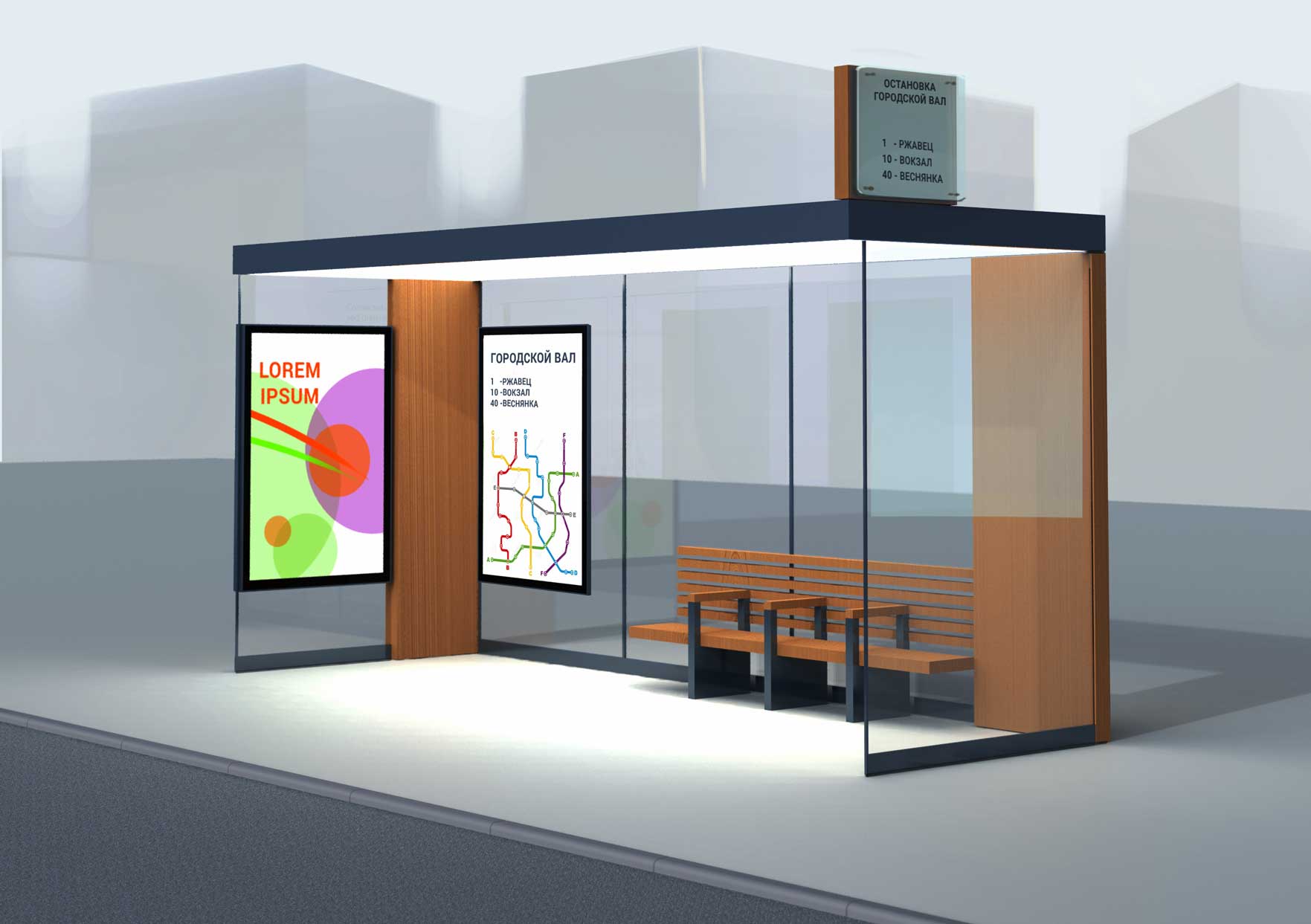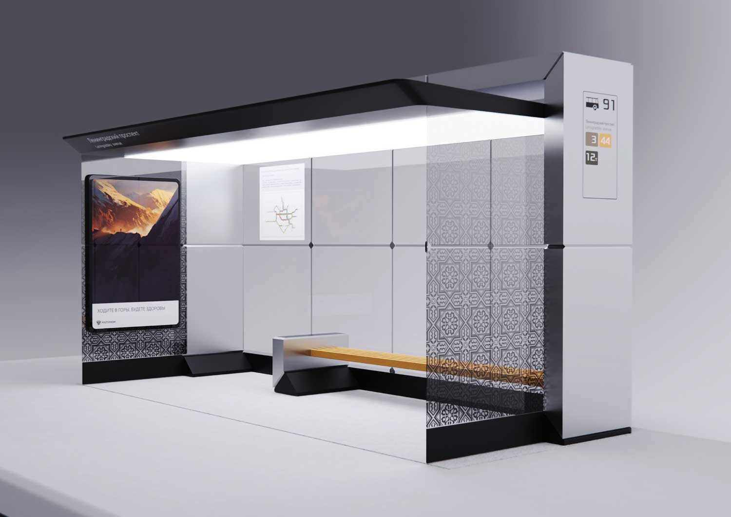 Само собой, на корпусе остановки должны быть места для размещения информационных схем и карт.