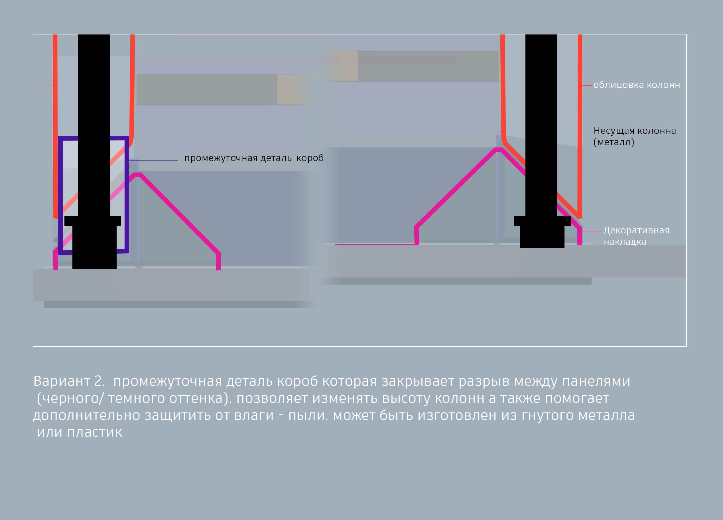 Вы же понимаете, что павильон устанавливается на ровную поверхность. А с таким остеклением, как мы рисуем, поверхность должна быть очень-очень ровной, иначе гарантированы проблемы и с выравниванием стекол, и дальше: под действием вибрации от транспорта они будут смещаться. В реальности идеально горизонтальных поверхностей не будет; значит, нужны опоры, которые будут держать конструкцию строго горизонтально.