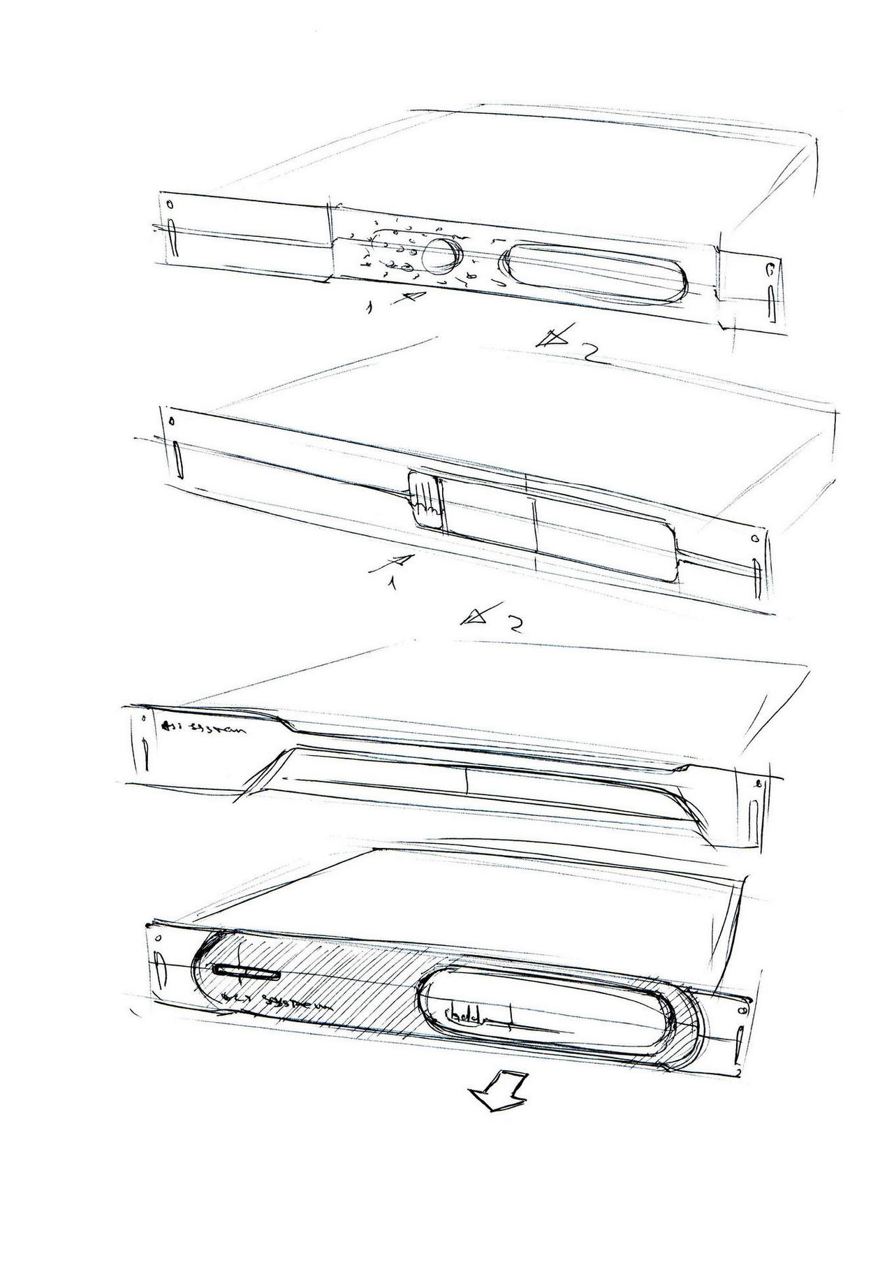 На этом этапе не так критично попадание в габариты, но очень важны пропорции. Поэтому мы, как правило, перед прорисовкой создаём так называемые габаритные коробки, а дизайнер рисует поверх них. Итак, садимся прорисовывать выбранные на прошлом этапе варианты: