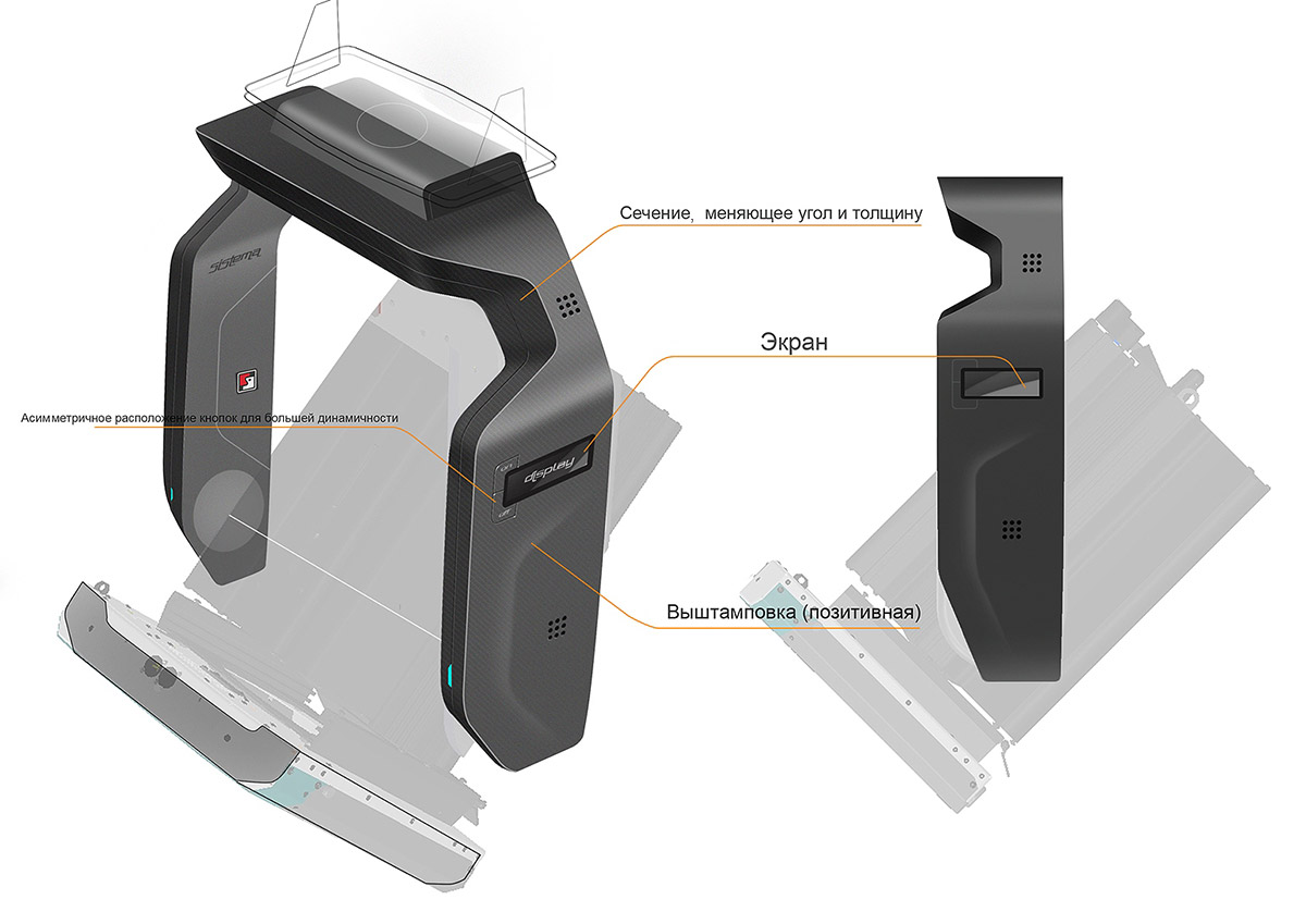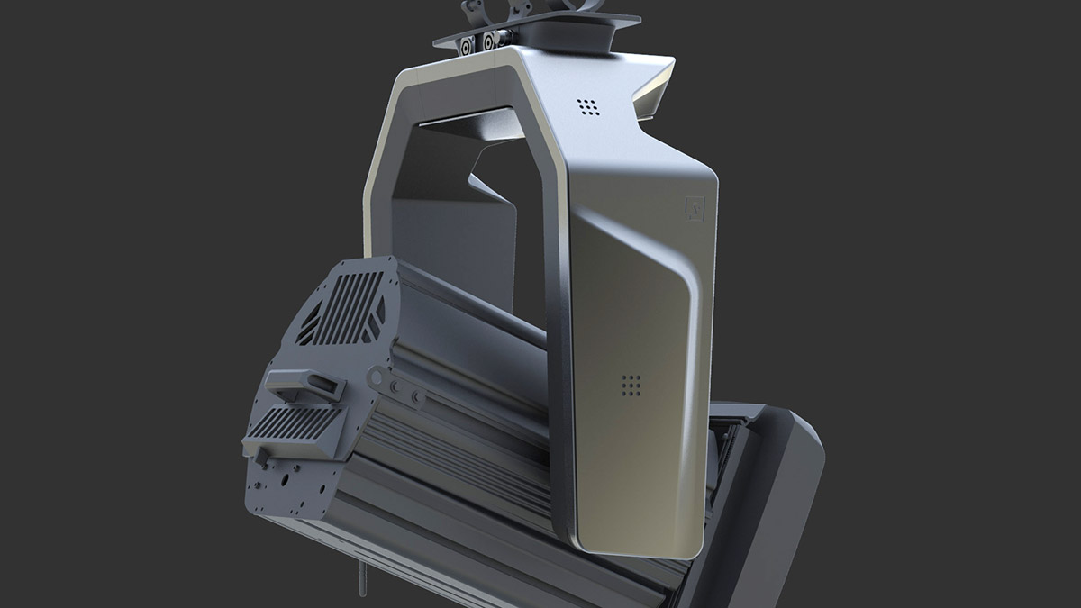 Компания «Система», заказывая нам концептуальную разработку новой лиры для своих прожекторов, поставила приоритетом отличие внешнего вида этого элемента от исторически сложившихся решений на рынке профессионального осветительного оборудования. И при этом мы должны были остаться в рамках ограничений на габариты внутреннего оборудования и учесть жёсткие условия эксплуатации подобных приборов.