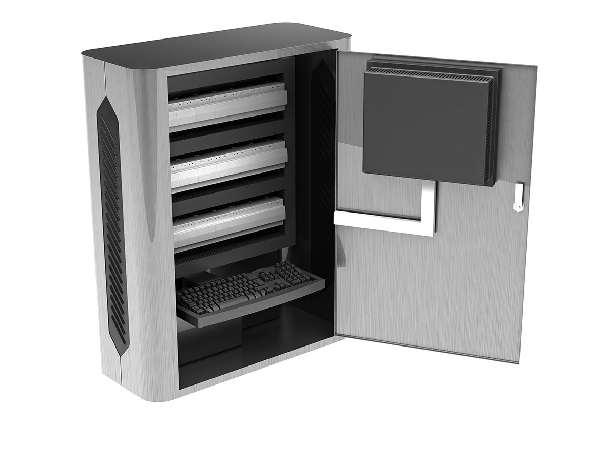 Поскольку корпус будут перевозить, нужна конструкция, устойчивая к транспортировке. Из этих же соображений — защиты при перевозке — нам рекомендовано разработать специальную защитную крышку для наружной ЖК-панели. Следует также учесть, что при складировании шкафы будут штабелироваться.
