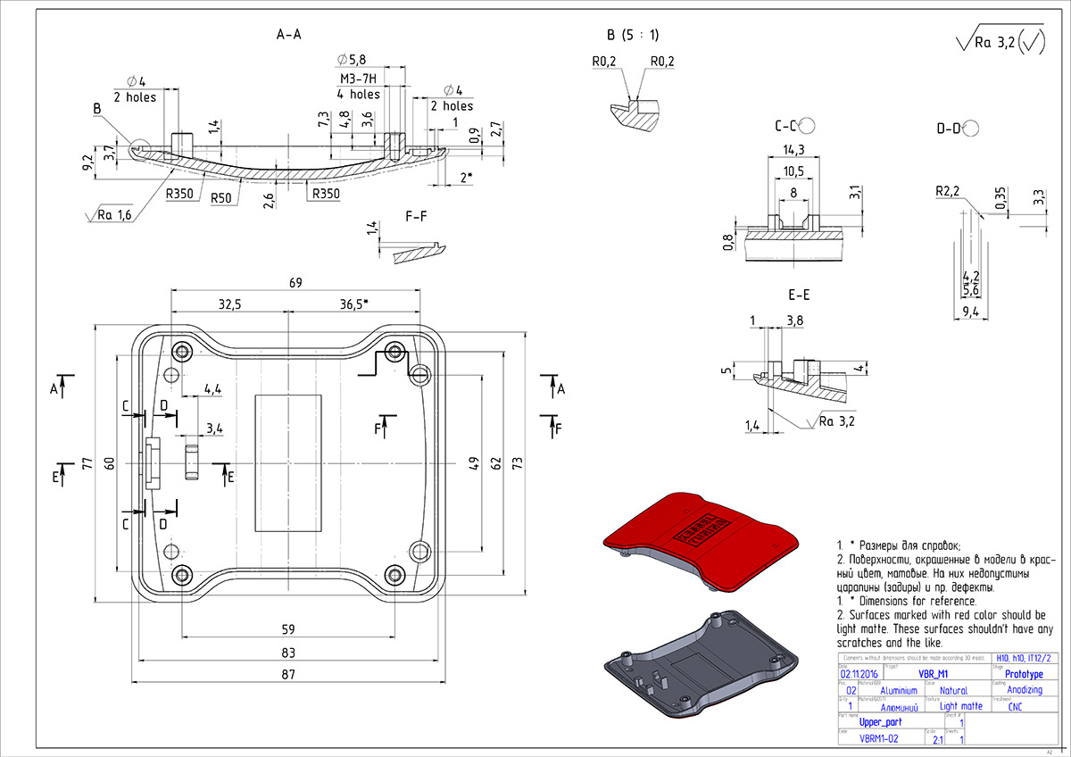 Допустимые технологии производства — литьё / фрезеровка алюминия и/или литьё пластиков под давлением.
