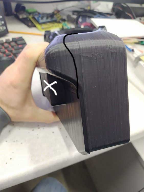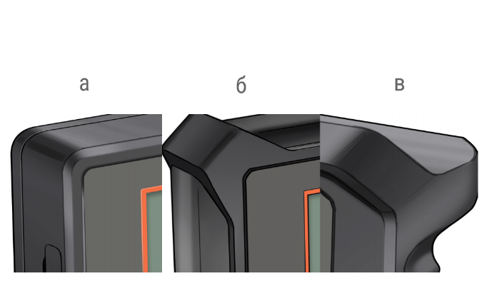 Самым удобным оказался корпус без ухвата. Одновременно приняли решение убрать рамку на передней части, уменьшить выступ на задней, убрать ступеньку для установки разъёма.