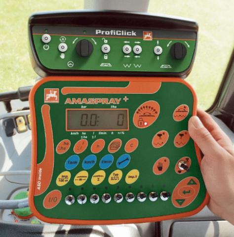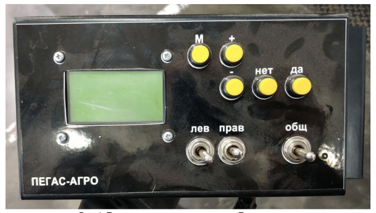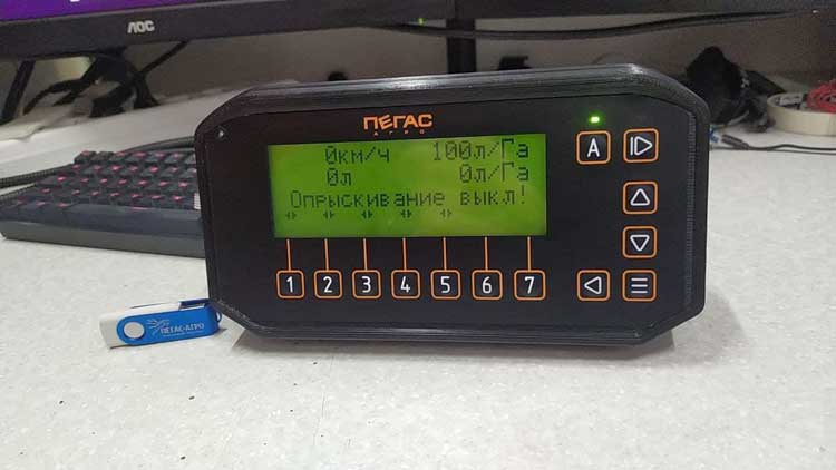 Пульт монтируется в кабине трактора, на котором работники ездят по полям. Типовой сценарий использования такой: специалист приехал на место — в поле, проверил настройки на пульте, протестировал работу опрыскивателя, поехал, нажал на кнопку «Старт работы». Во время движения работнику приходится нажимать кнопки секций, посматривать на выводимые на монитор параметры системы, следить, не возникла ли аварийная ситуация (тогда звучит зуммер, а на дисплей выводится предупреждение). По окончании работы пульт выключают.