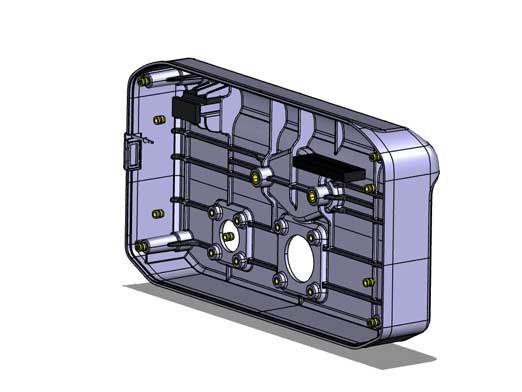 Мы работаем над дизайном корпуса и проектируем внутреннее размещение компонентов, в том числе и места крепления. Обязательные условия: глубину корпуса уменьшать нельзя, способ крепления половин корпуса остаётся тем же — на винтах; по возможности нужно минимизировать трудоёмкость сборки. Необходима также заглушка для USB-разъёма на задней крышке и особе внимание следует уделить усиление под кронштейн. Сейчас жёсткость слабая. Ещё требования: радиопрозрачность, прочность и IP54.