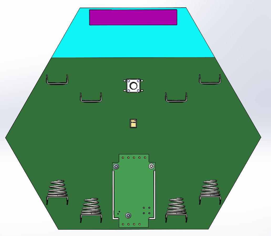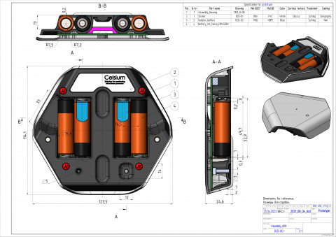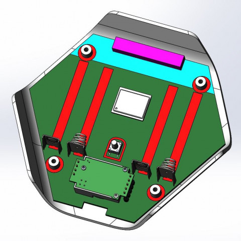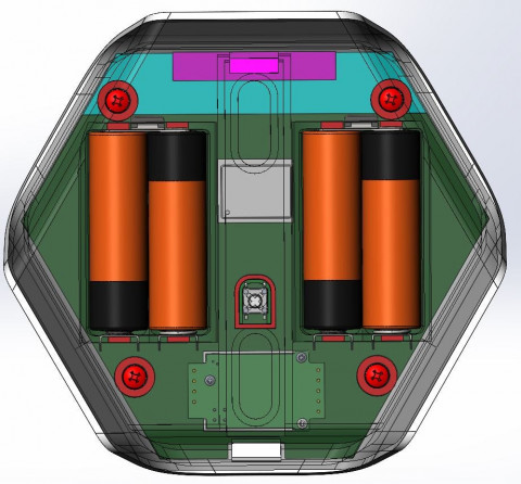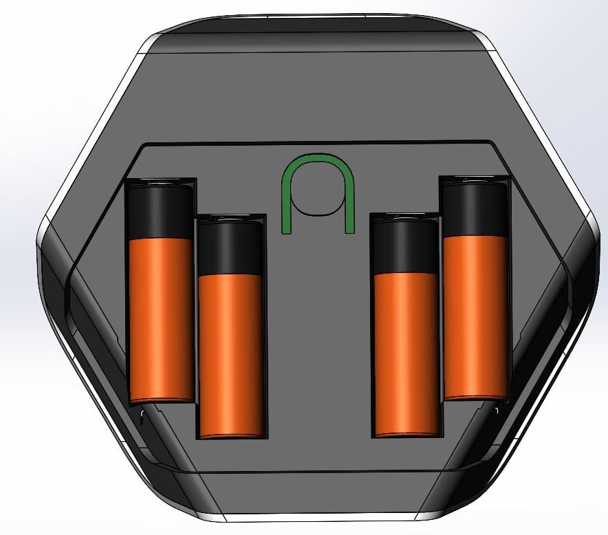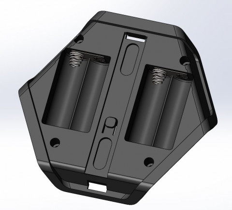 Обновленная эскизная конструкция после правок. Батарейки пользователь заменить сможет, а посмотреть, из чего состоит устройство — уже нет. Сборка — на 4-х саморезах: