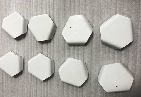 Все для прототипа, включая наклейки, заказывали на одном и том же заводе. Первые фото (крышки с отверстием — для датчика шума/освещенности, без — для датчика углекислого газа):