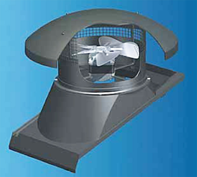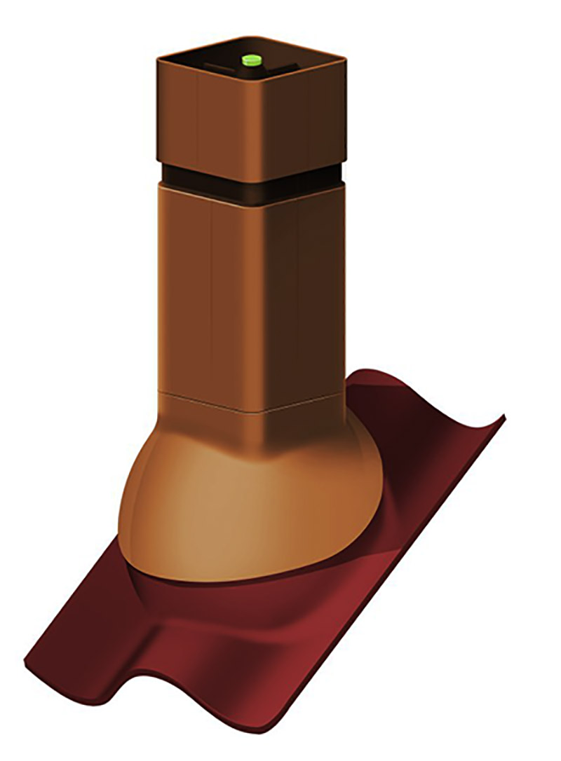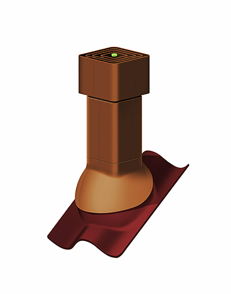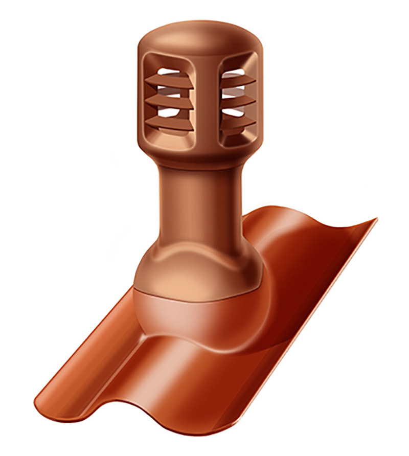 Вентиль высокой производительности устанавливается на кровли с углом наклона 10÷50°. Состоит из оголовка и основания. Если оголовки одинаковы для всех видов кровель, то основания различаются в зависимости от места и особенностей монтажа (всего их три типа).