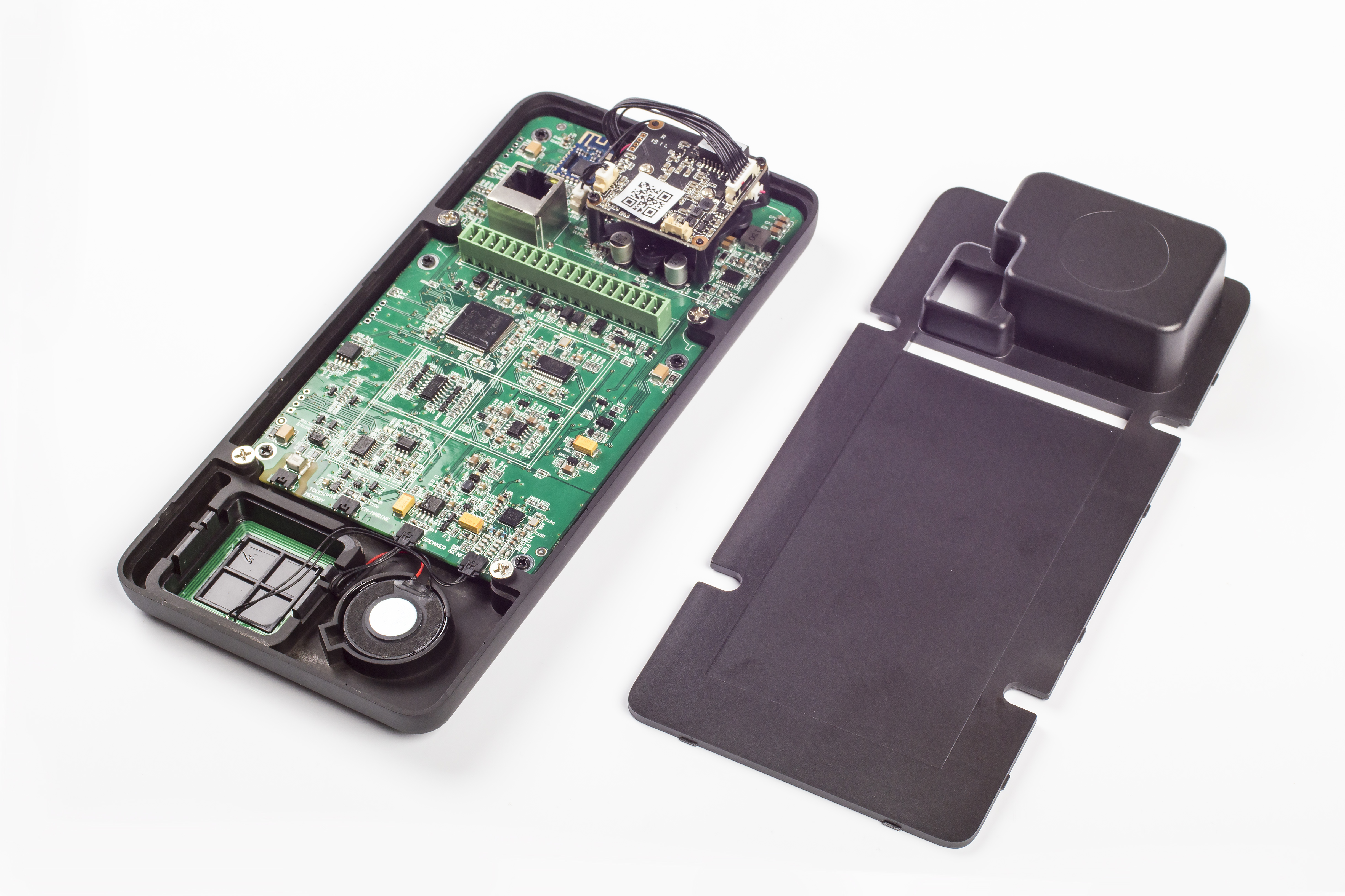 — Если это домофон, то понятно, что в корпусе есть динамик и микрофон. При проектировании первой версии домофона «Спутник» и динамик, и микрофон жёстко закрепили на корпус. В итоге оказалось, что динамик наводил помехи на микрофон через корпус и разговаривать нормально было невозможно. Поэтому в следующих итерациях «Спутника» микрофон закрепили через резиновый демпфер. Проблема наводок была решена.