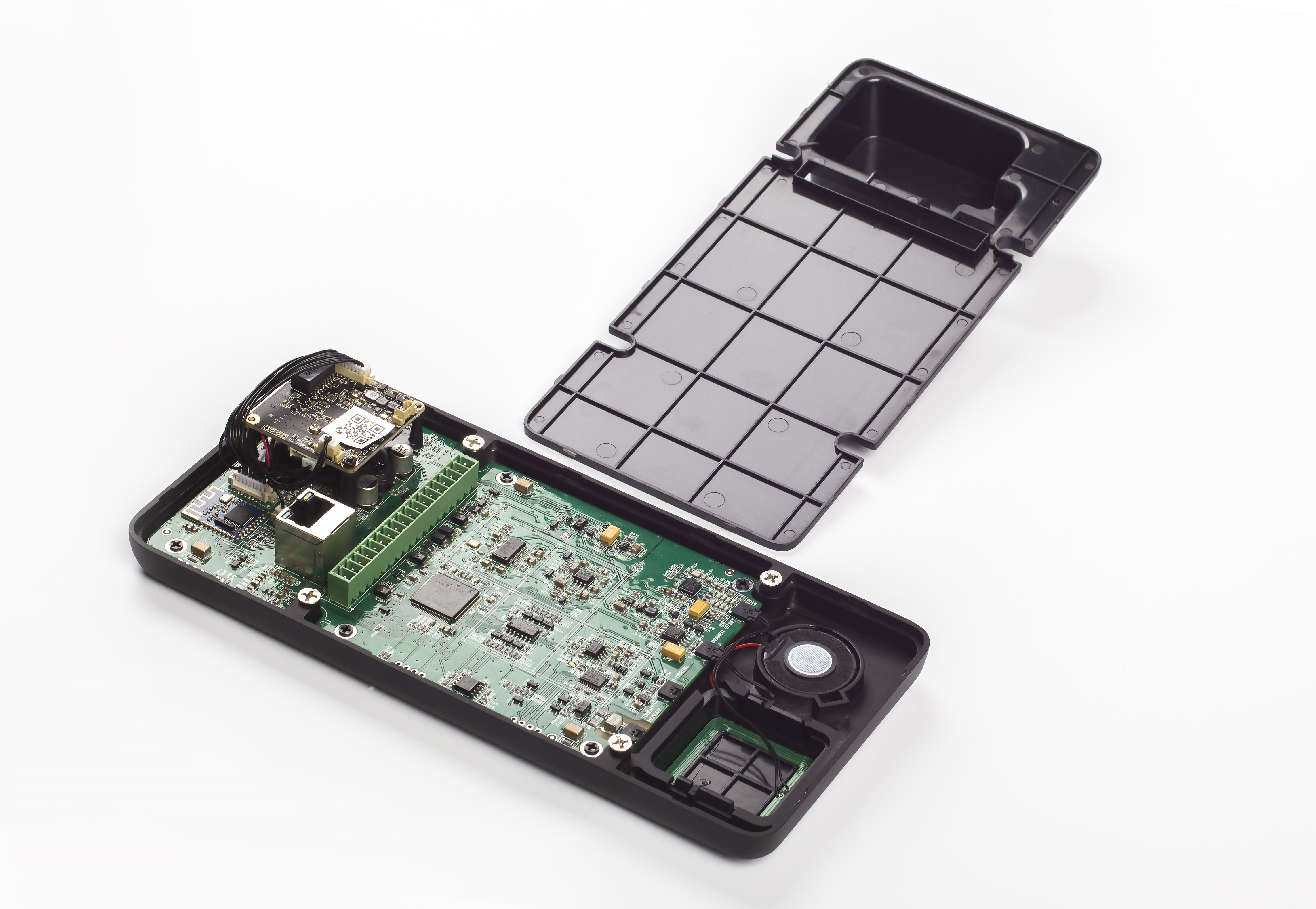 Получилось так, что мы сделали три версии этого домофона. В первый раз это был прототип для демонстрации инвестору. Во второй — заказчик внёс изменения в электронику. А третью версию создавали после того, как вторая прошла полевые испытания, и стало ясно, как ещё можно улучшить конструкцию.