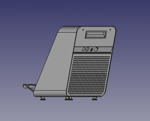 | Что нужно сделать? Задачи | 1. Упростить металлический каркас и детали корпуса, изначально разработанные под литье пластика. Убрать грани и скругления. Адаптировать конструкцию под минимальное количество гибов и скруглений. 2. Ложемент фильтроэлементов должен обеспечивать фиксацию донышек фильтроэлементов. 3. «Нет» штамповке при производстве деталей. Только гибка/резка металла. Допустима сварка, если без нее не обойтись. 4. Фильтроэлементы должны устанавливаться под определенным углом наклона. 5. Нужно оригинальное конструкторское решение: соединительная планка для собираемости конструкции (допускается изменить ложемент так, чтобы он выполнял ее роль). 6. Эстетичный вид корпуса с внешним видом , который даст понять, что эта штука относится к сфере HoReCa. 7. Обеспечить доступ внутрь корпуса для замены фильтрующих элементов и для сервисной службы - для ремонта электроники и электрики |