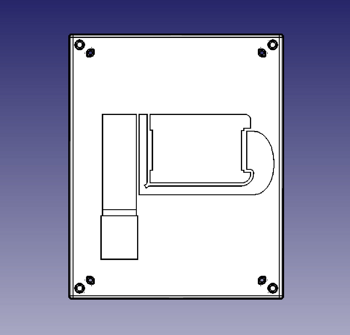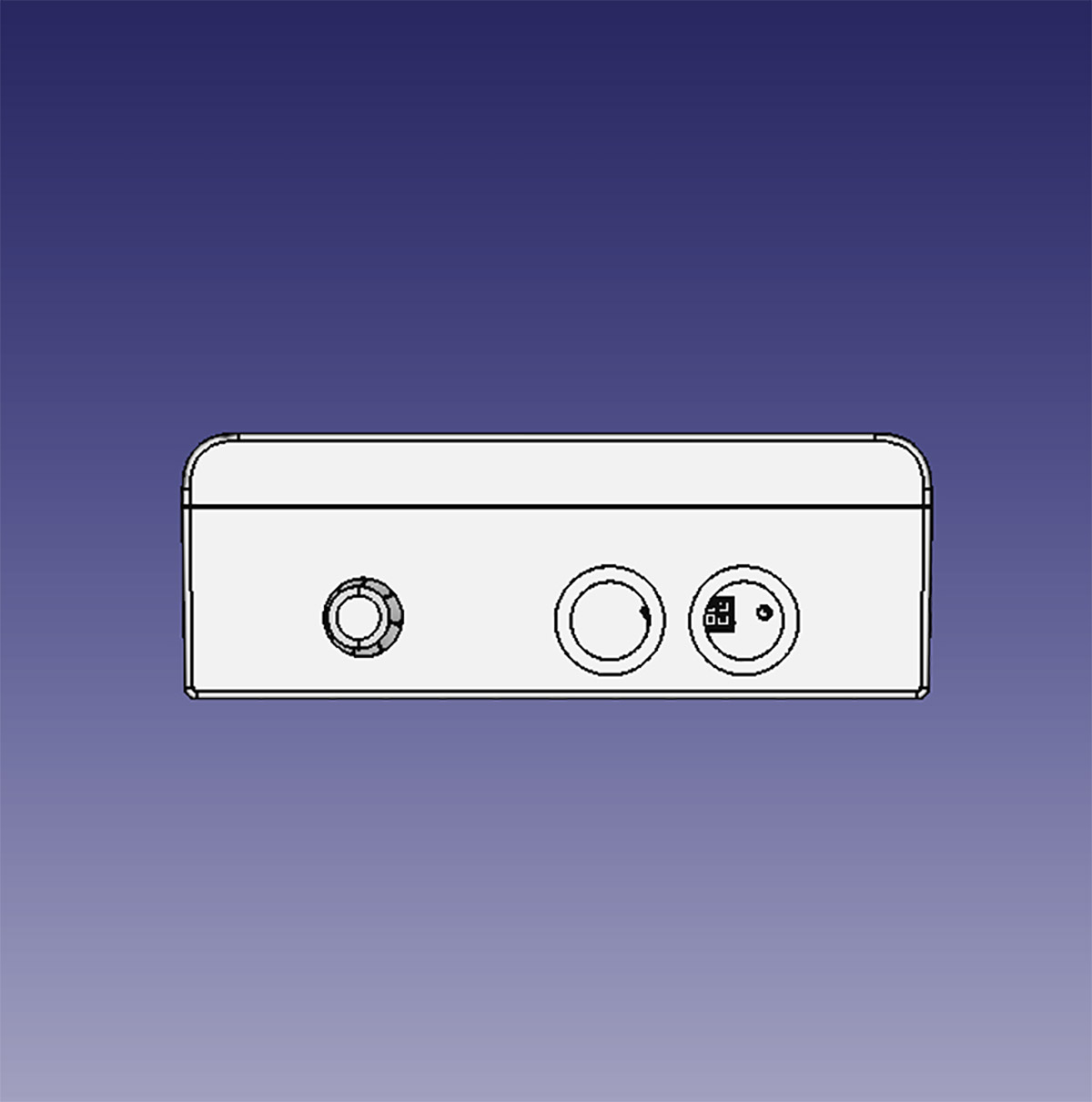 Разъёмы будущего извещателя — питание, реле и USB-B с заглушкой. Места их установки точно не определены — это произойдёт в процессе разработки. Также плат может увеличиться в размерах, на этот случай нужно предусмотреть в корпусе дополнительные бобышки для её крепления.
