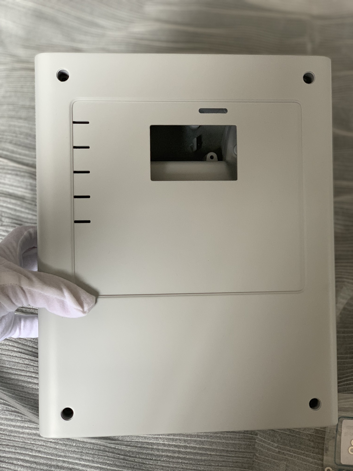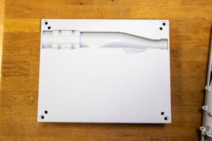 Кстати, о крышке: она обязательно будет съёмной, на четырёх саморезах, и для неё надо придумать подвесное крепление. Отверстия под саморезы закрываются декоративными заглушками.