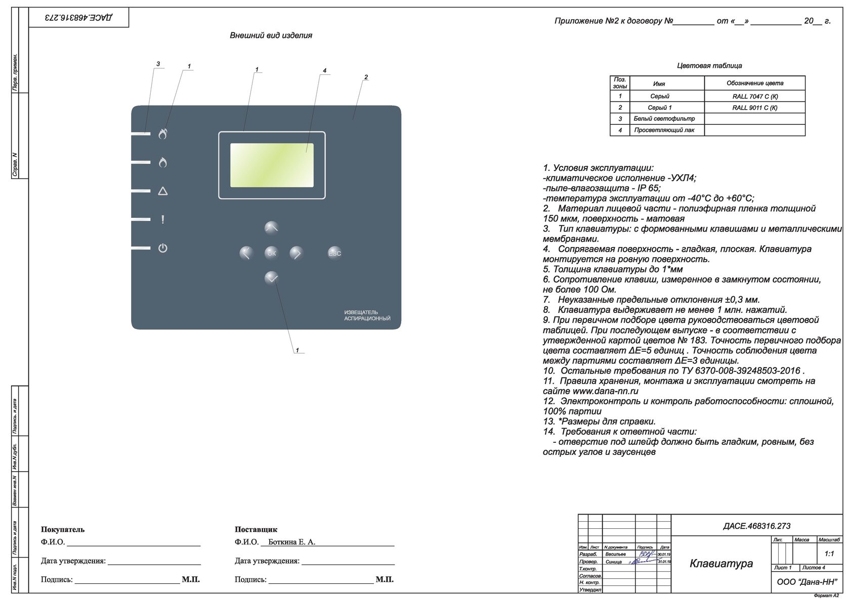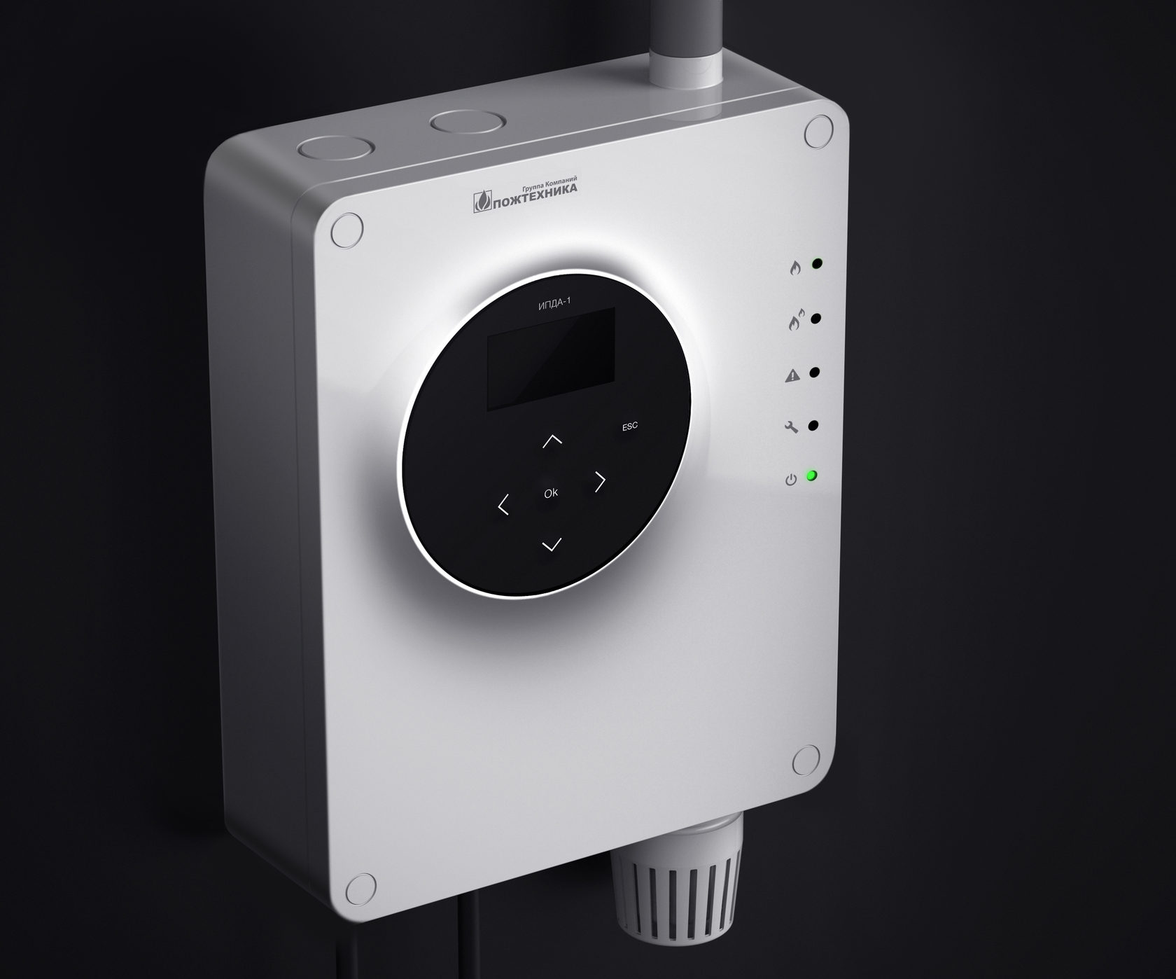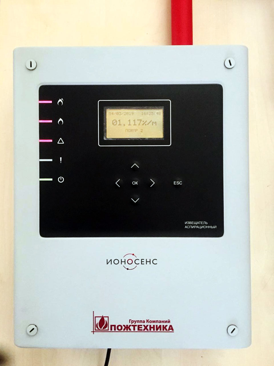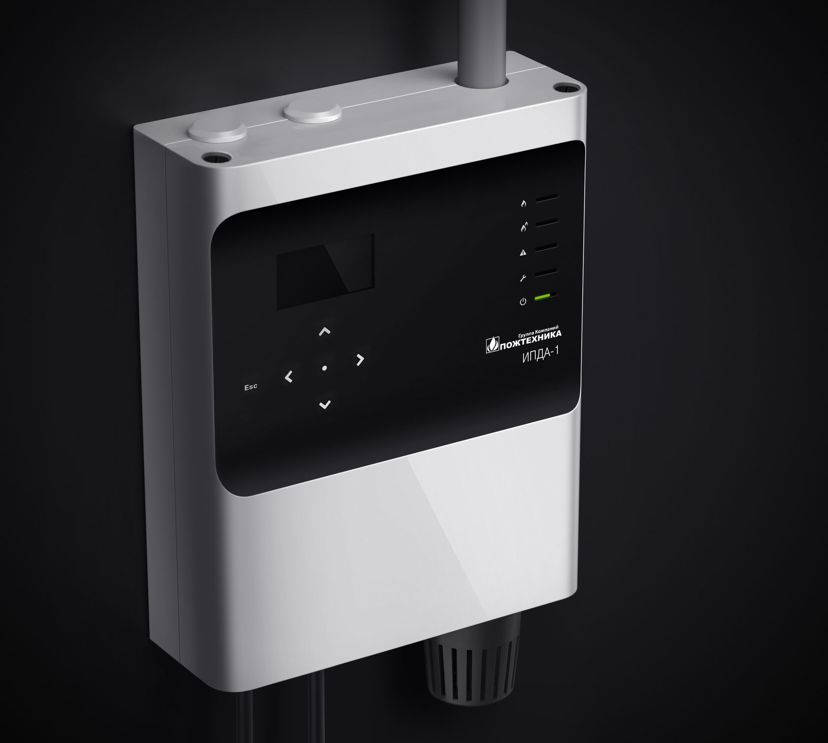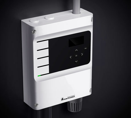 Управлять извещателем можно с помощью мембранной клавиатуры, расположенной на лицевой панели. Там же нужно разместить пять светодиодных индикаторов, три красных, жёлтый и зелёный. IP прибора — 54.