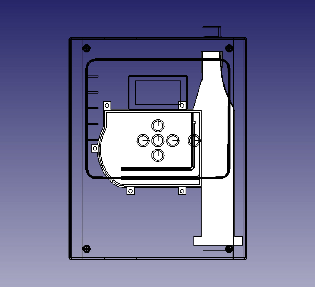 Эскизная конструкция — пока ещё нет дисплея, плат и неизвестны параметры подводимых проводов.