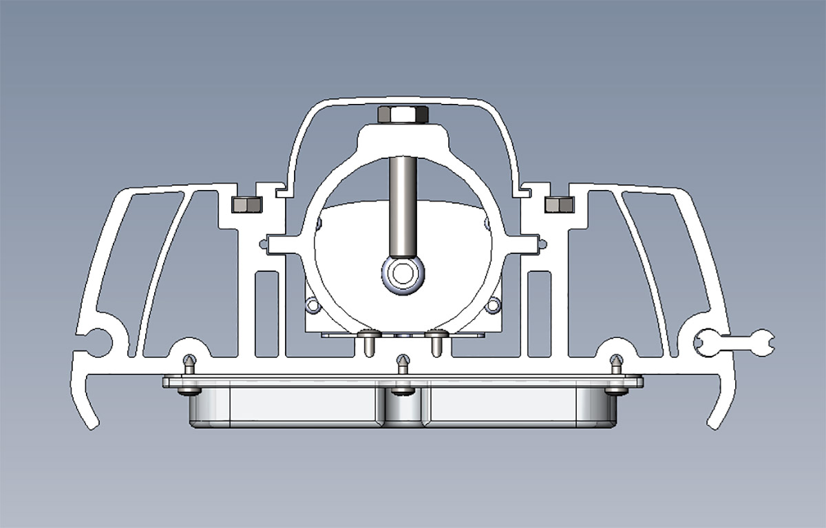 Но линейка — это ещё не всё: нужно предусмотреть возможность группировки нескольких светильников на одном крепёжном элементе — раз; два — необходимы разные крепления, для установки на улице и в помещении (снаружи — на мачтах, с поворотным механизмом и без, внутри — на подвесах).