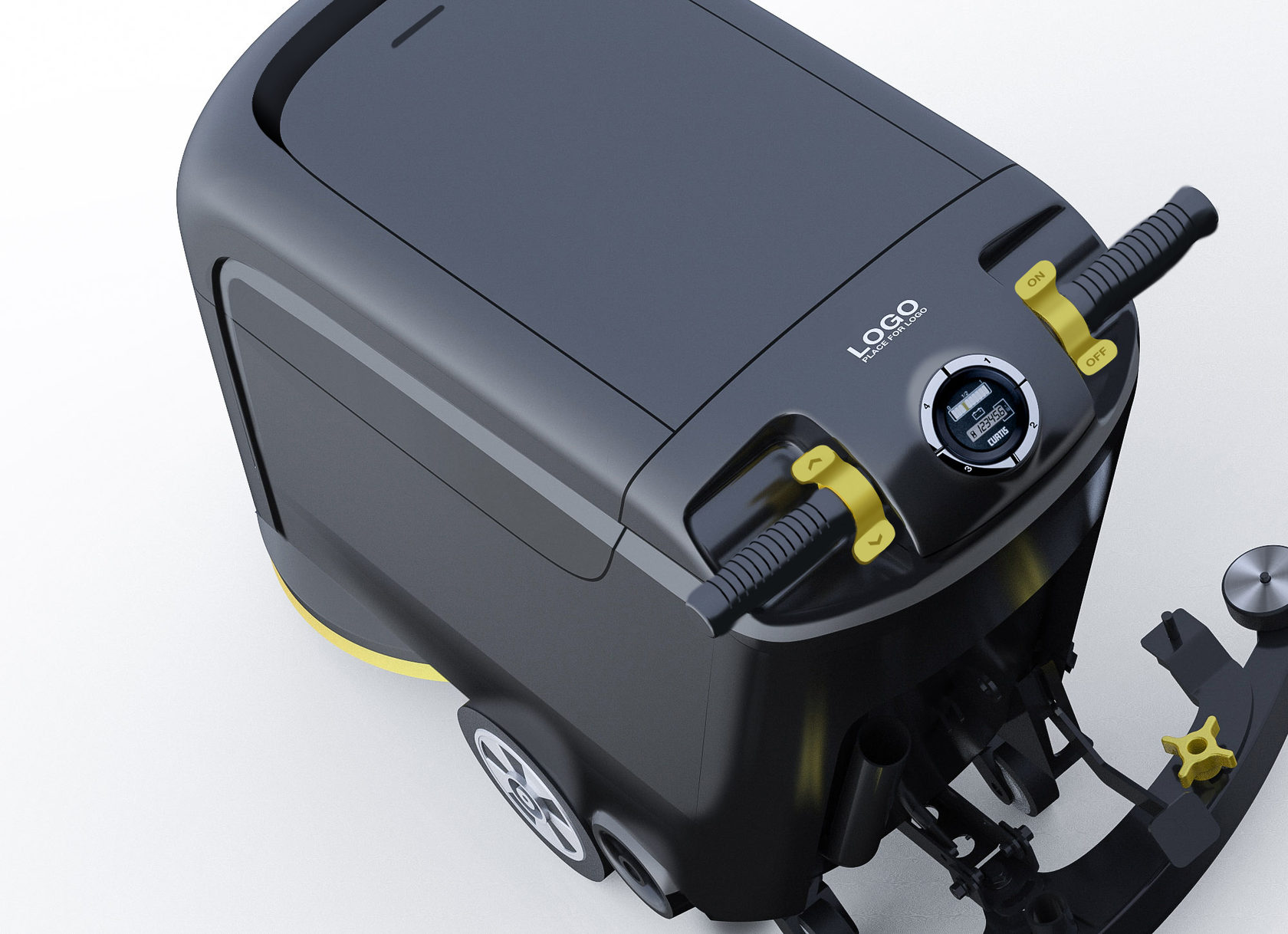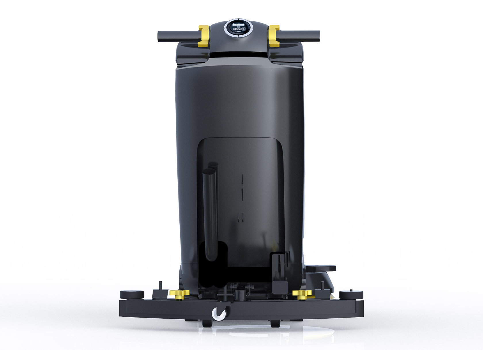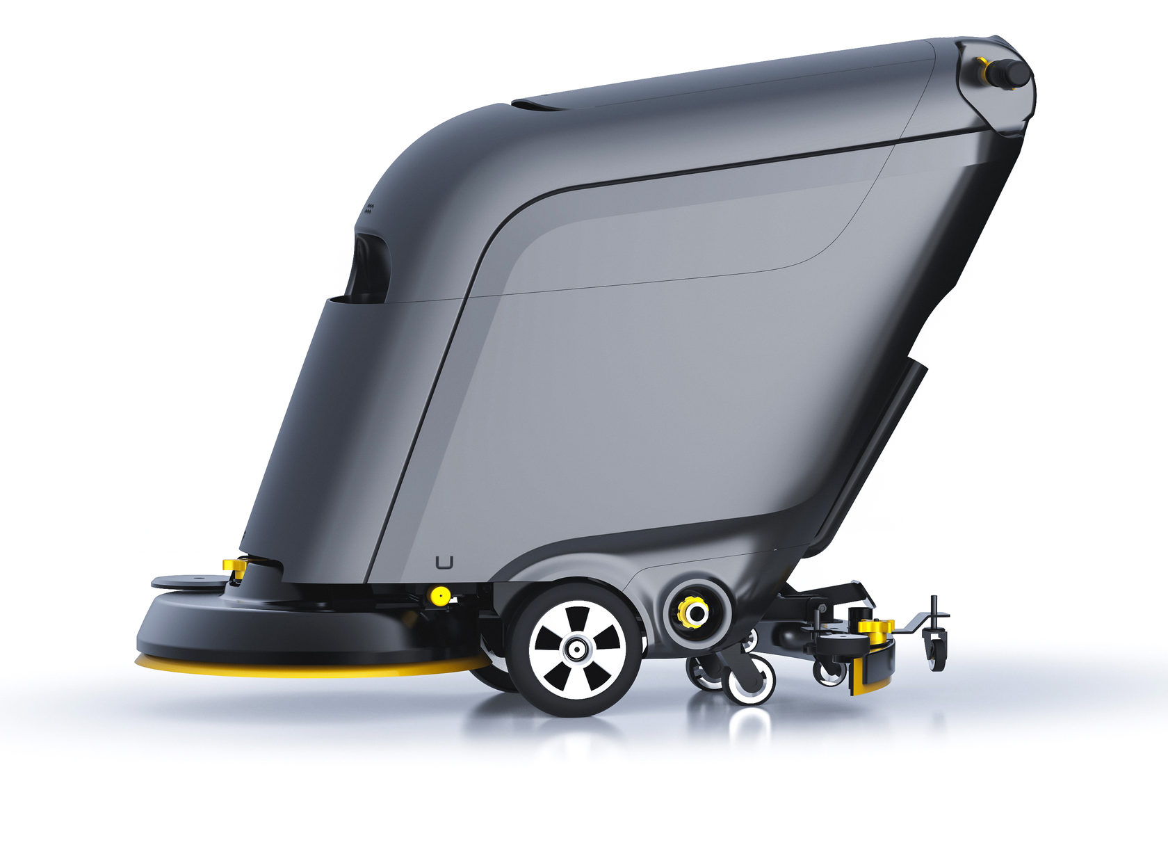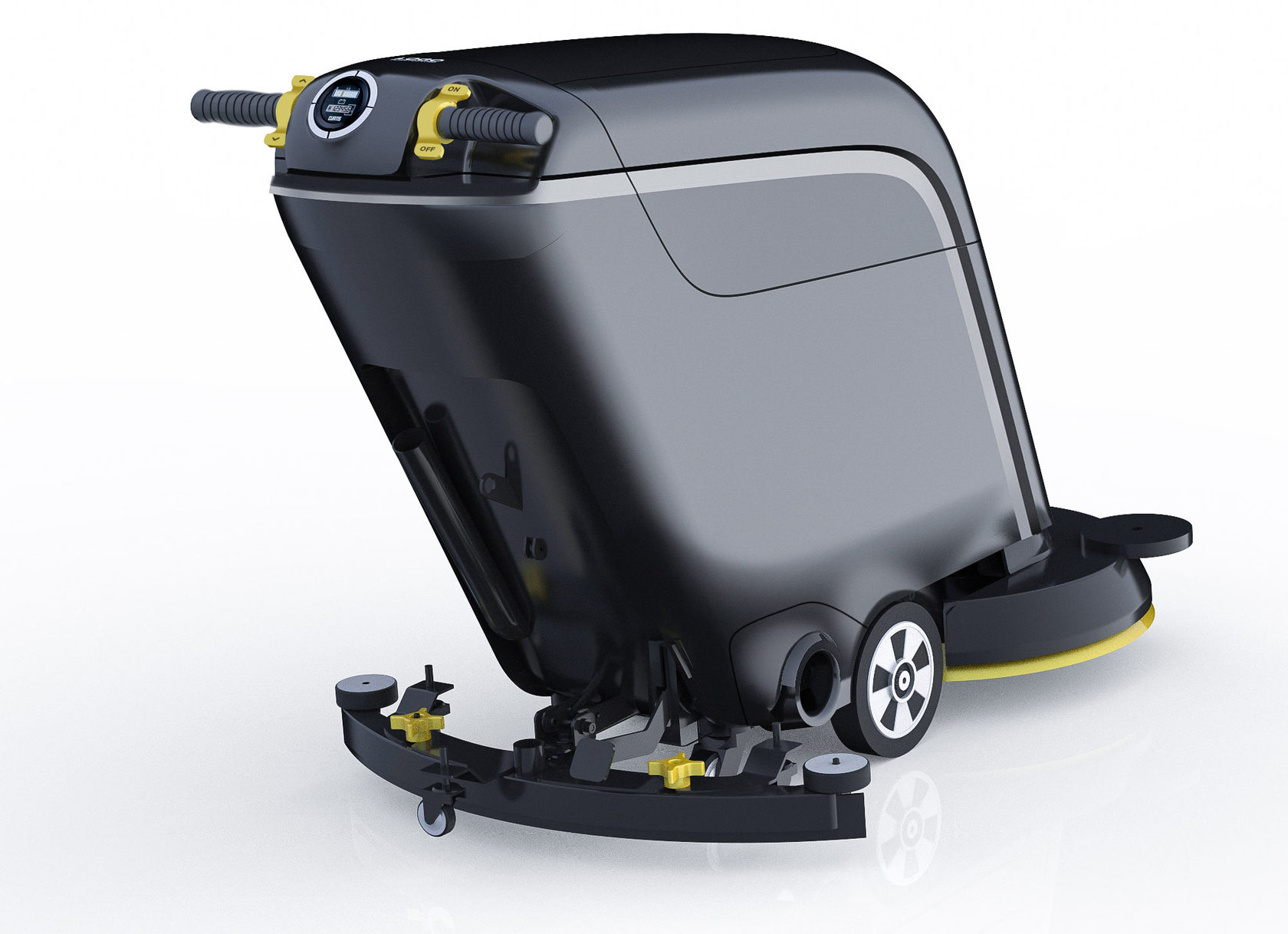 Как работает поломоечная машина? Пол смачивается моющим раствором из одного бака, растирается щёткой, и вся грязь собирается машиной в другой бак. Готово — всё чисто. Корпус защищает оба бака, аккумулятор, мотор, электронную начинку и навесное оборудование. Элементы управления — педаль поднятия щётки, курки на руле «вперед/назад» и «вкл/выкл».