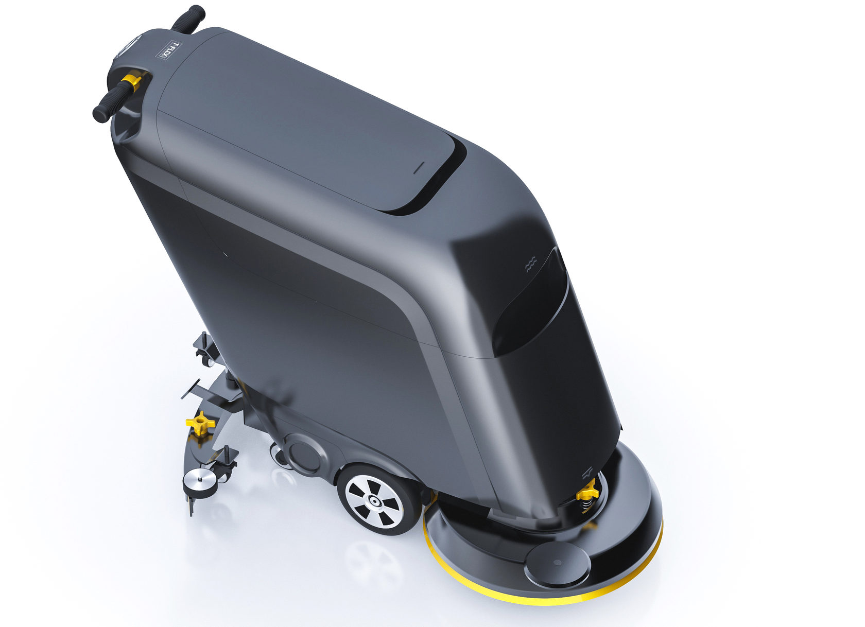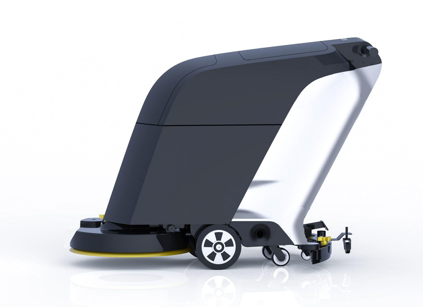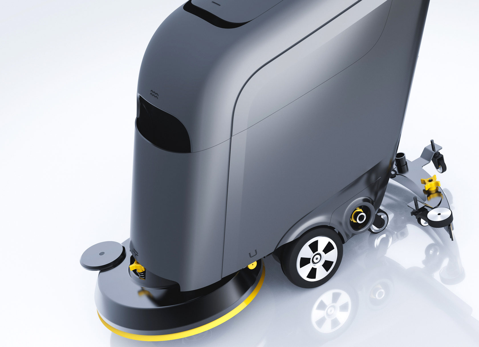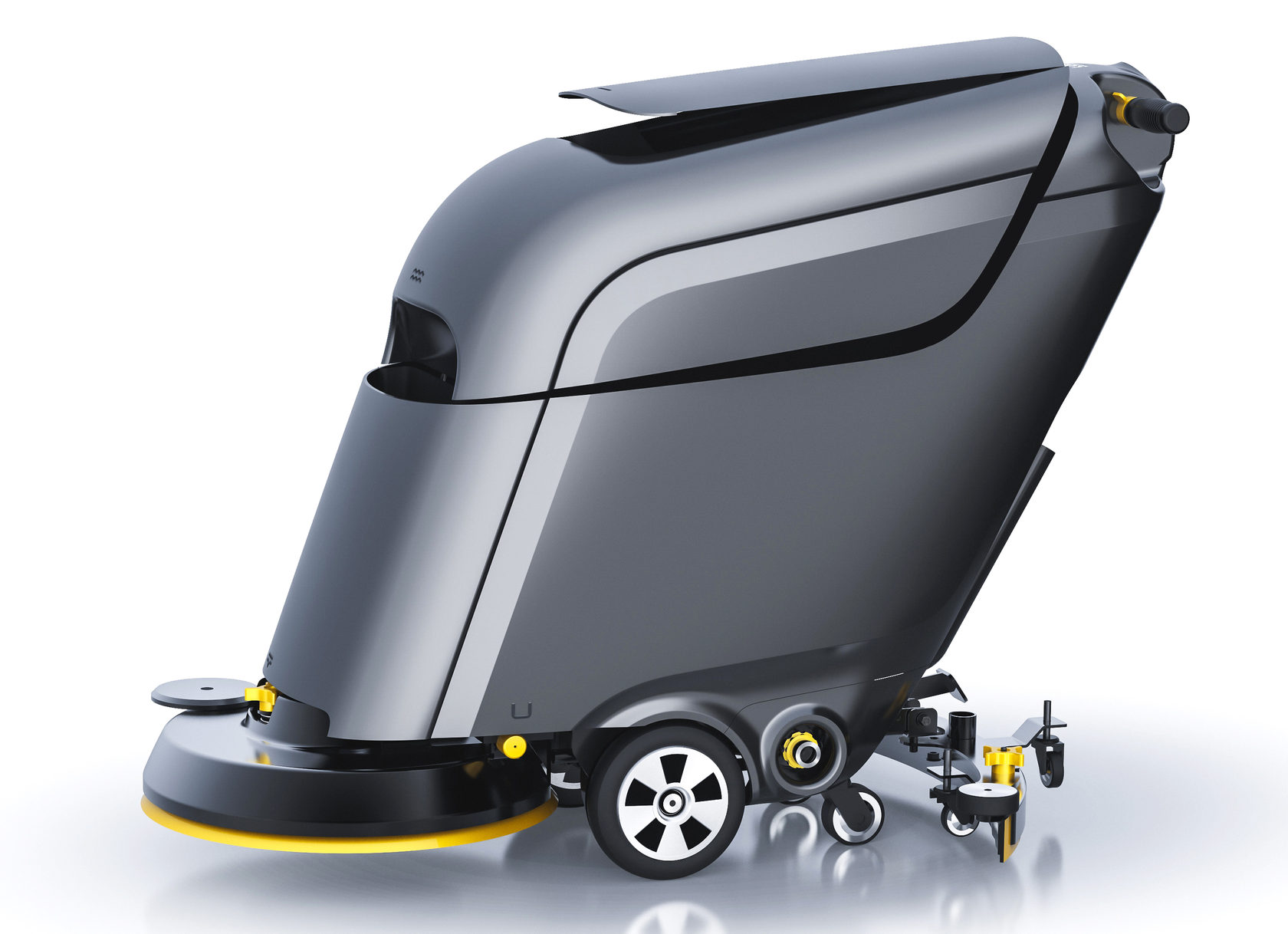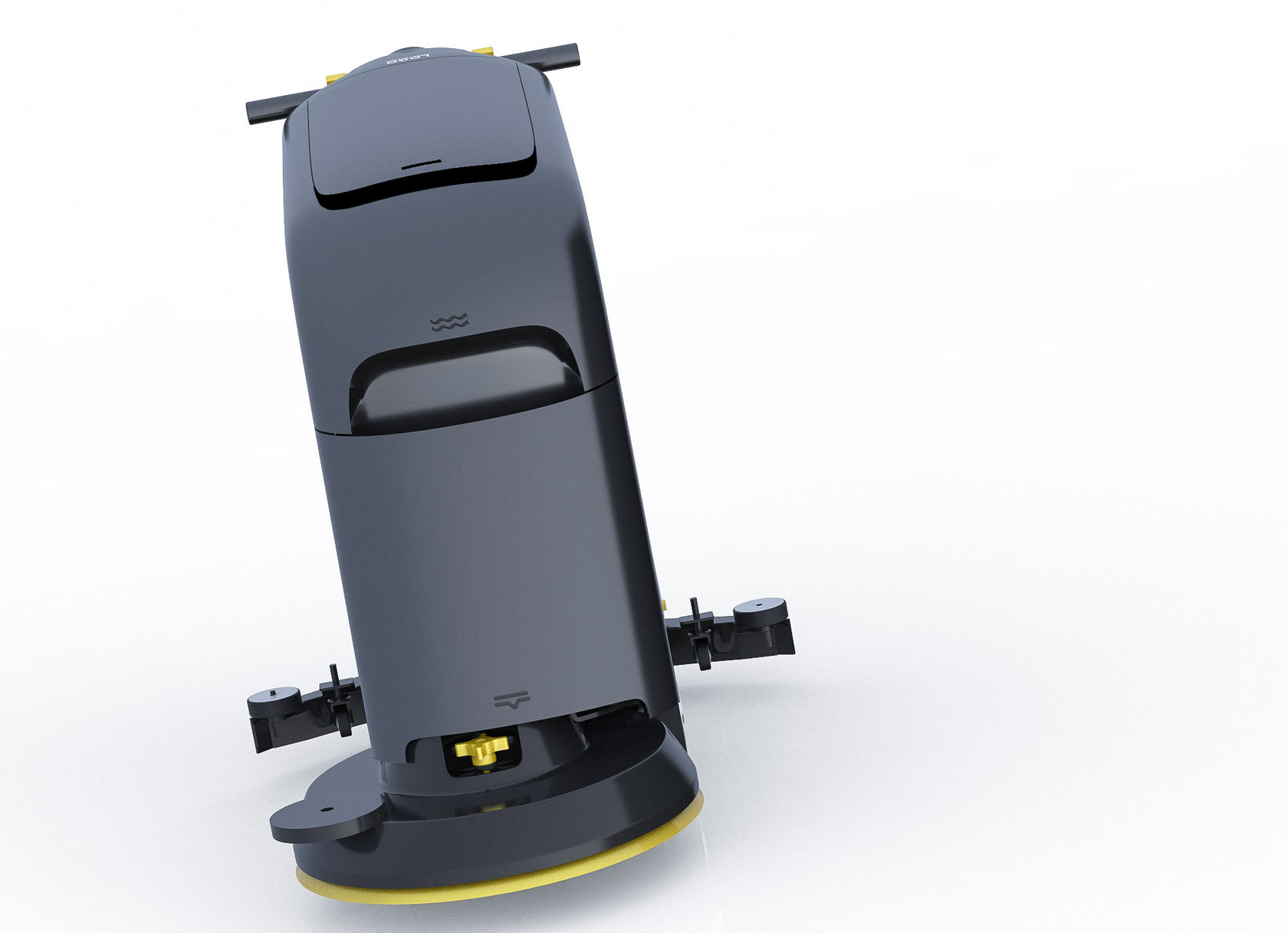 Как работает поломоечная машина? Пол смачивается моющим раствором из одного бака, растирается щёткой, и вся грязь собирается машиной в другой бак. Готово — всё чисто. Корпус защищает оба бака, аккумулятор, мотор, электронную начинку и навесное оборудование. Элементы управления — педаль поднятия щётки, курки на руле «вперед/назад» и «вкл/выкл».