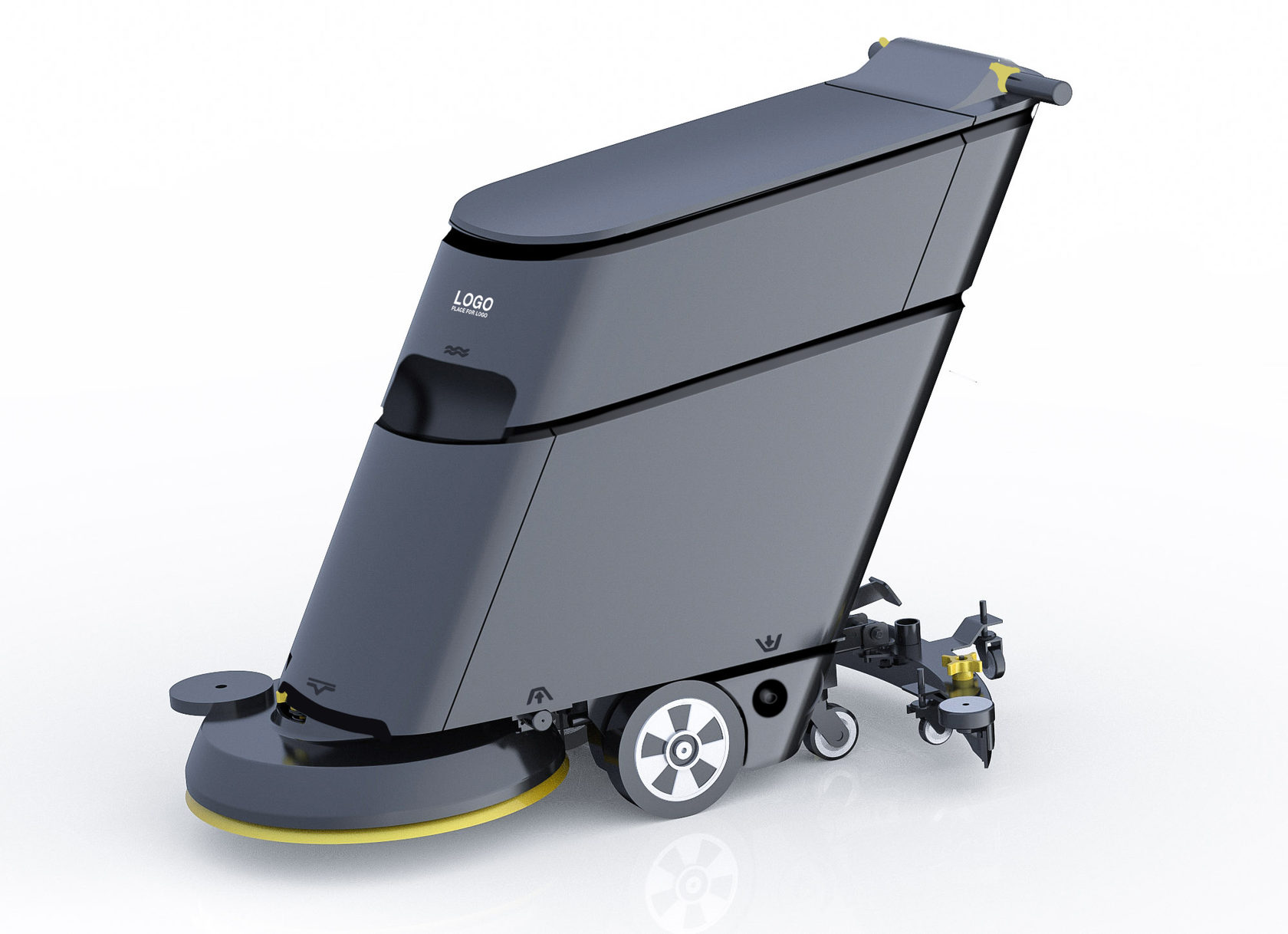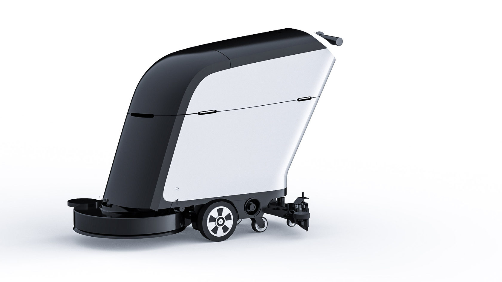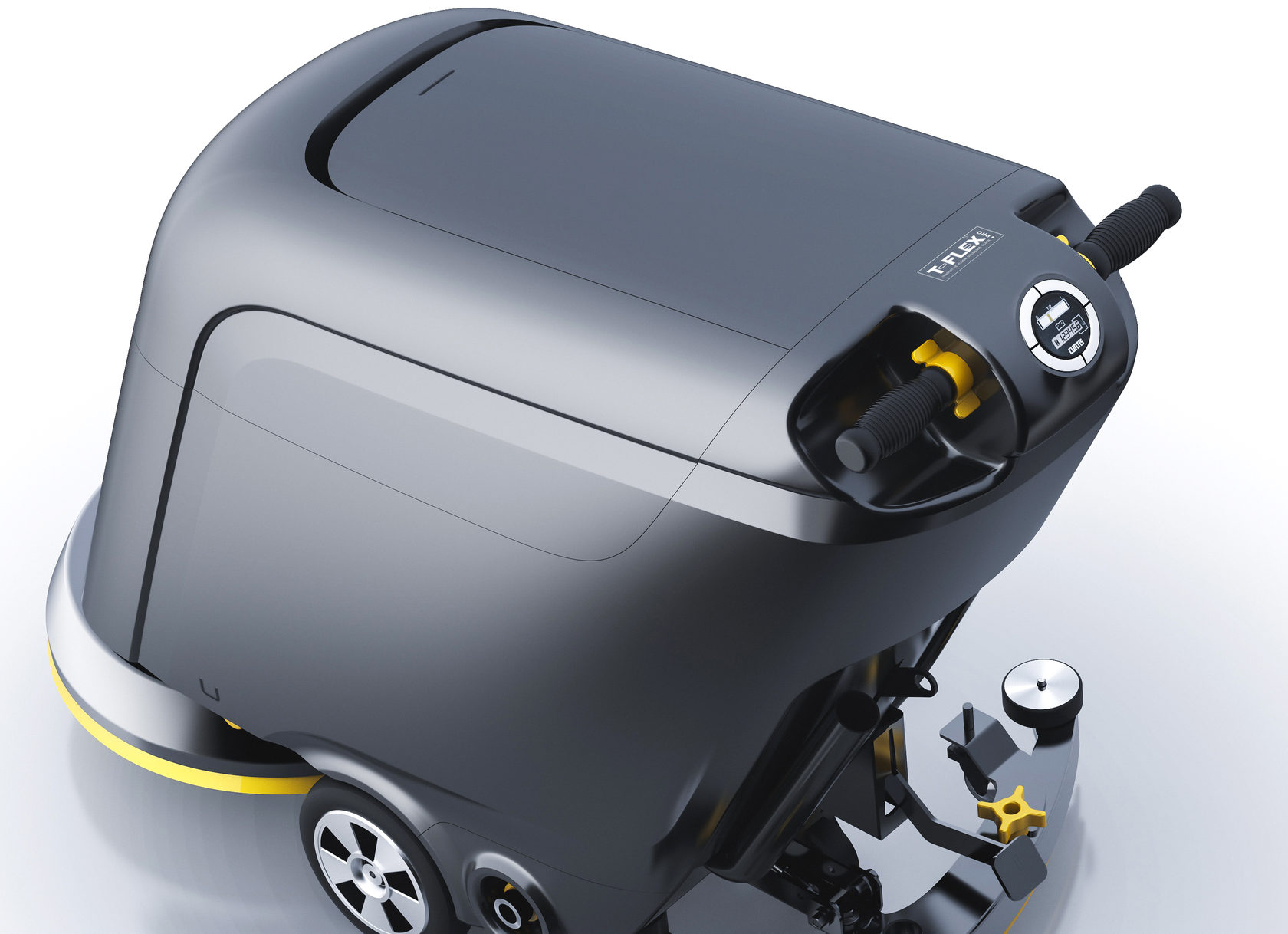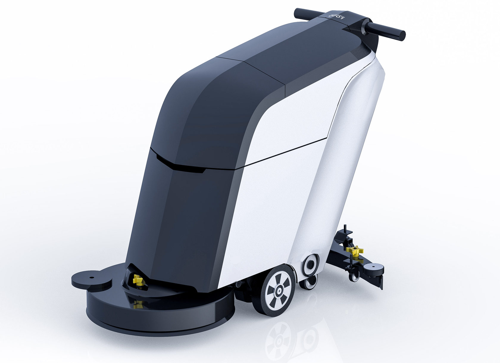 Как работает поломоечная машина? Пол смачивается моющим раствором из одного бака, растирается щёткой, и вся грязь собирается машиной в другой бак. Готово — всё чисто. Корпус защищает оба бака, аккумулятор, мотор, электронную начинку и навесное оборудование. Элементы управления — педаль поднятия щётки, курки на руле «вперед/назад» и «вкл/выкл».