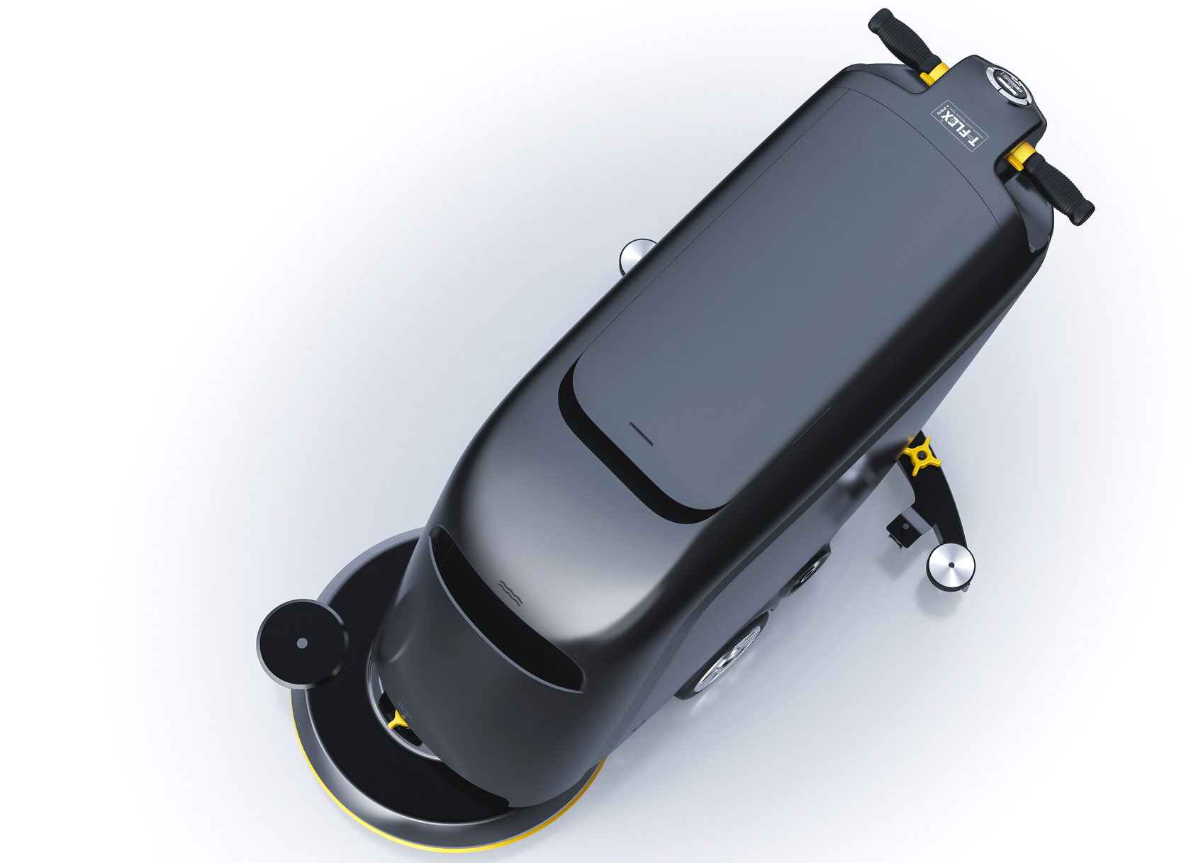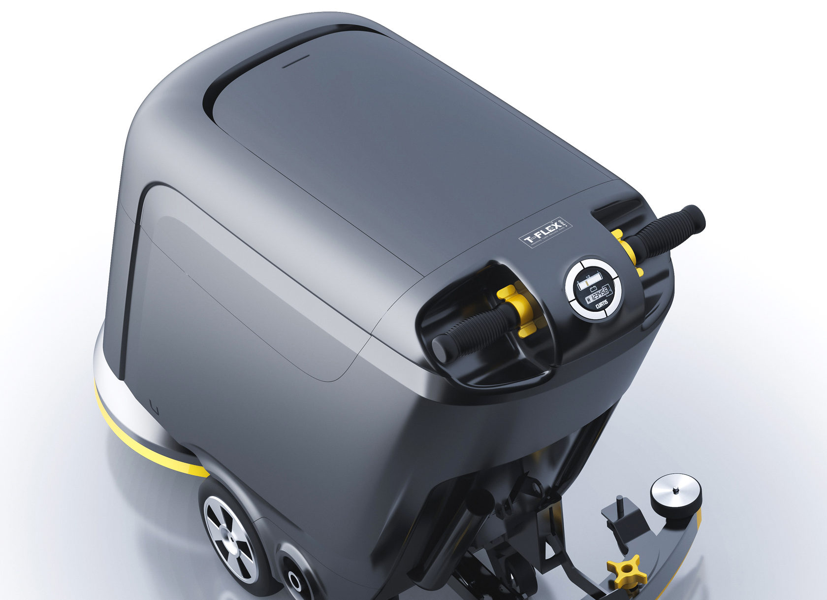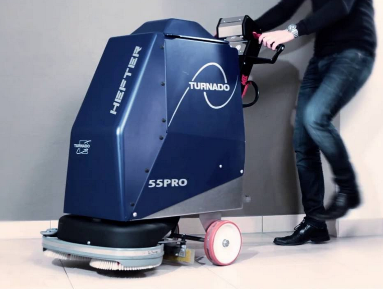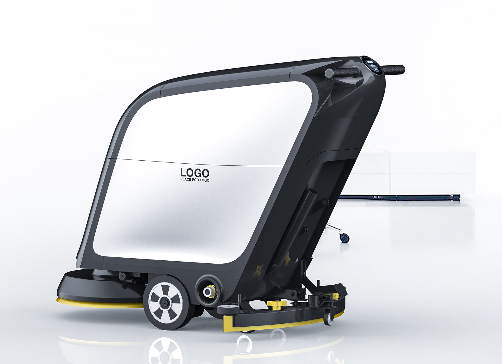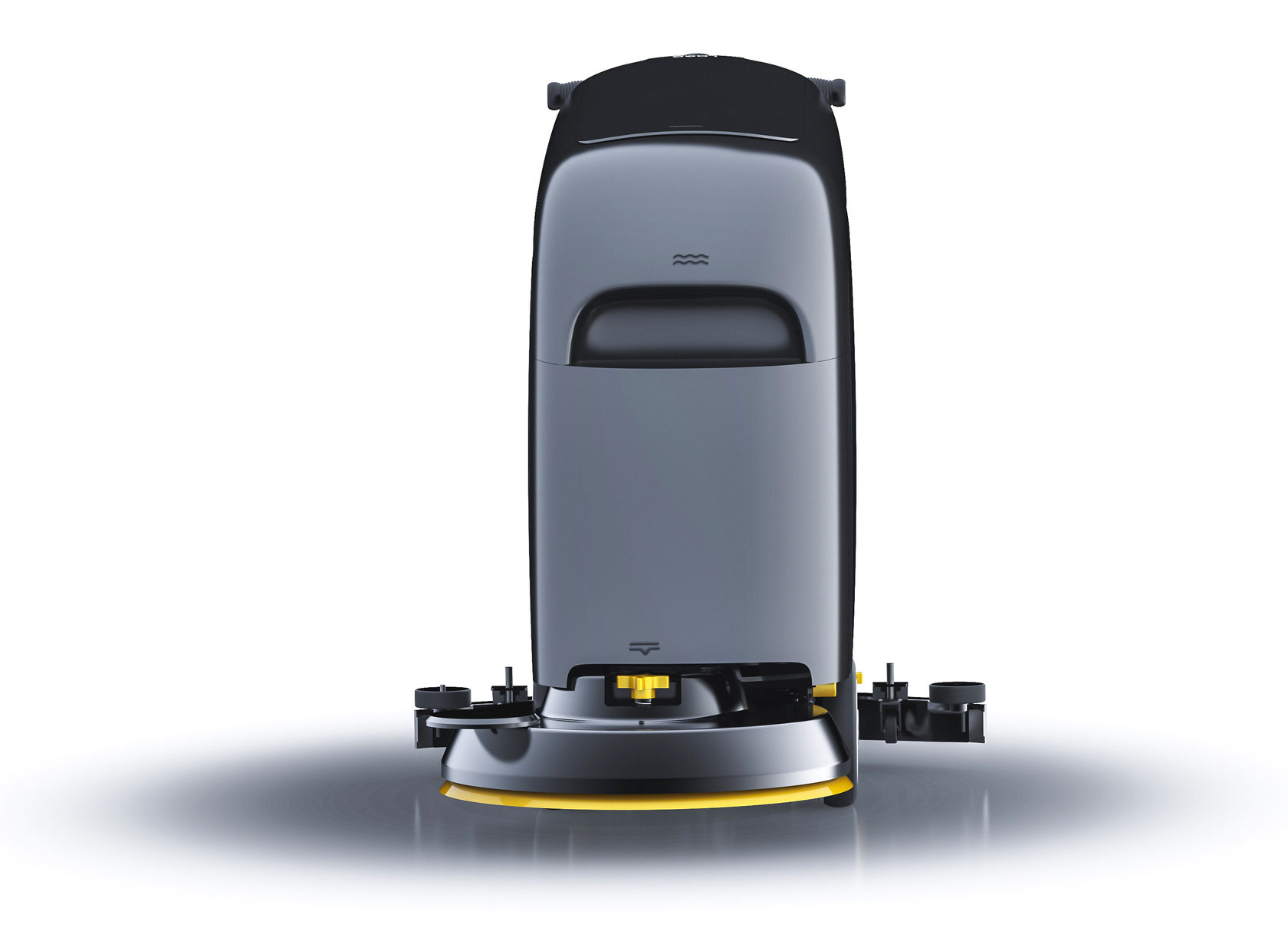 Как работает поломоечная машина? Пол смачивается моющим раствором из одного бака, растирается щёткой, и вся грязь собирается машиной в другой бак. Готово — всё чисто. Корпус защищает оба бака, аккумулятор, мотор, электронную начинку и навесное оборудование. Элементы управления — педаль поднятия щётки, курки на руле «вперед/назад» и «вкл/выкл».