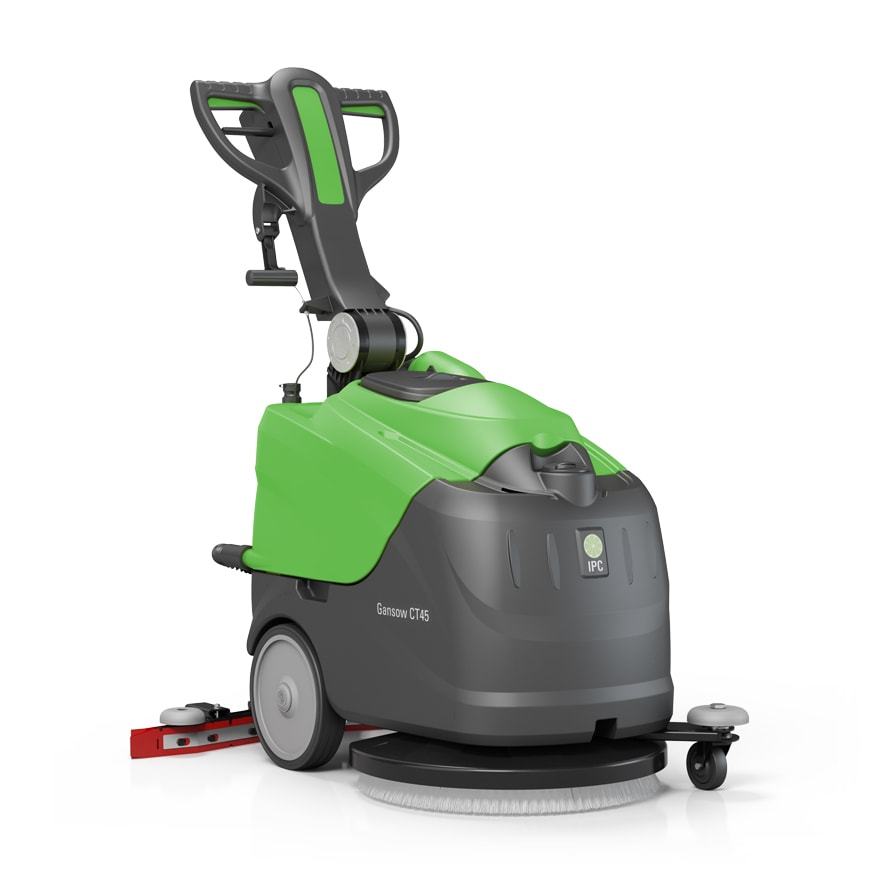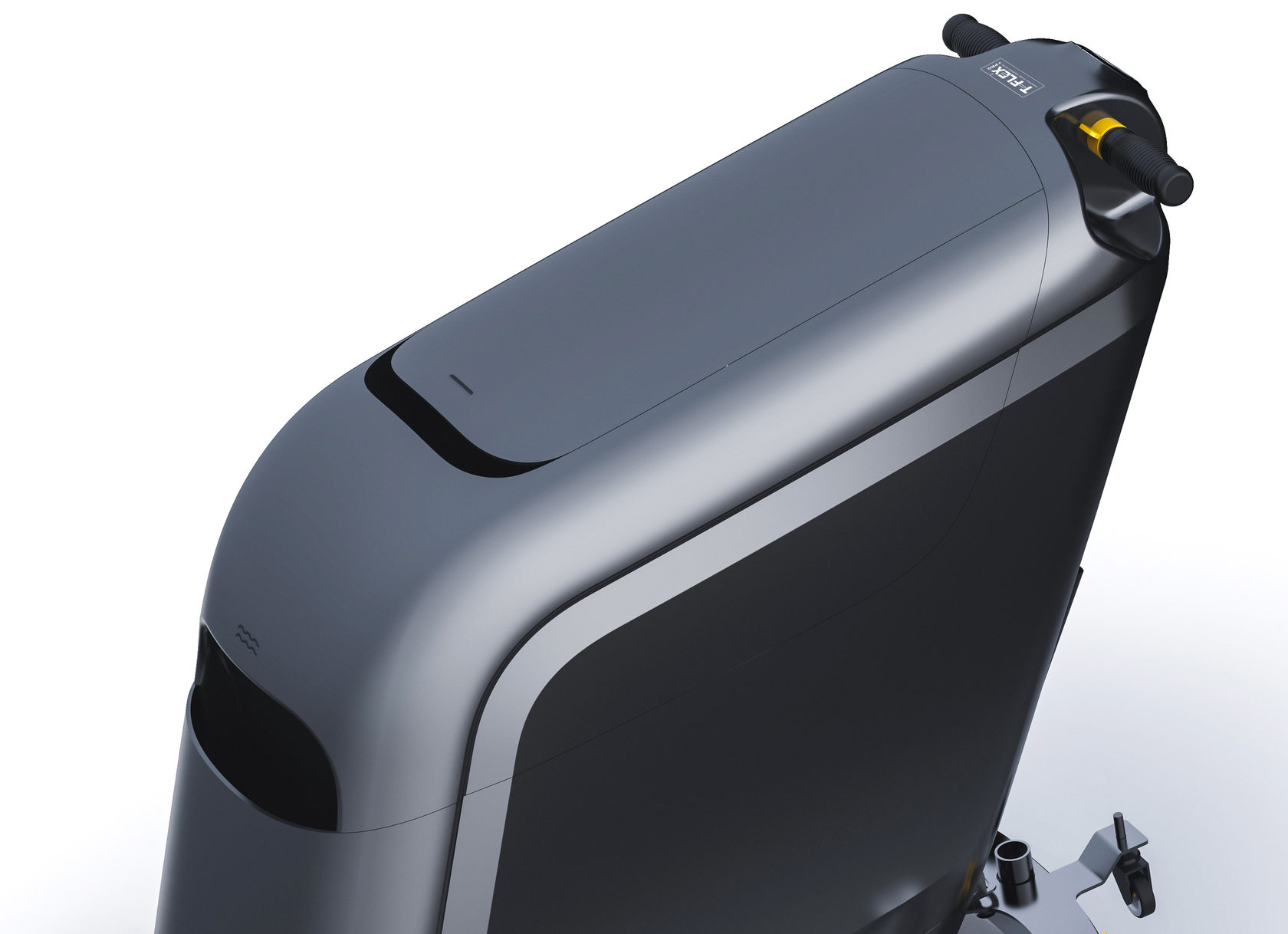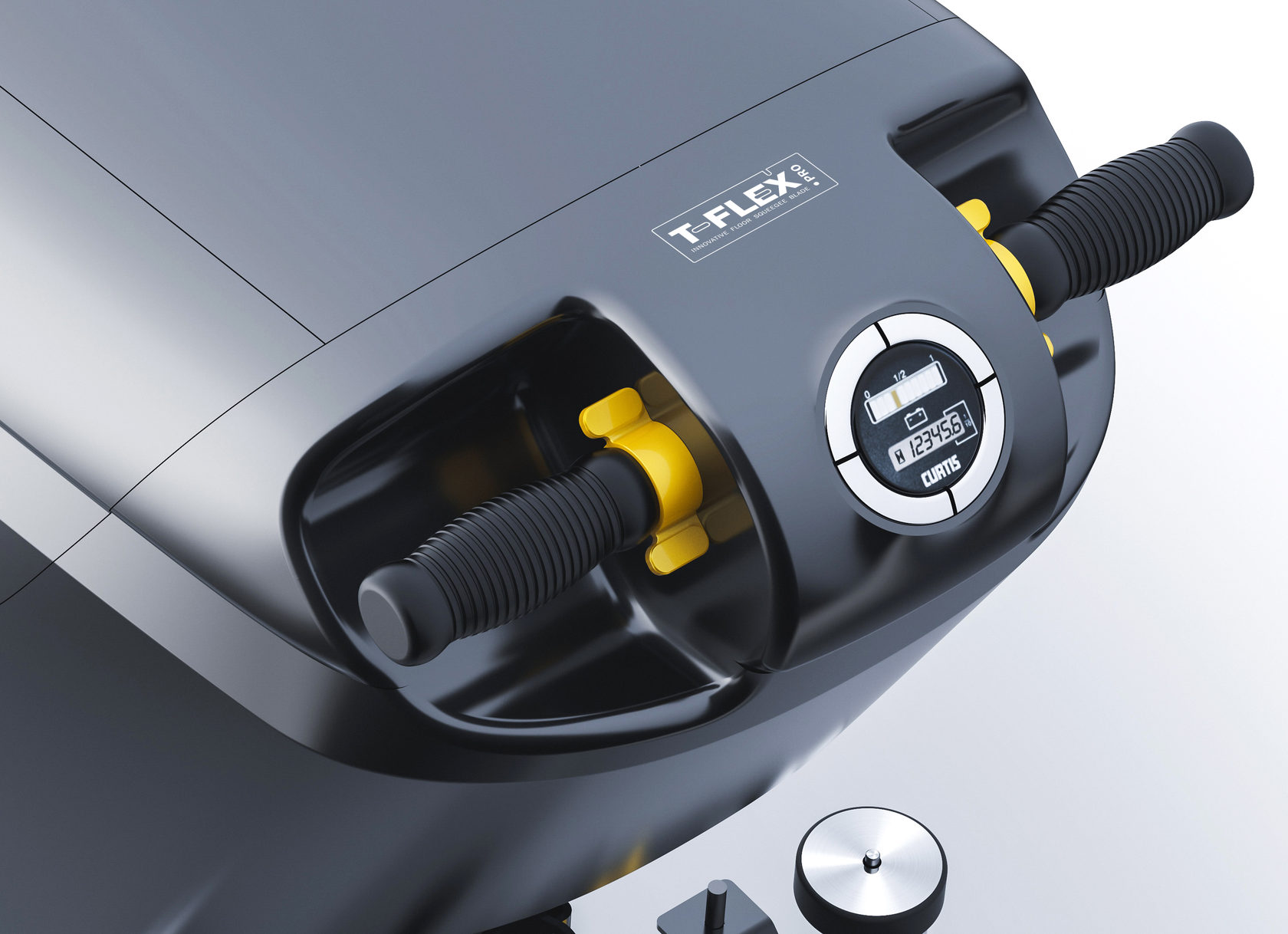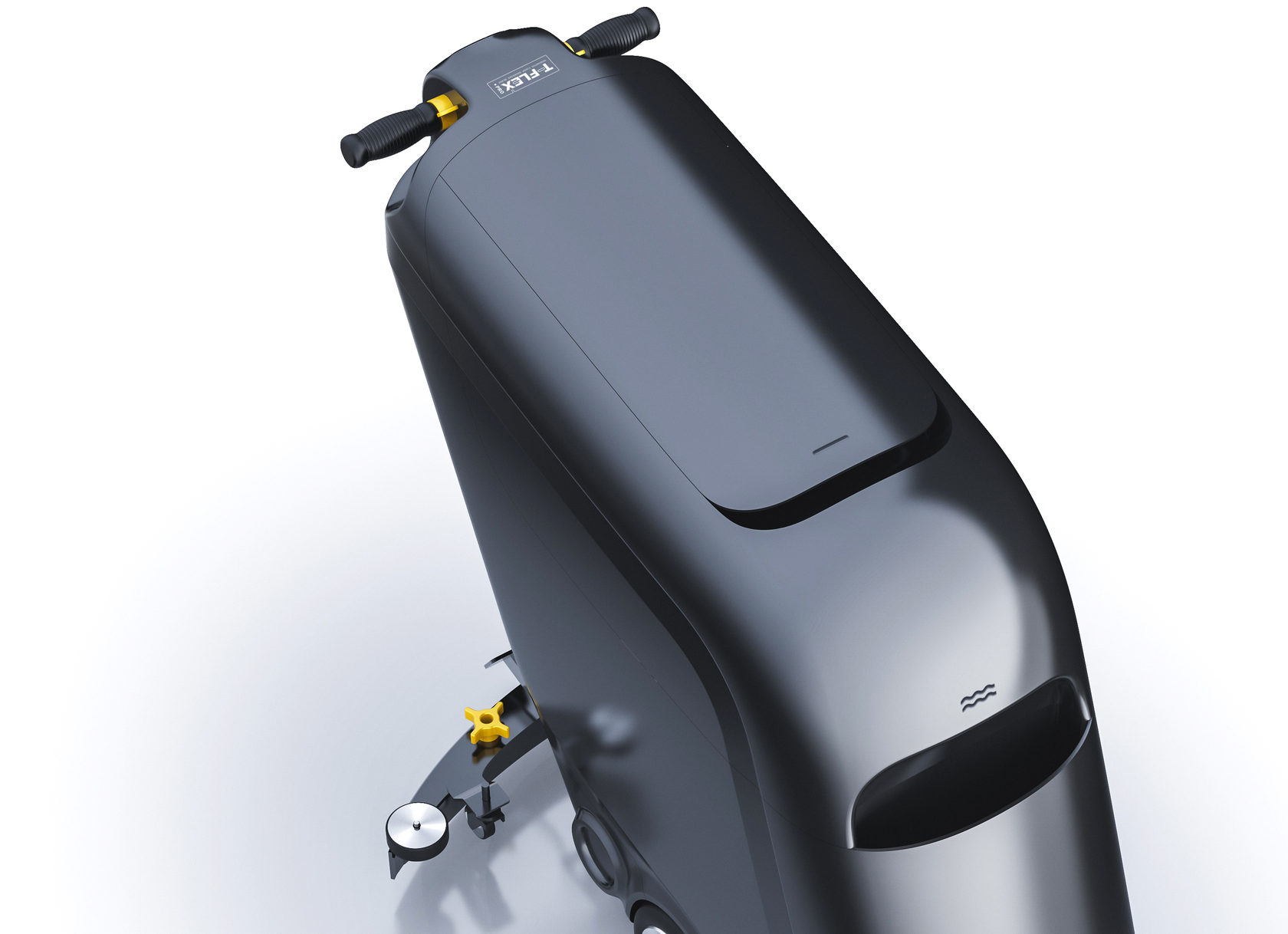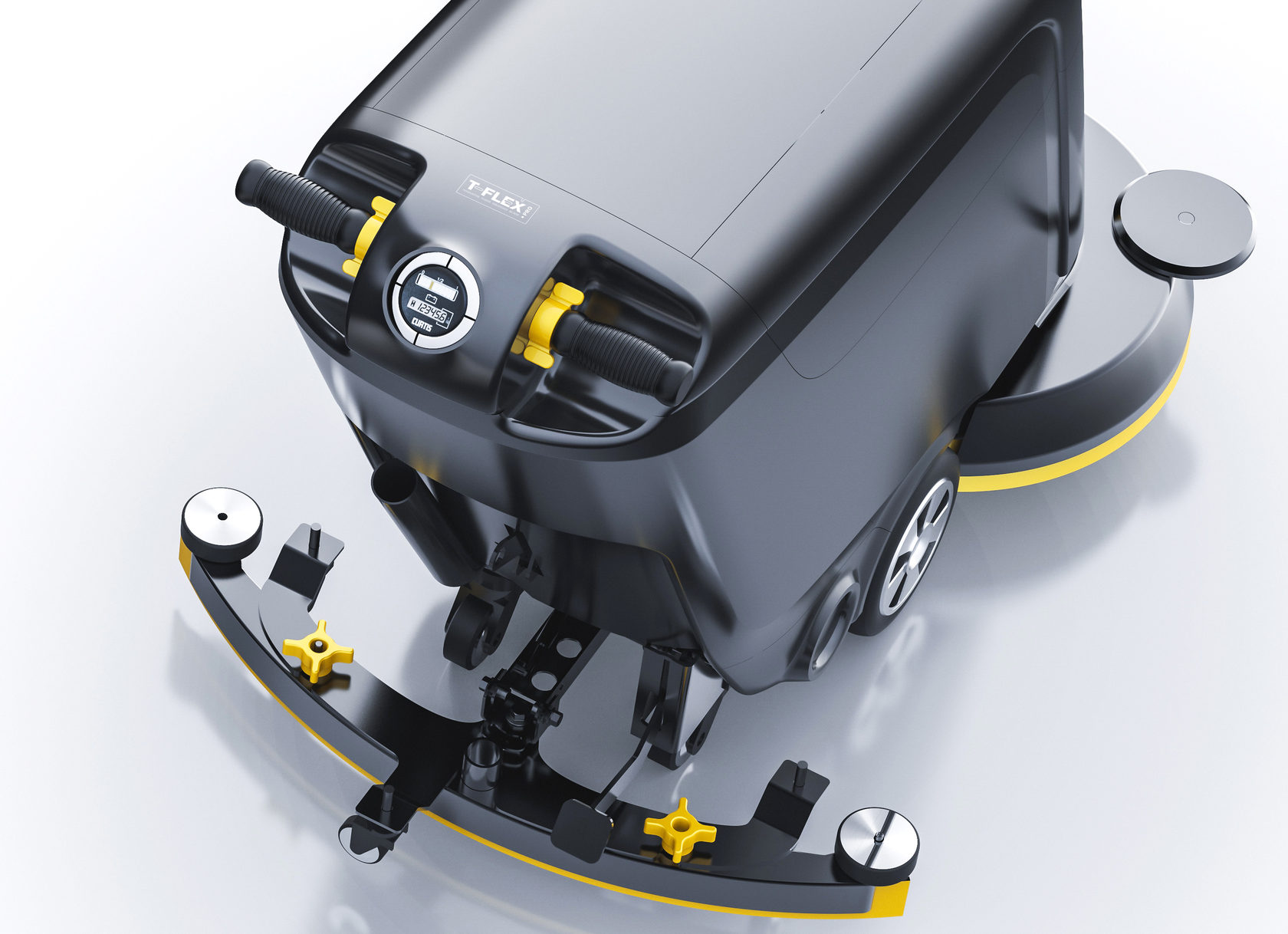 Как работает поломоечная машина? Пол смачивается моющим раствором из одного бака, растирается щёткой, и вся грязь собирается машиной в другой бак. Готово — всё чисто. Корпус защищает оба бака, аккумулятор, мотор, электронную начинку и навесное оборудование. Элементы управления — педаль поднятия щётки, курки на руле «вперед/назад» и «вкл/выкл».