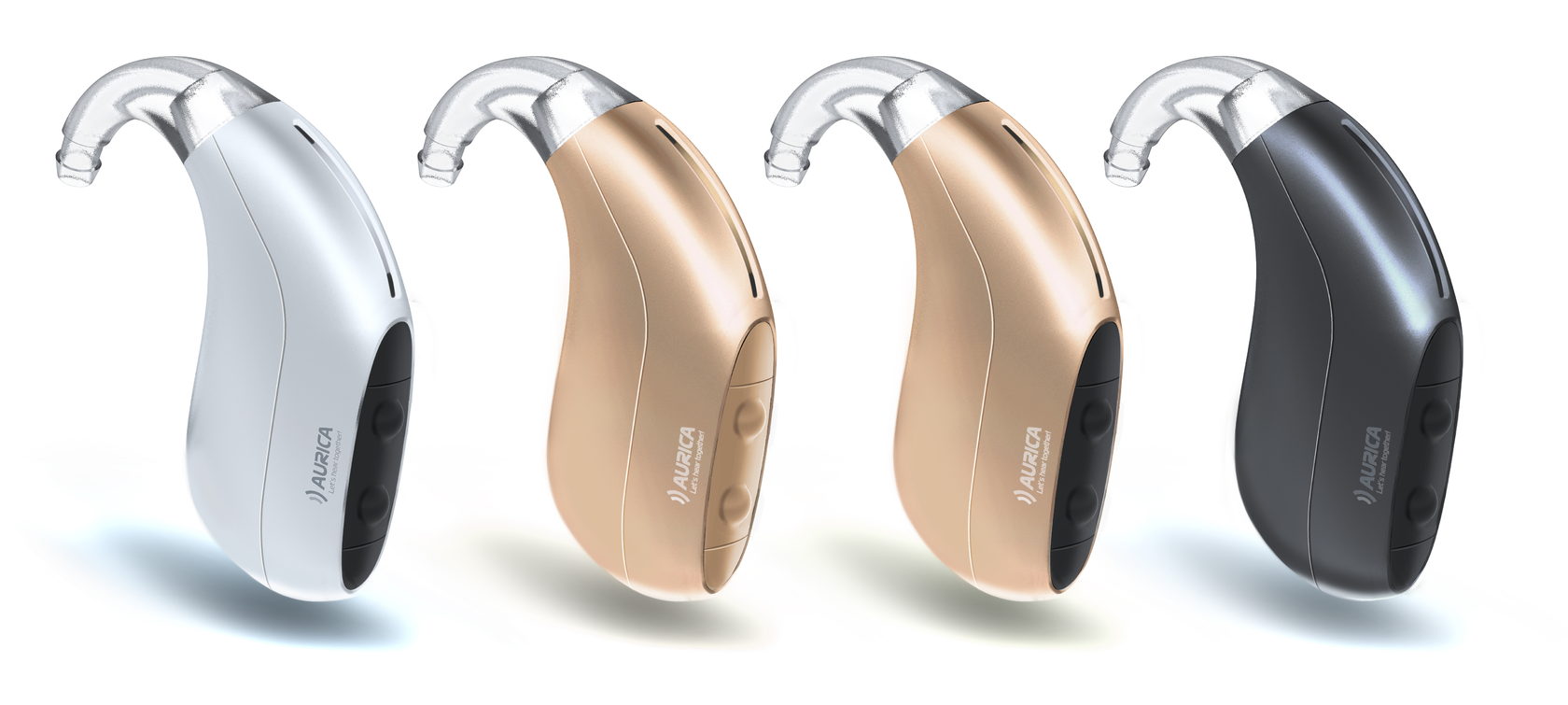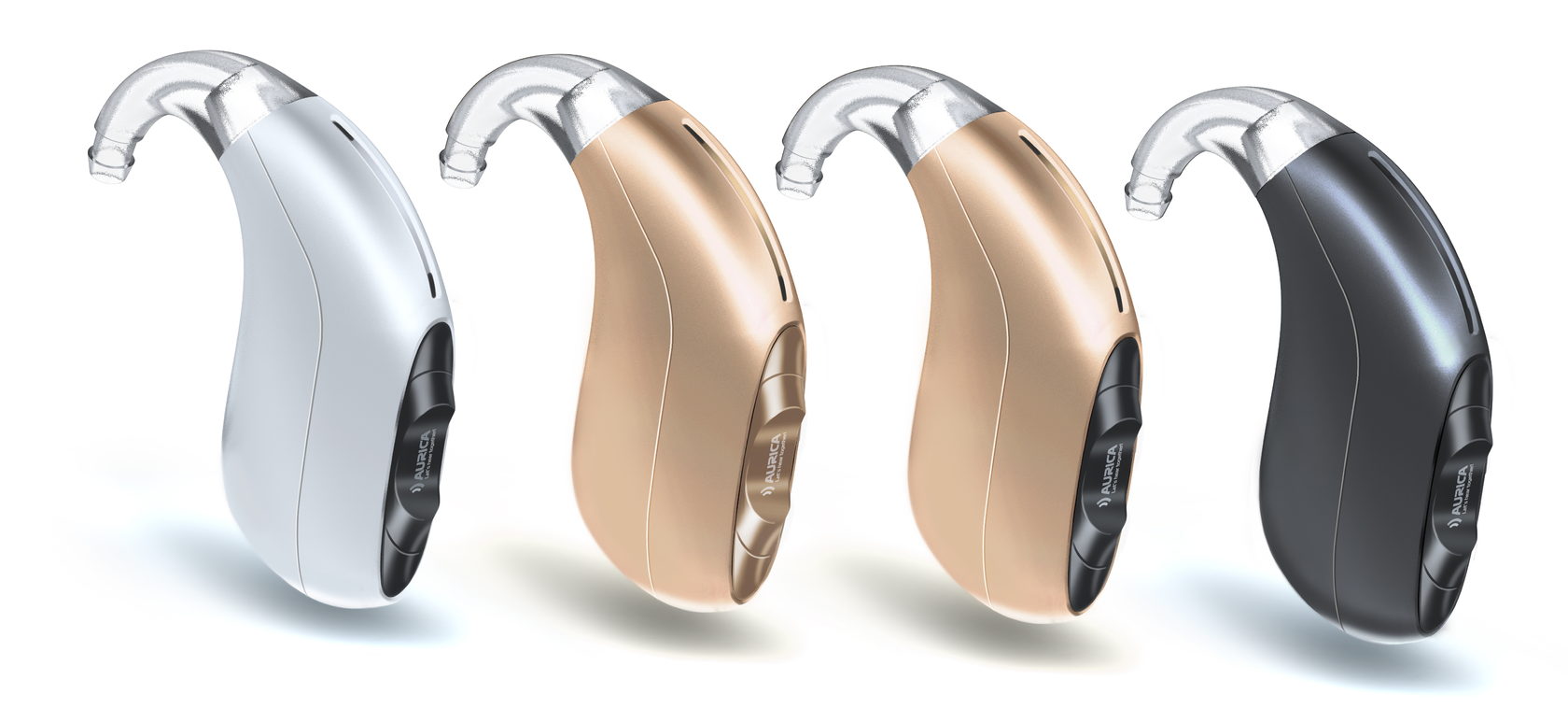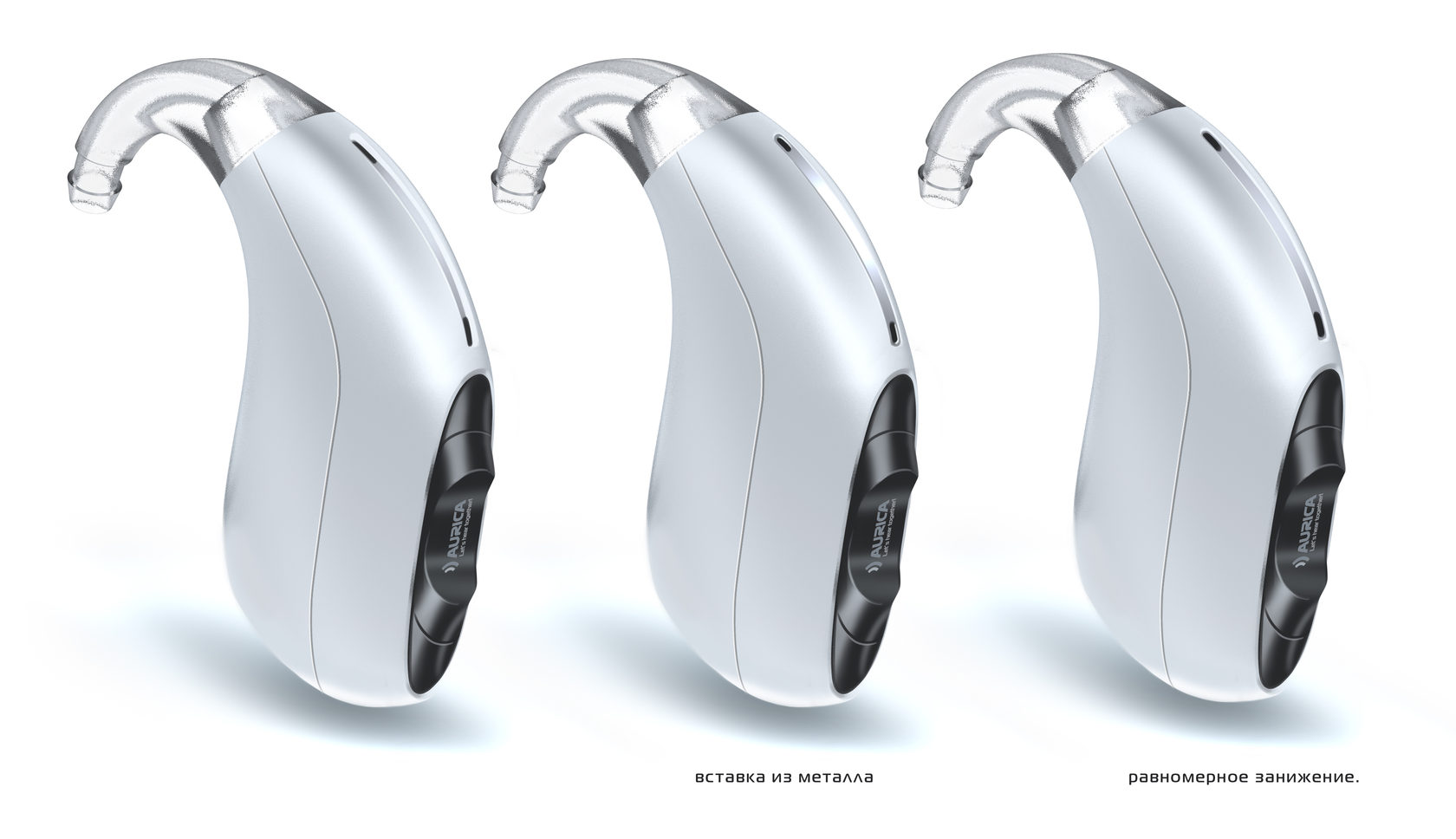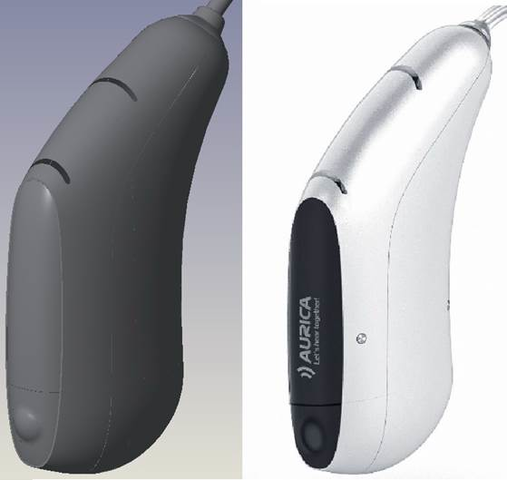 Форма слуховых аппаратов здорово ограничивается способом использования: их носят за ухом, значит, очертания той стороны, которой аппарат прилегает к телу, кардинально изменить невозможно: прибор может постоянно сваливаться с уха или раздражать носящего тем, что неудобен. «Поиграть» можно разве что с конфигурацией кнопок, отверстий, ограниченно — текстур.
