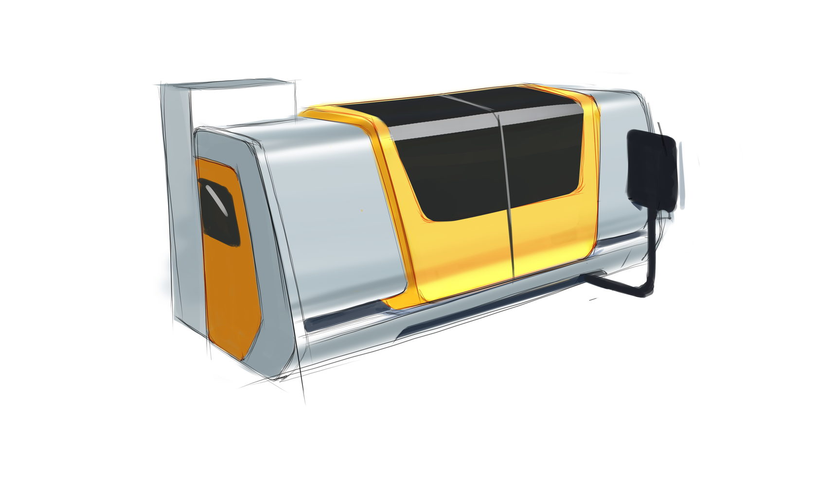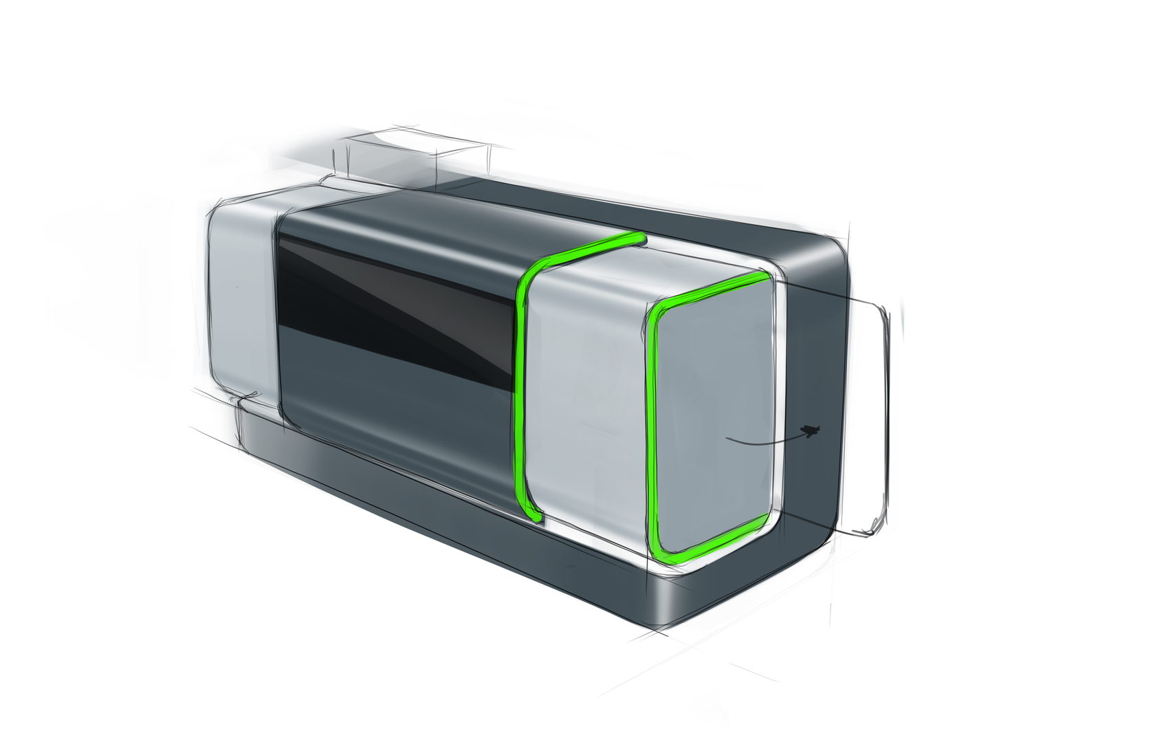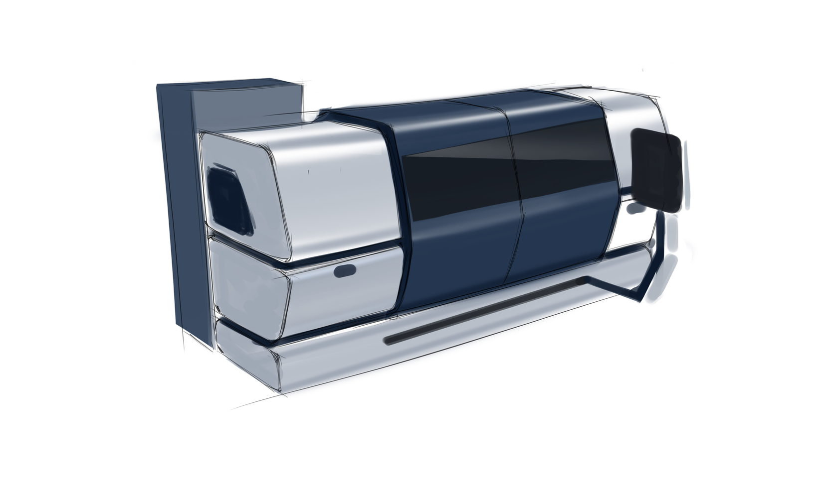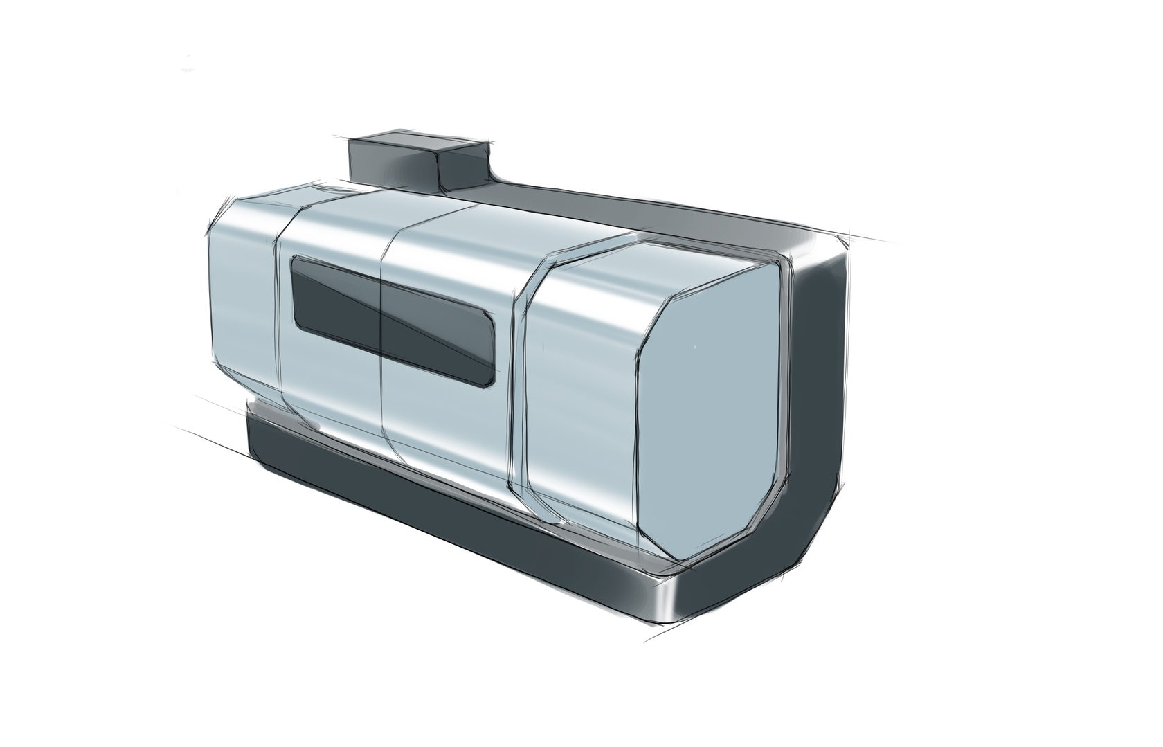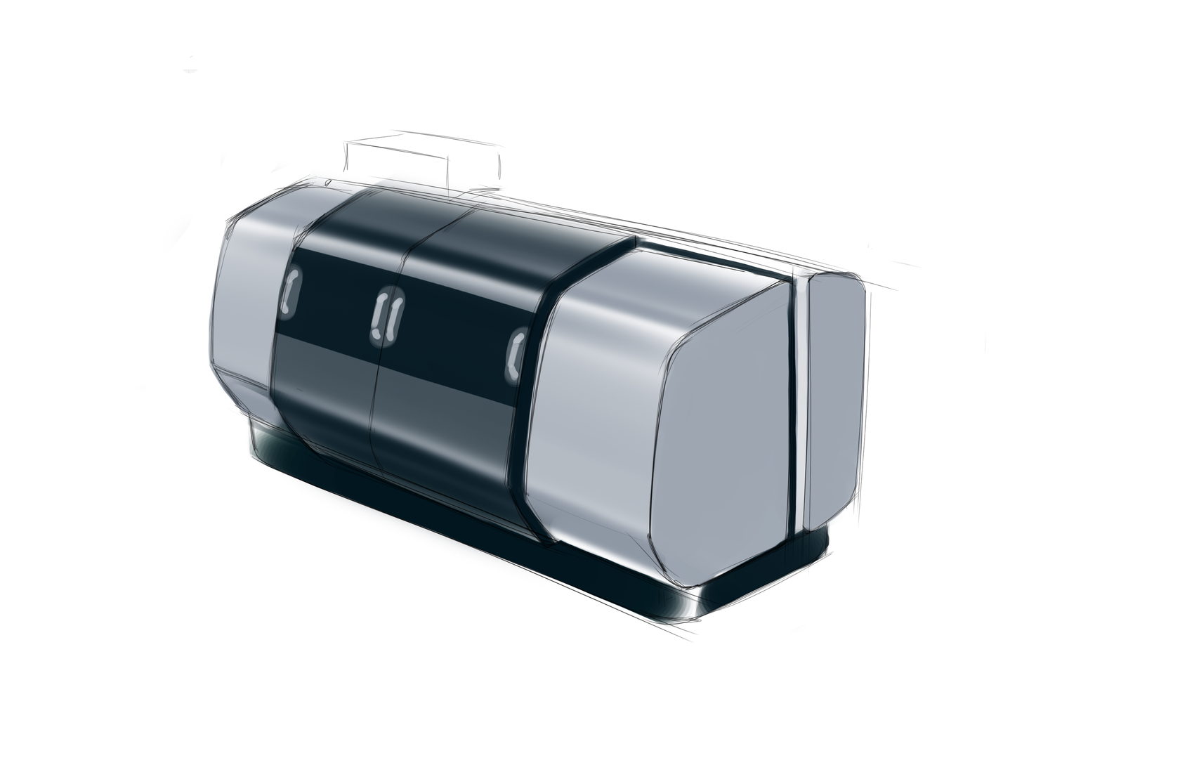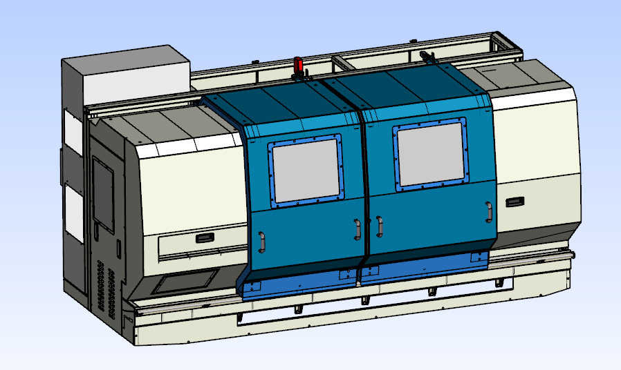 Заказчик попросил не забывать про то, что на части эскизов должны быть телескопические двери — такие, которые могут двигаться относительно друг друга, а все вместе — перемещаться по основному корпусу. Также у станка есть пульт, который тоже может двигаться — на отдельных направляющих.