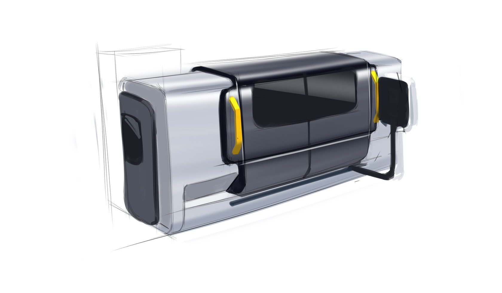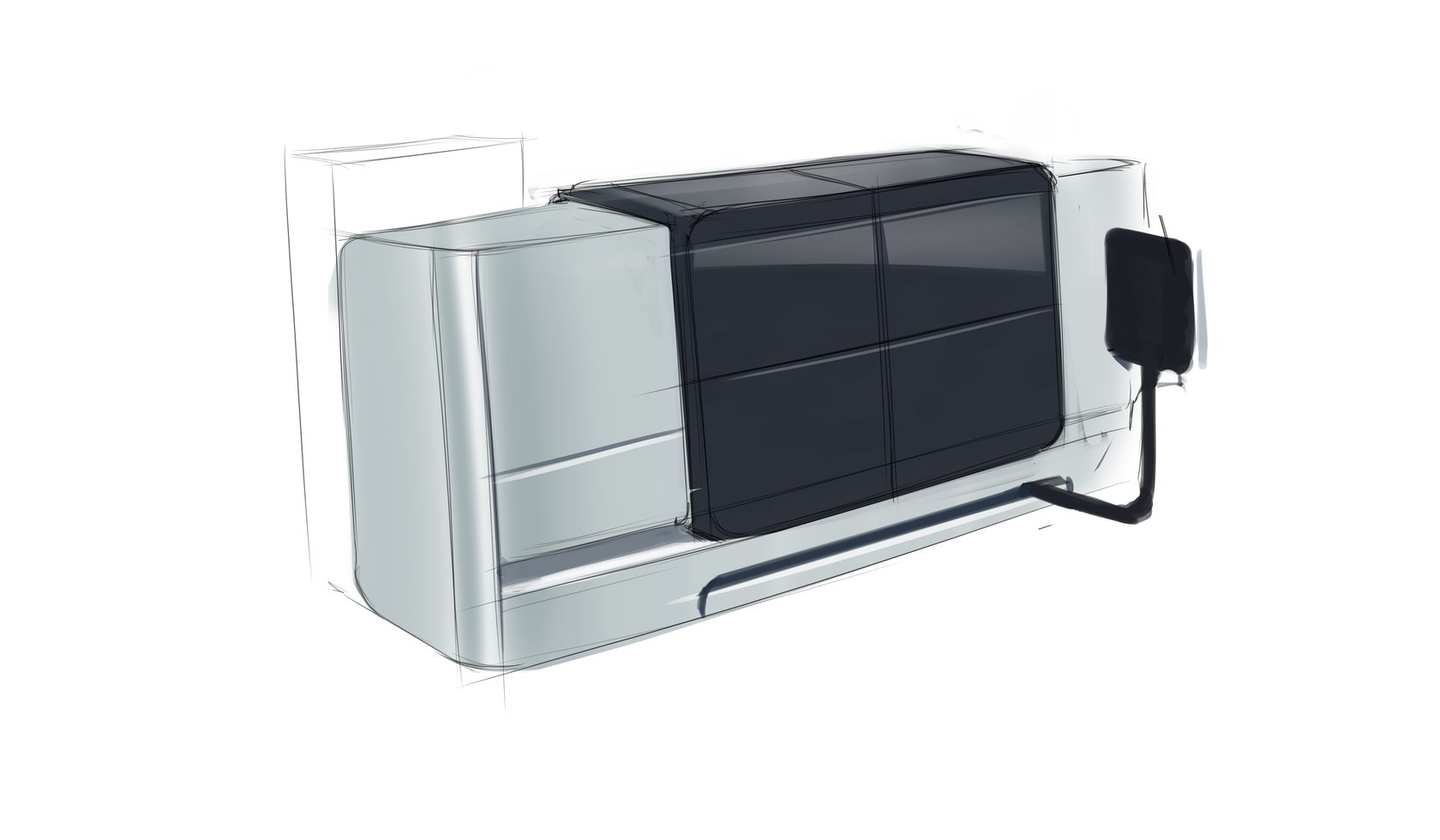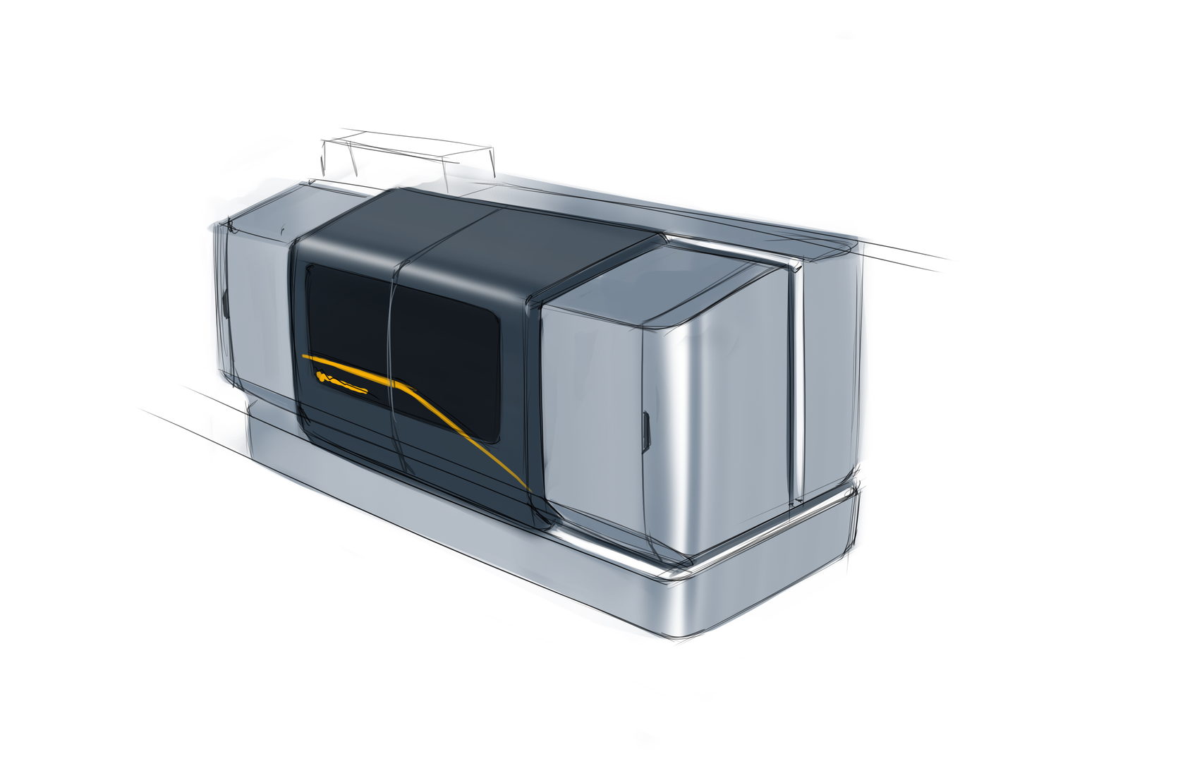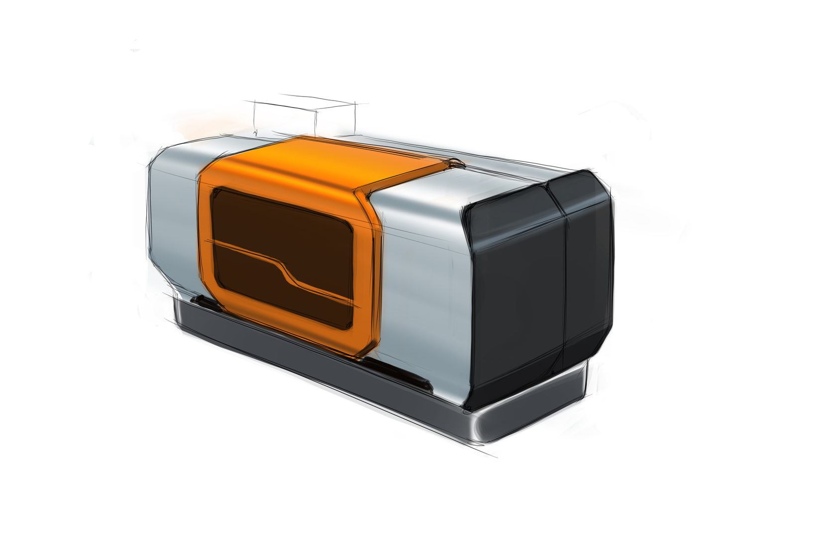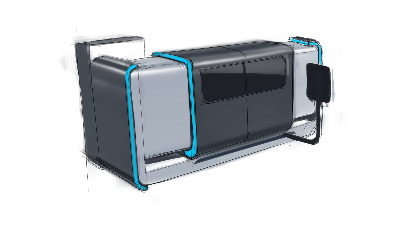 Заказчик попросил не забывать про то, что на части эскизов должны быть телескопические двери — такие, которые могут двигаться относительно друг друга, а все вместе — перемещаться по основному корпусу. Также у станка есть пульт, который тоже может двигаться — на отдельных направляющих.