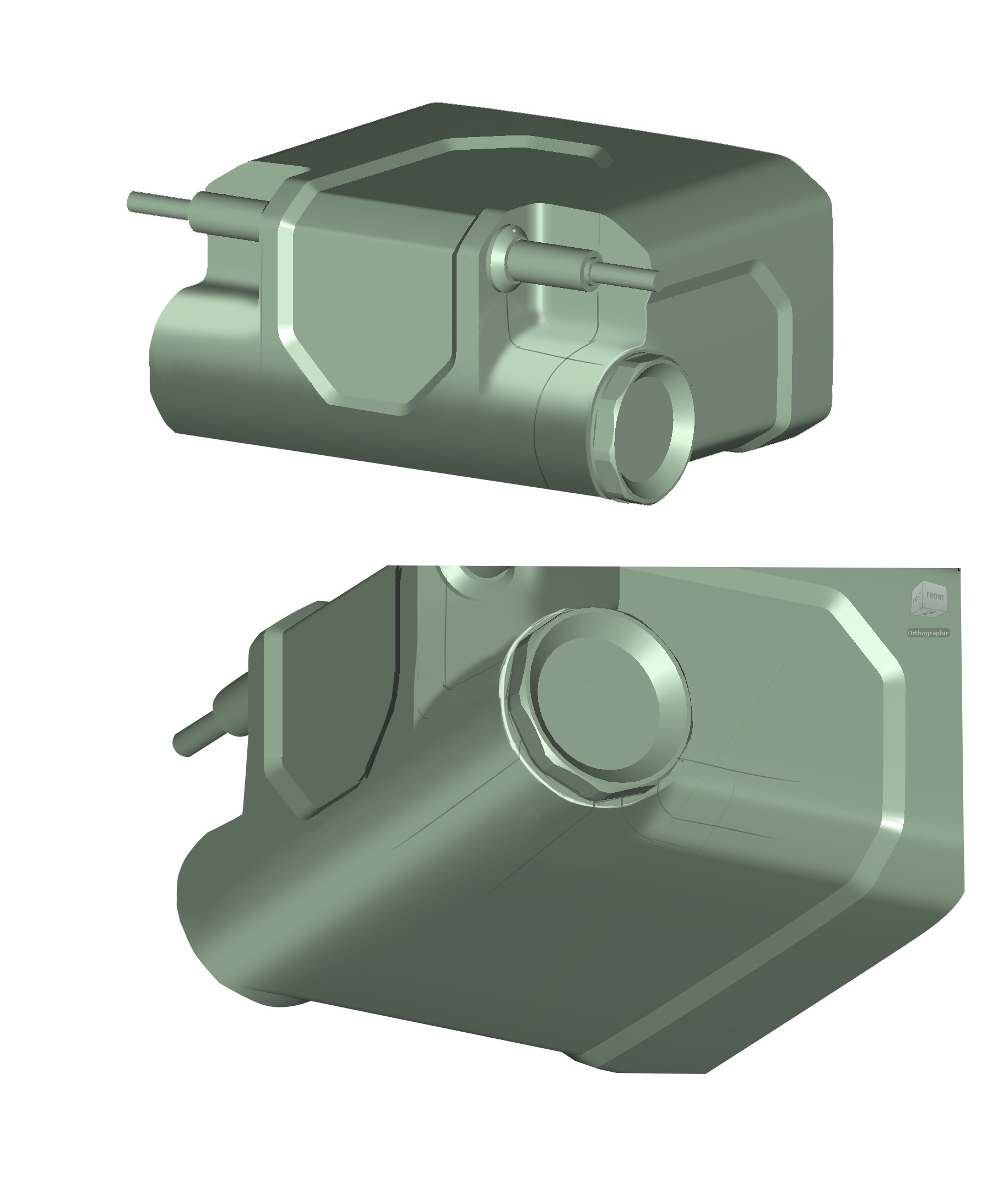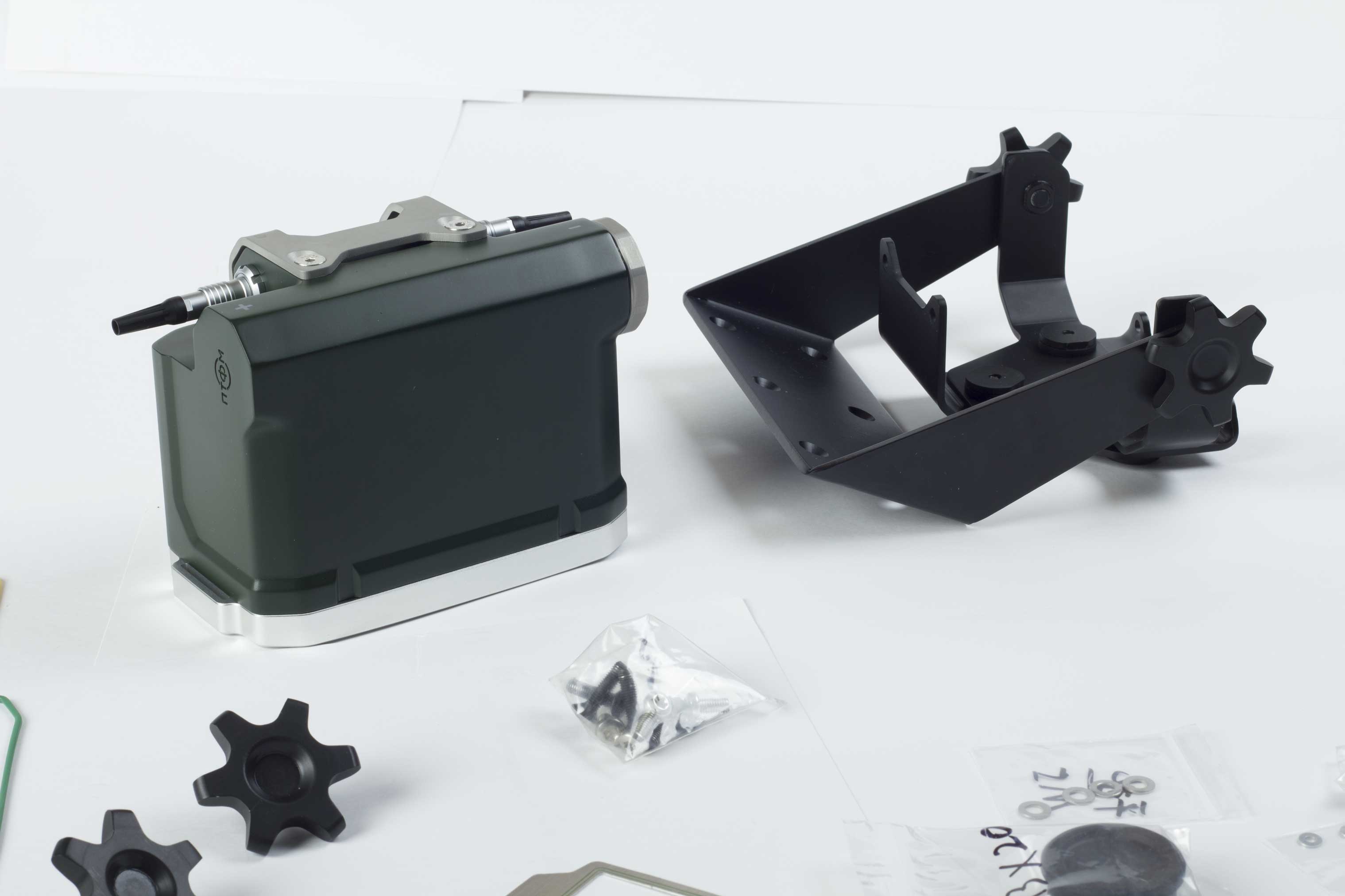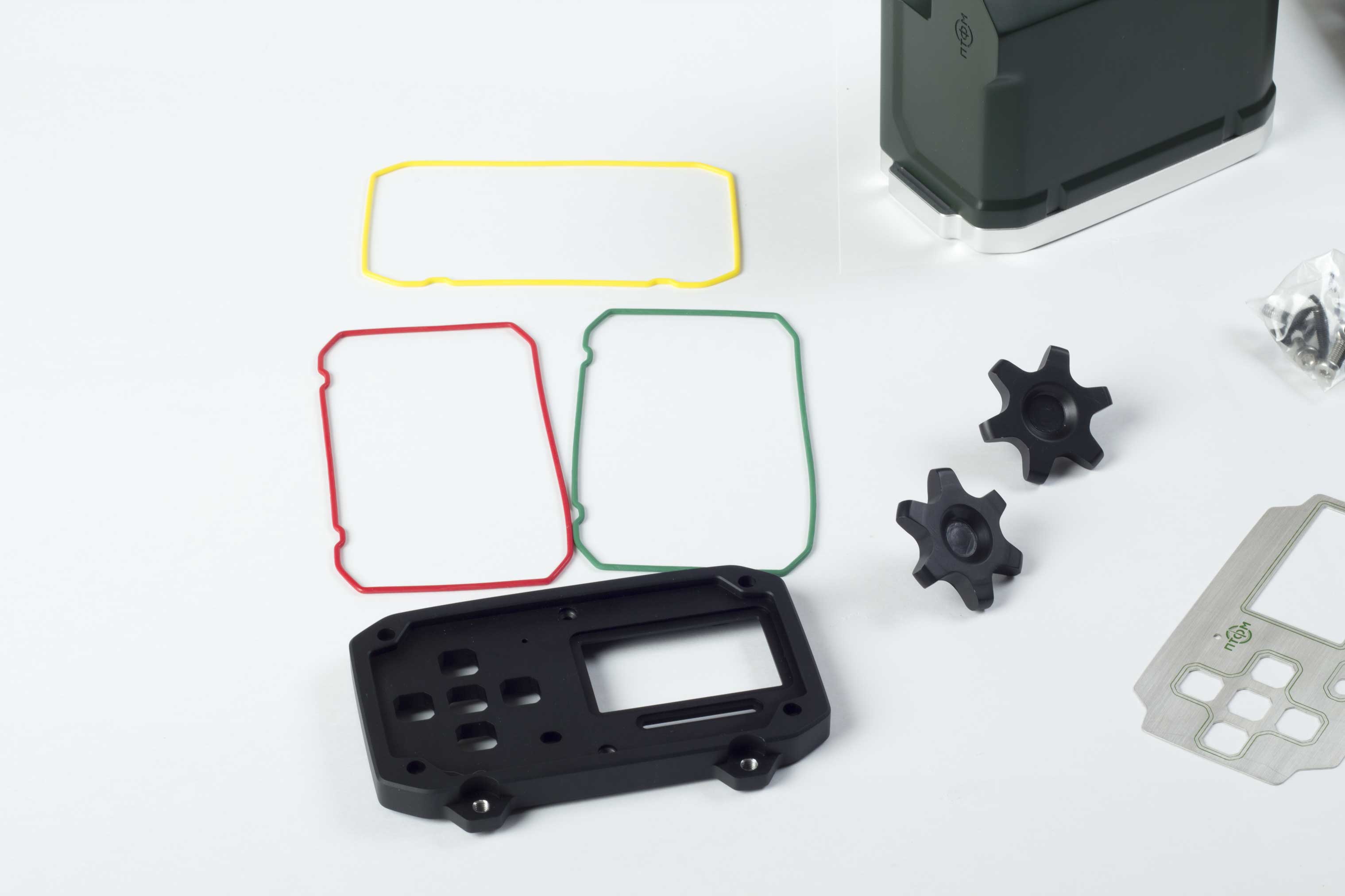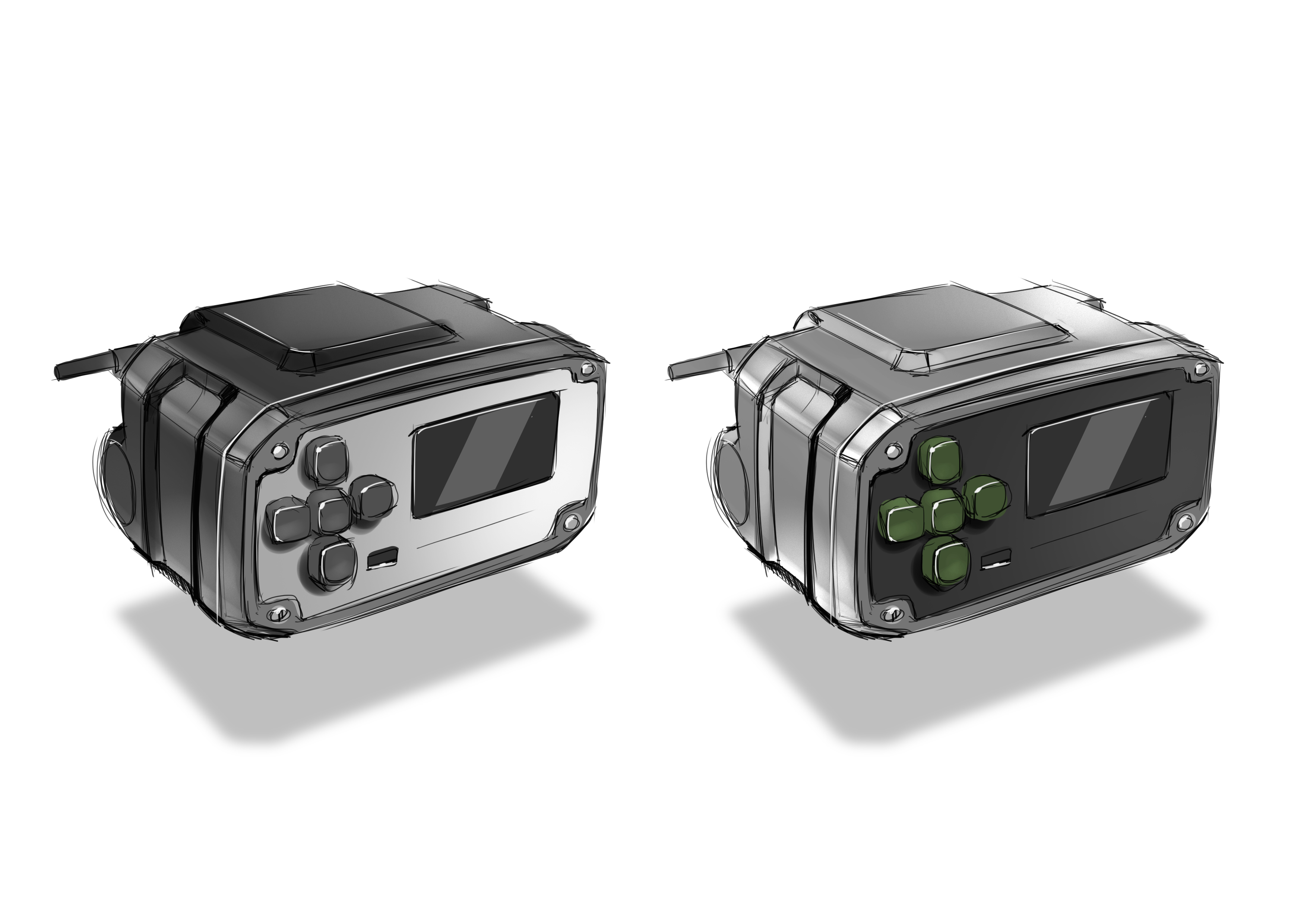 При разработке дизайна надо придерживаться той компоновки и тех пропорций, которые есть сейчас в модели. Можно изменить разве что положение аудиоразъема на передней панели и область индикации (это линия под дисплеем). Корпус будет пластиковым, технология производства — литье под давлением. Передняя панель — алюминий. Материал крышек для аккумуляторов — на выбор разработчика. Цвета — болотный и темно-серый.