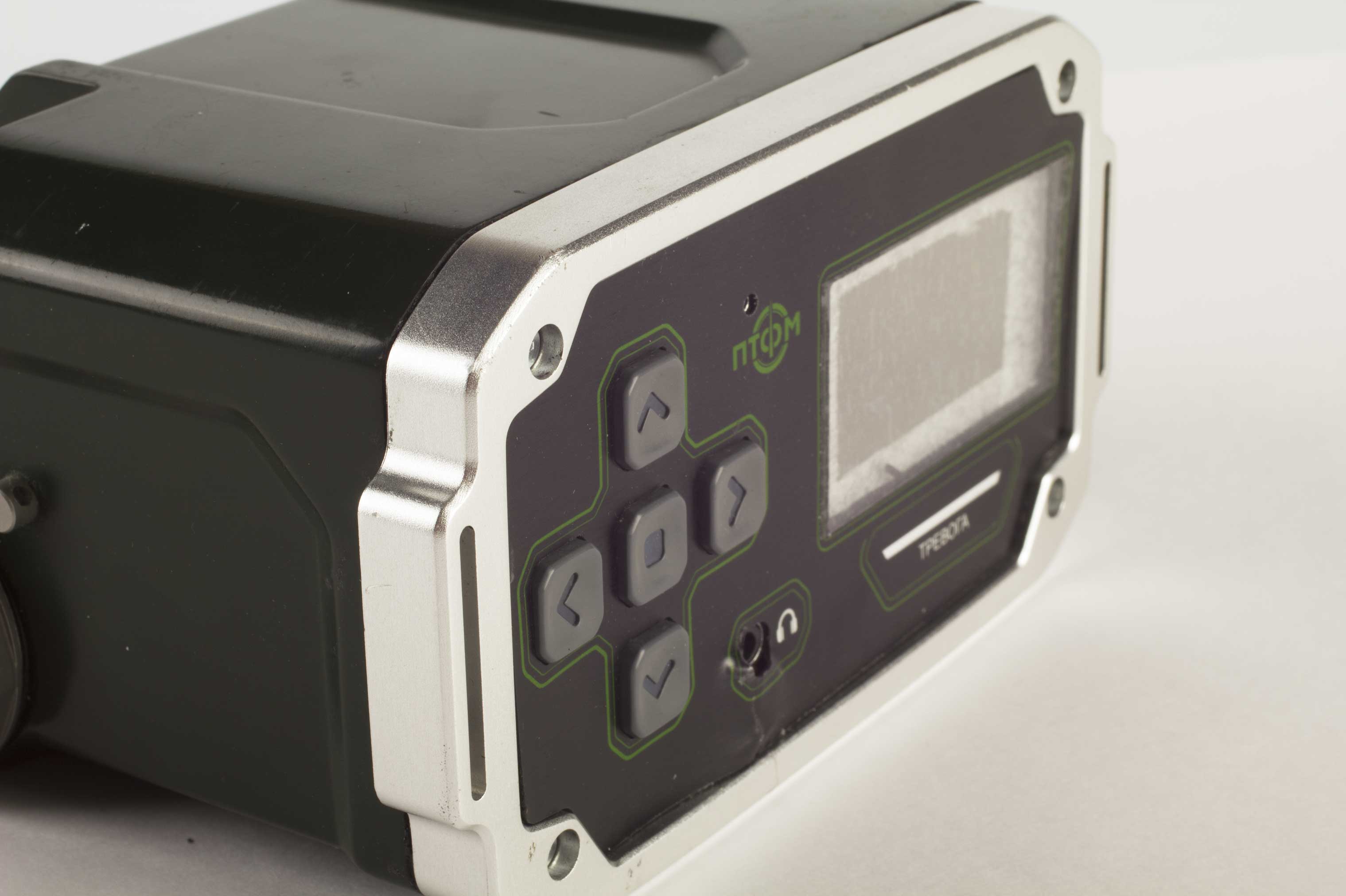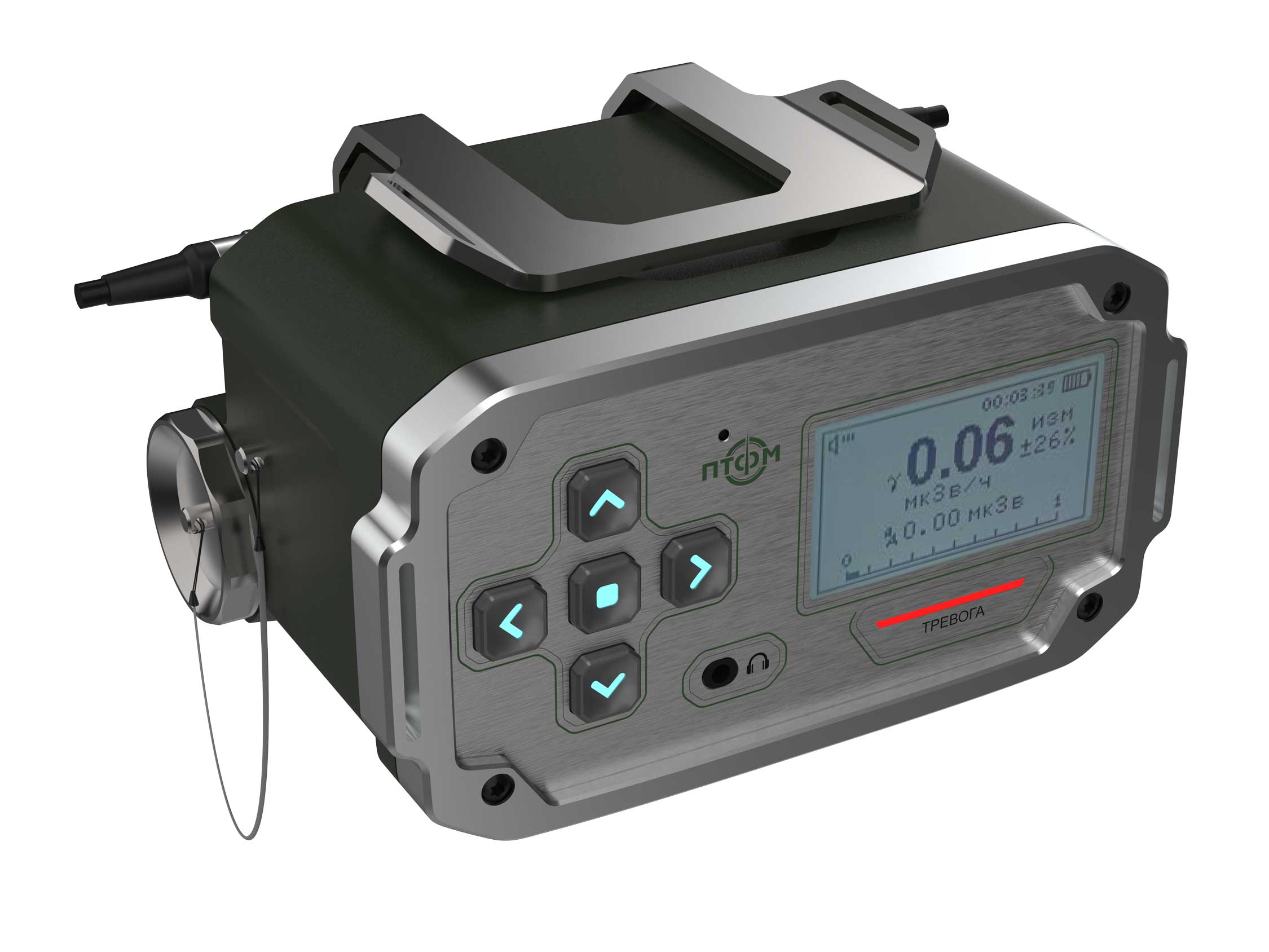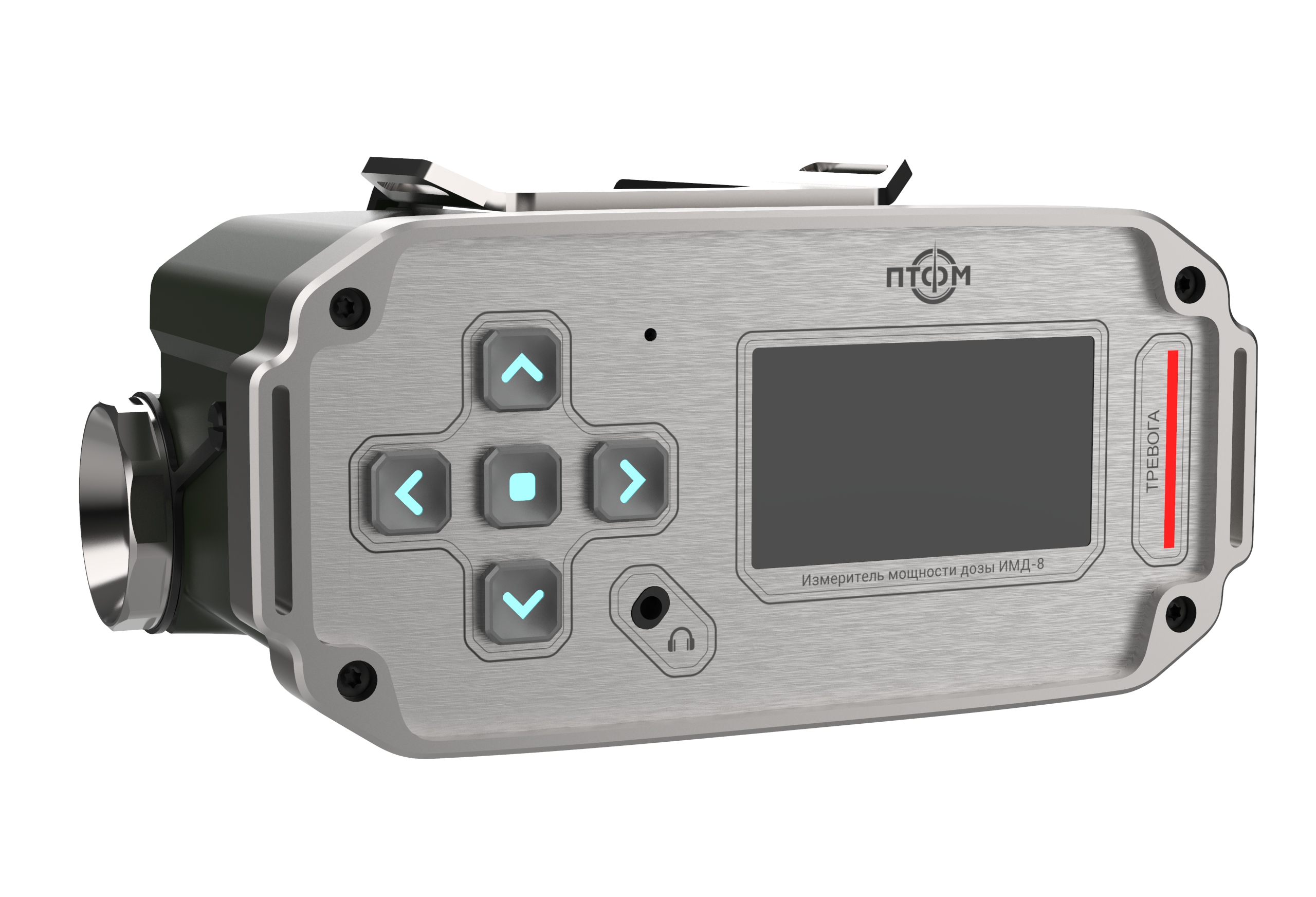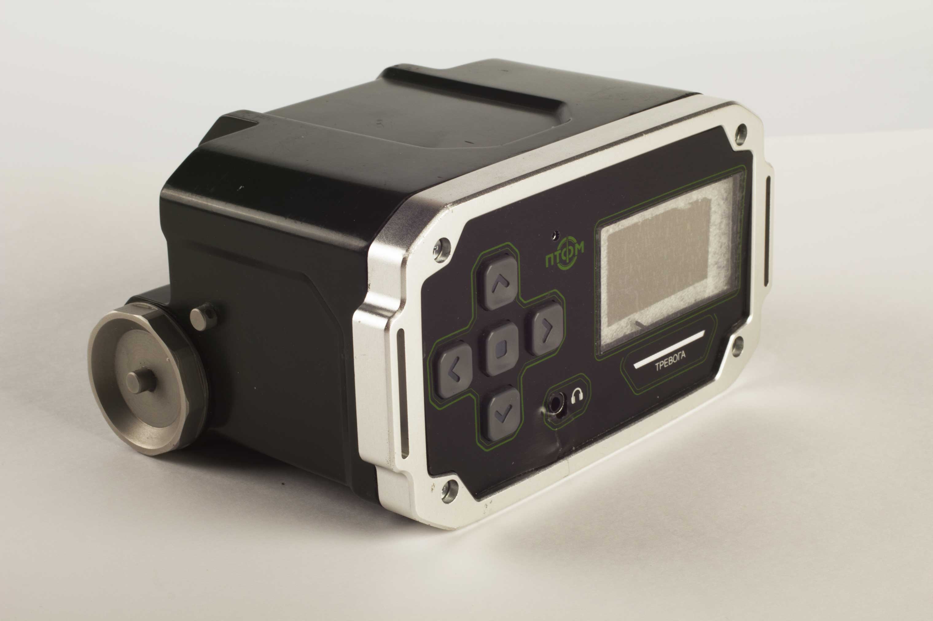 Состав корпуса – основная часть с аккумуляторным отсеком и его крышкой плюс передняя панель. Внешние элементы – монитор за защитным стеклом, прорезиненная клавиатура с подсветкой кнопок, обязательная индикация превышения порога (красного цвета), защищенный разъем для наушников (только для носимого варианта, в других версиях будет заглушка), разъемы для передачи данных от внешних блоков, питания и сети. Для носимого исполнения нужны крепление плечевого ремня, клипса для ношения пульта на поясном ремне и кронштейн для крепления к стене (размещения на столе и подвешивания под потолком).