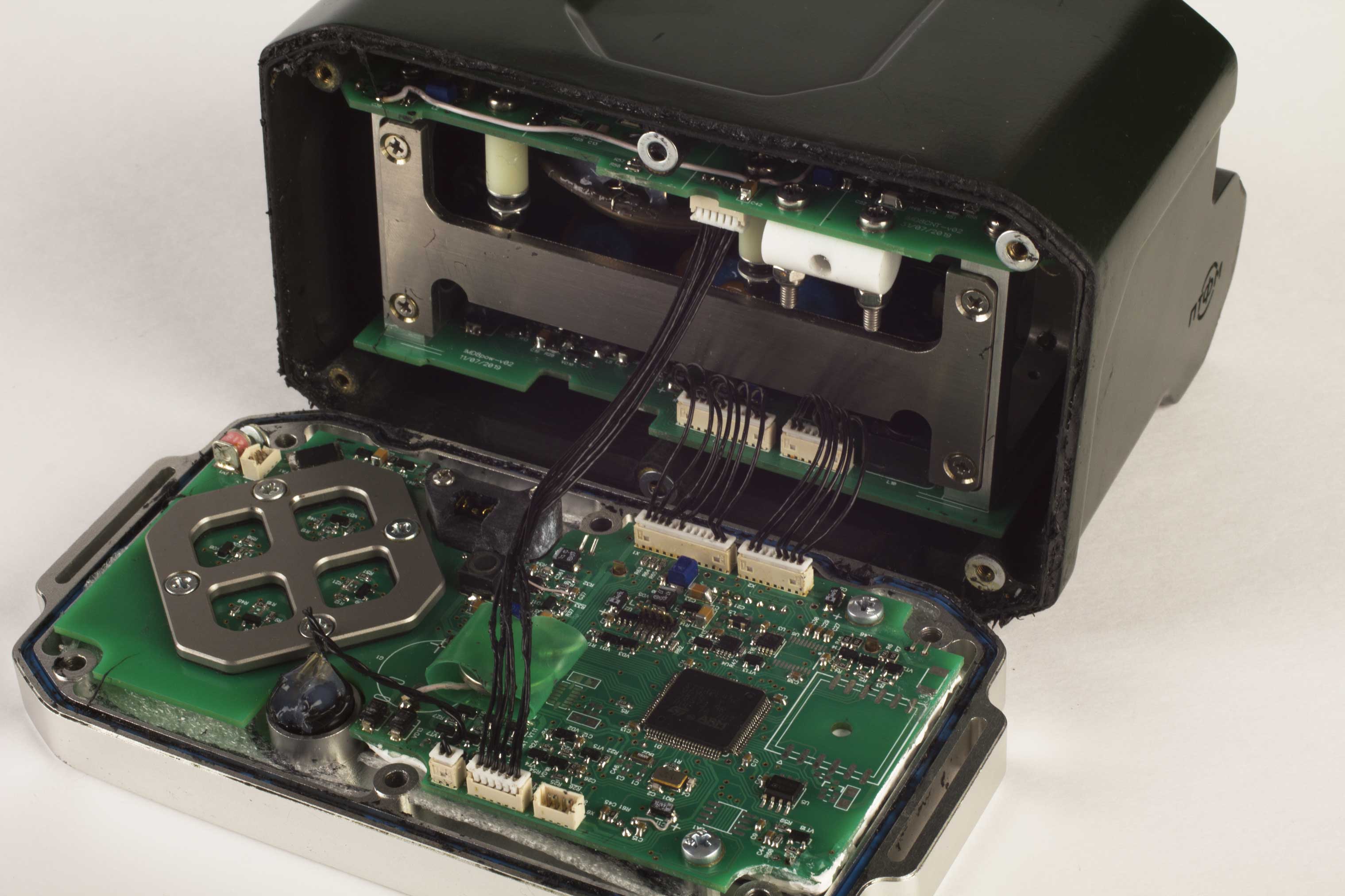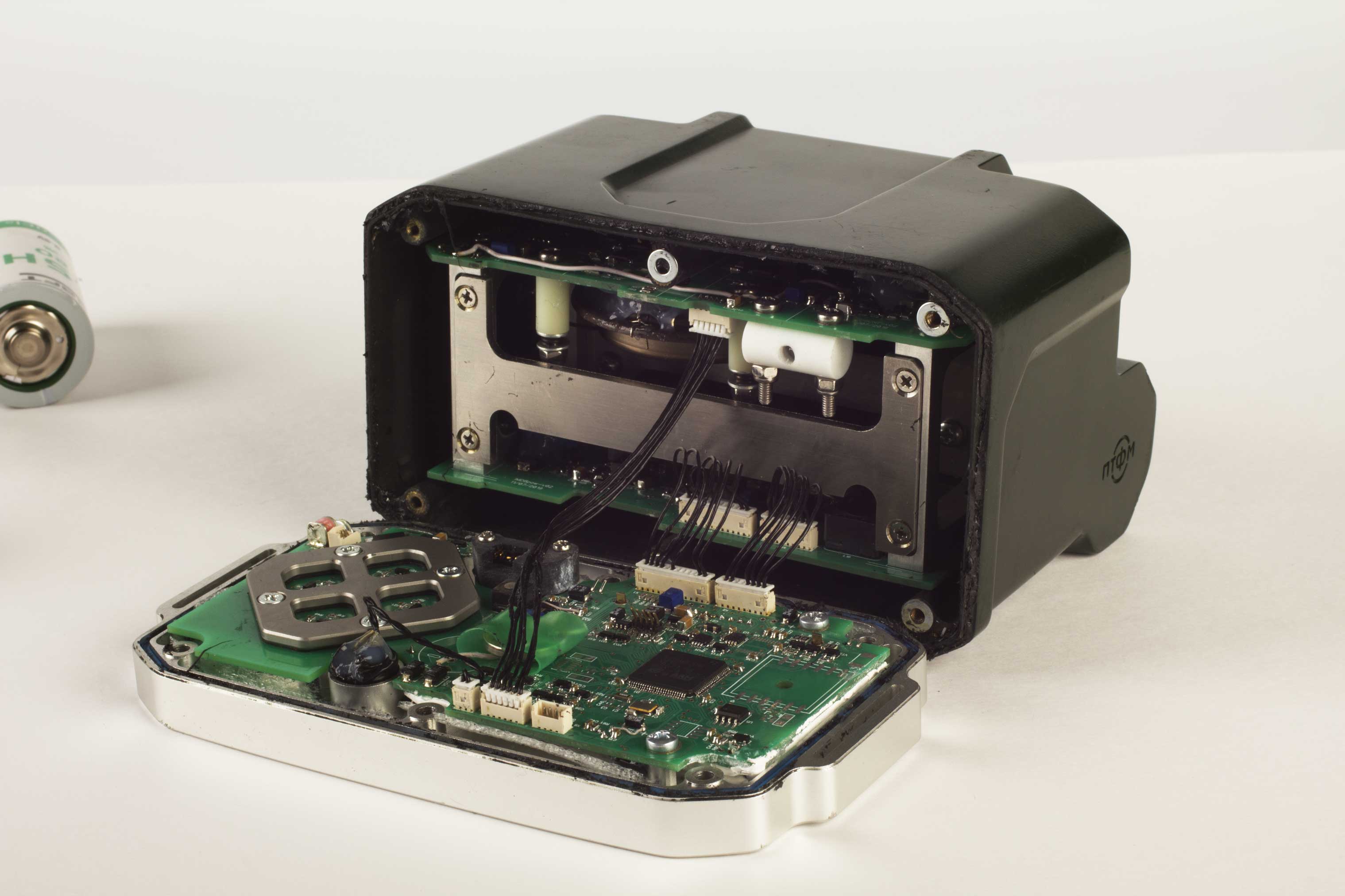 Компоненты пульта: блок спутниковой навигации ГЛОНАСС/GPS с антенной (только для носимого варианта), зарядное устройство для аккумуляторов, 2 аккумуляторные батареи, несколько счетчиков излучения, дисплей, клавиатура, электронные платы, платы счетчиков, монитора и питания.