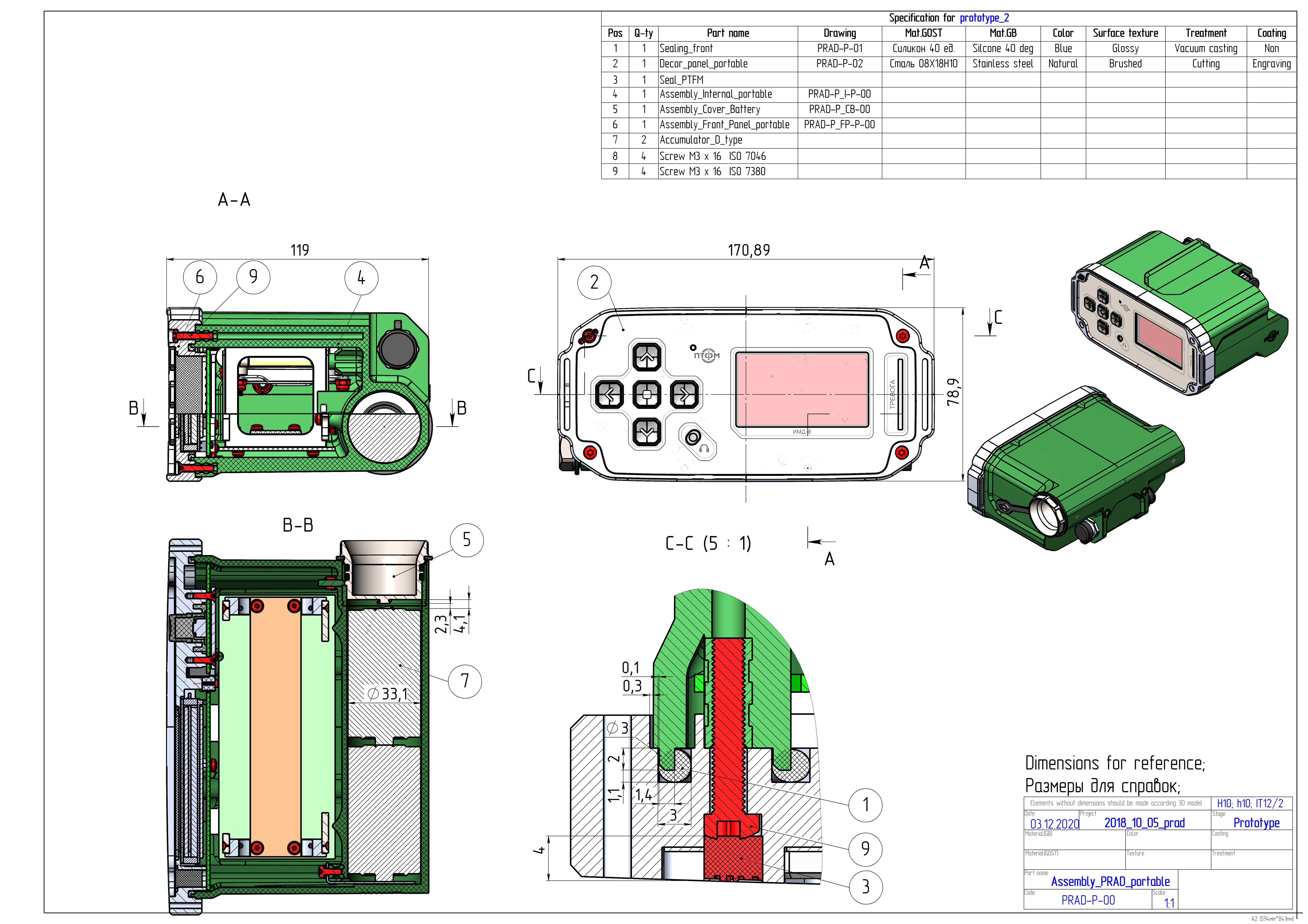 Срок службы такого корпуса серьезный — 15 лет, поэтому к материалам, из которых он будет изготовлен, придется отнестись с особым вниманием. Ну да, если прибор всепогодный, да еще и носимый, то ясно, в каких условиях его станут эксплуатировать: в любых. Заодно он будет периодически падать (возможно, что и в грязь тоже), попадать под дождь, снег, палящее солнце и так далее. Поэтому дальше в техзадании идет длиннющая таблица с показателями, характеристиками и требованиями. Два часа на метровой глубине без потери работоспособности — это еще цветочки.