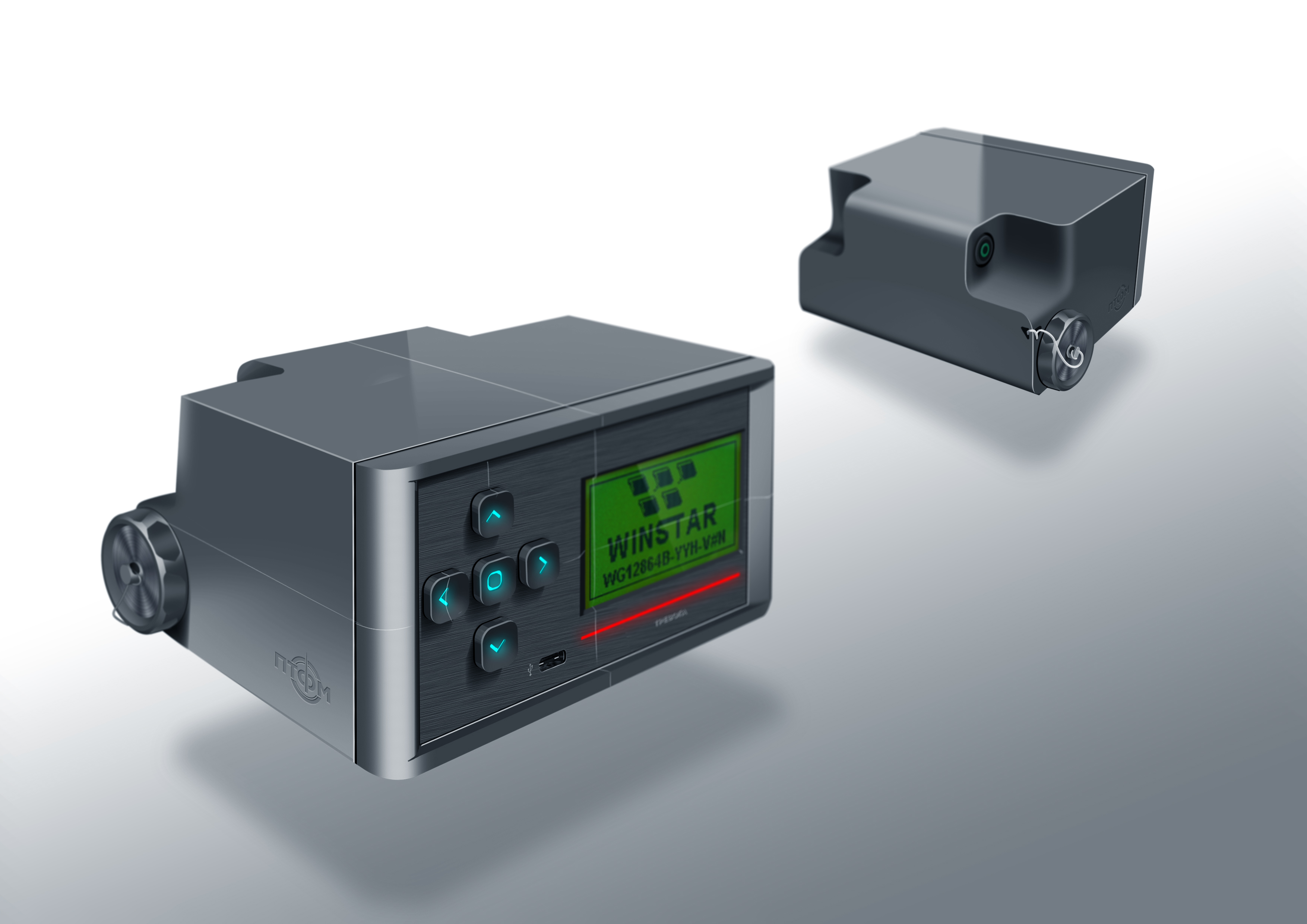 Носимый вариант пульта будет с питанием от АКБ, с помощью ремня его можно носить на шее. Бортовая версия работает от сети автомобиля, соответственно, тут потребуется специальный кронштейн для установки в кабине. В стационарном исполнении дозиметр будет стоять на столе или висеть на стене (опять нужен кронштейн), питание - от внешнего источника, например, адаптера на 220В. В этой версии, помимо датчиков, к пульту могут быть подключены два блока гальванической развязки.